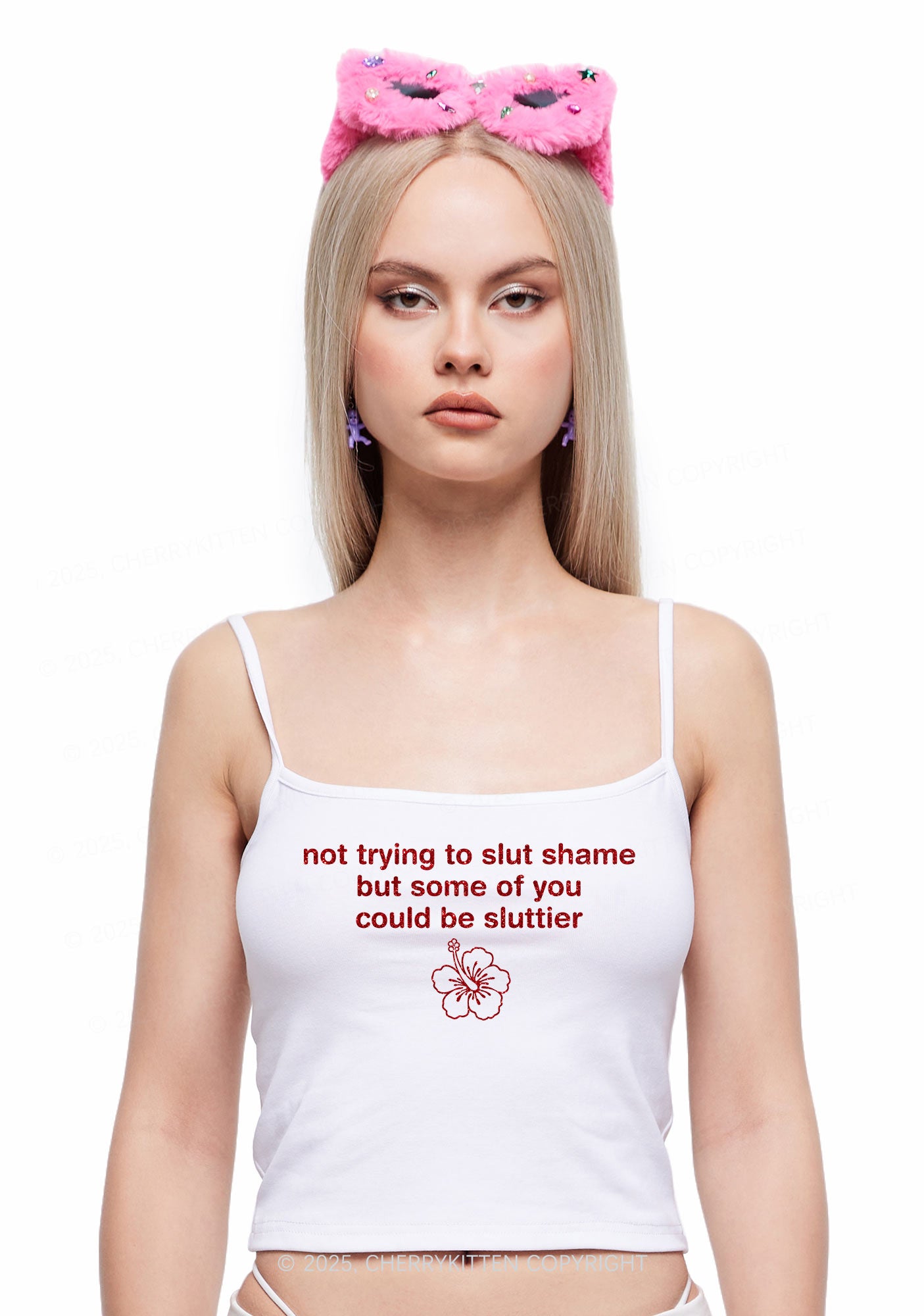 Glitter Not Trying To Slxt Shame Y2K Spaghetti Strap Cami Cherrykitten