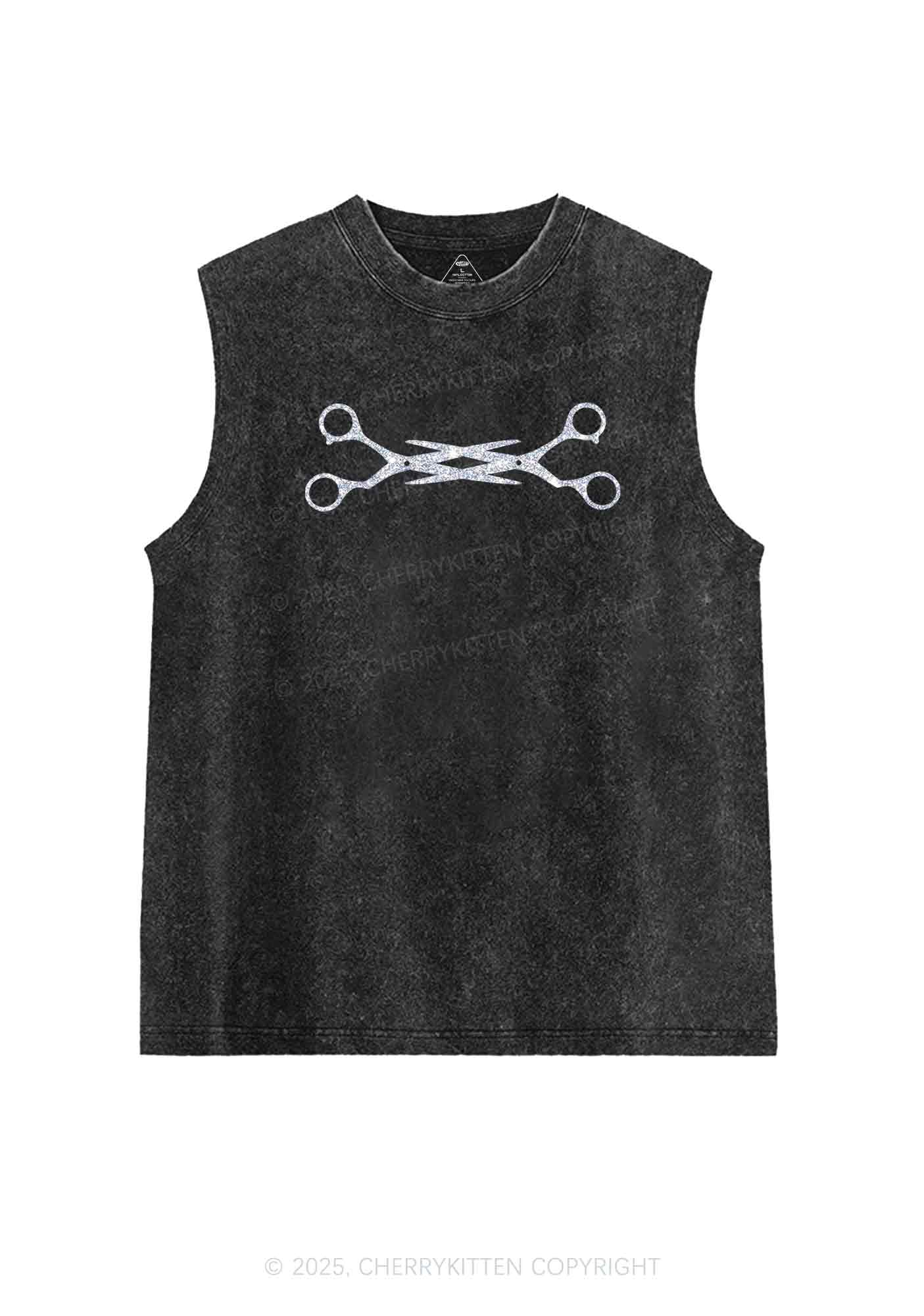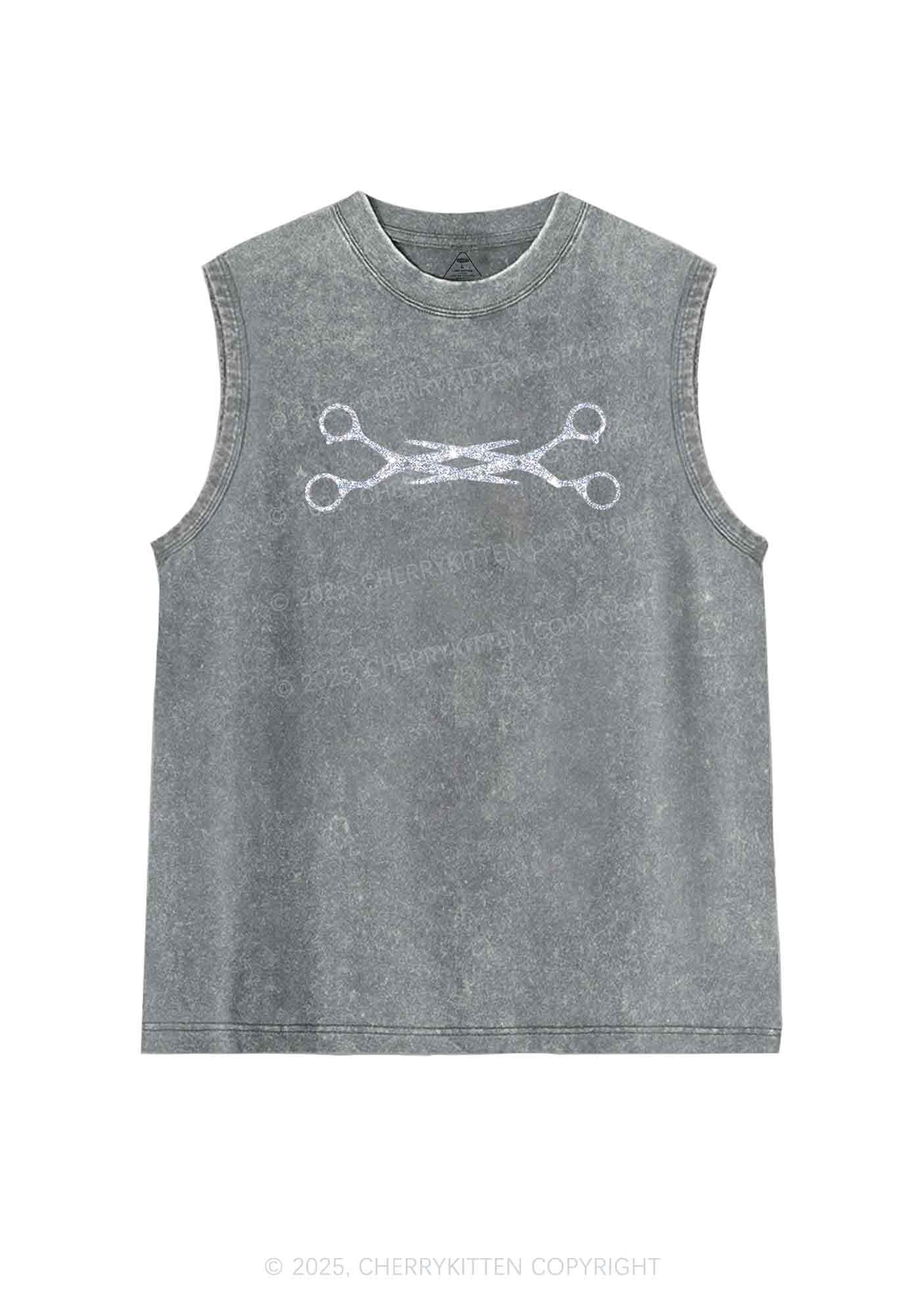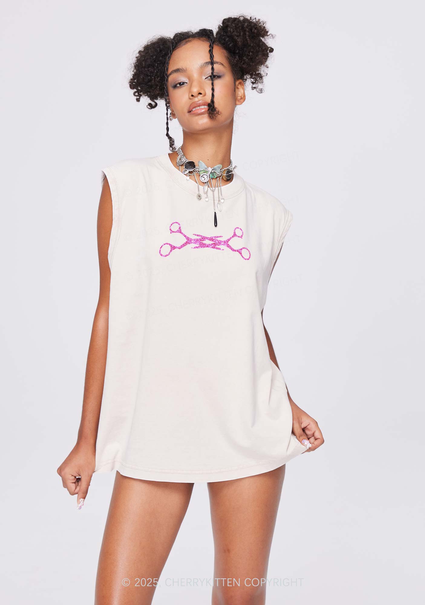 Glitter Pink Scissor Pride Y2K Washed Muscle Tank Cherrykitten