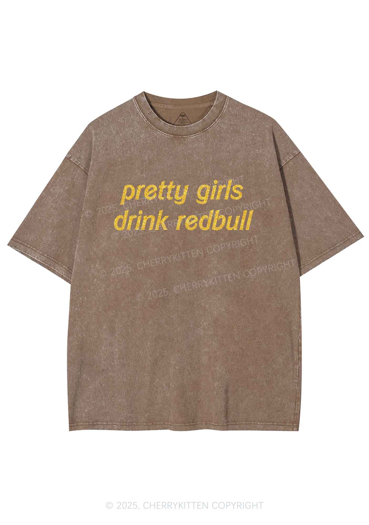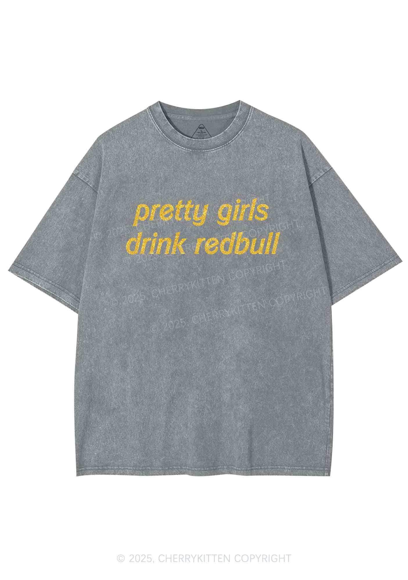 Glitter Pretty Girls Drink Redbull Y2K Shirts Washed Tee Cherrykitten