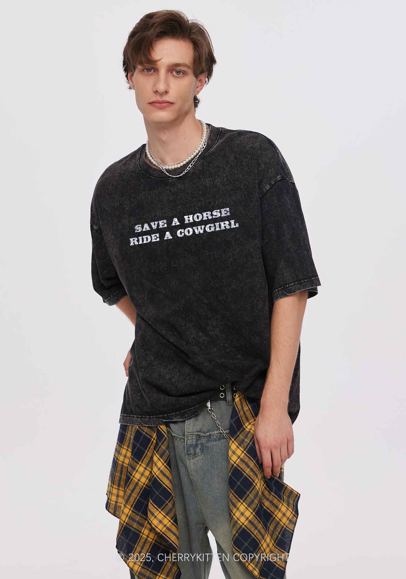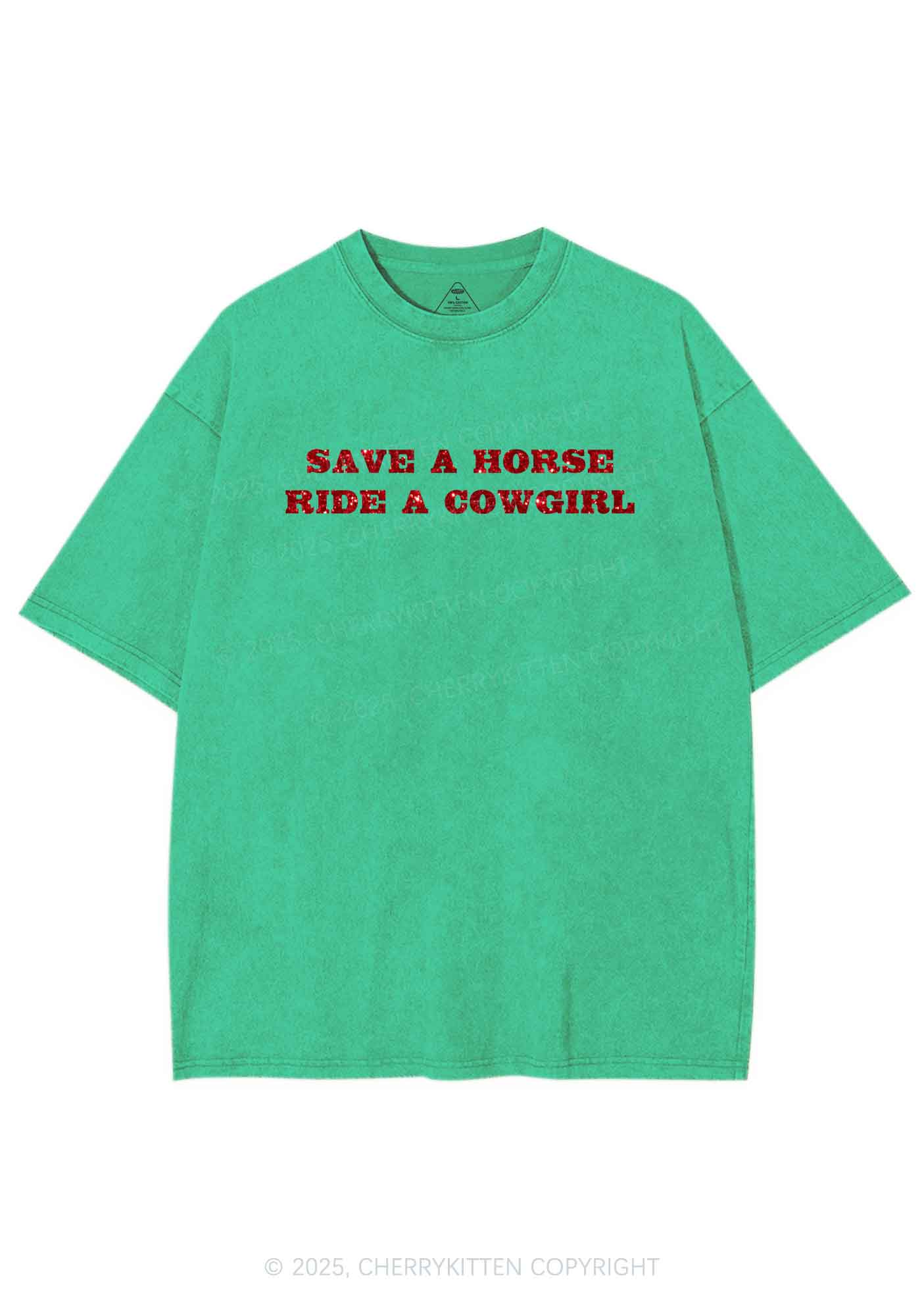 Glitter Save A Horse Ride A Cowgirl Y2K Shirts Washed Tee Cherrykitten