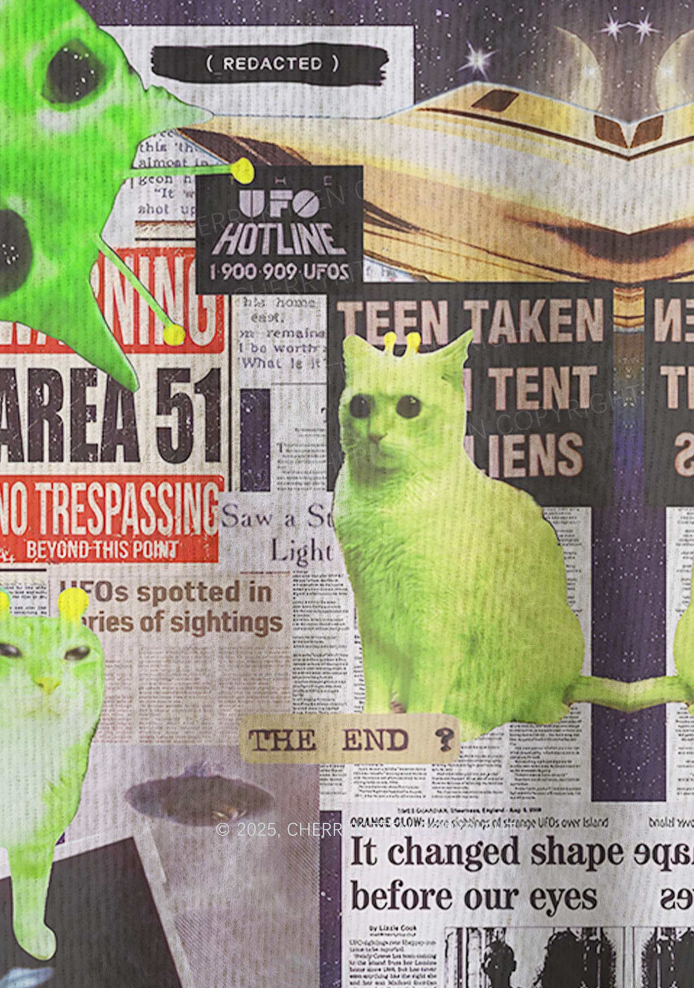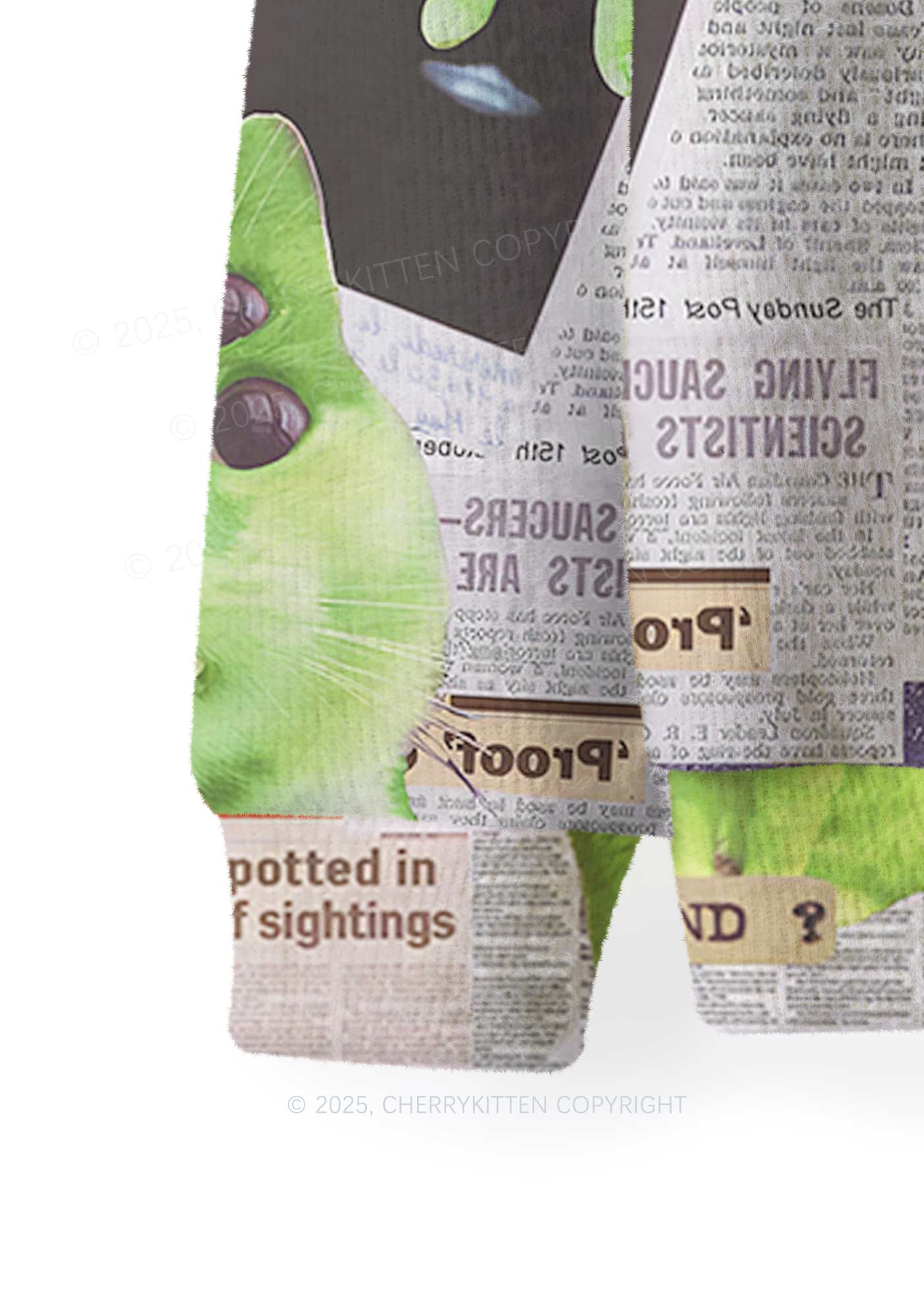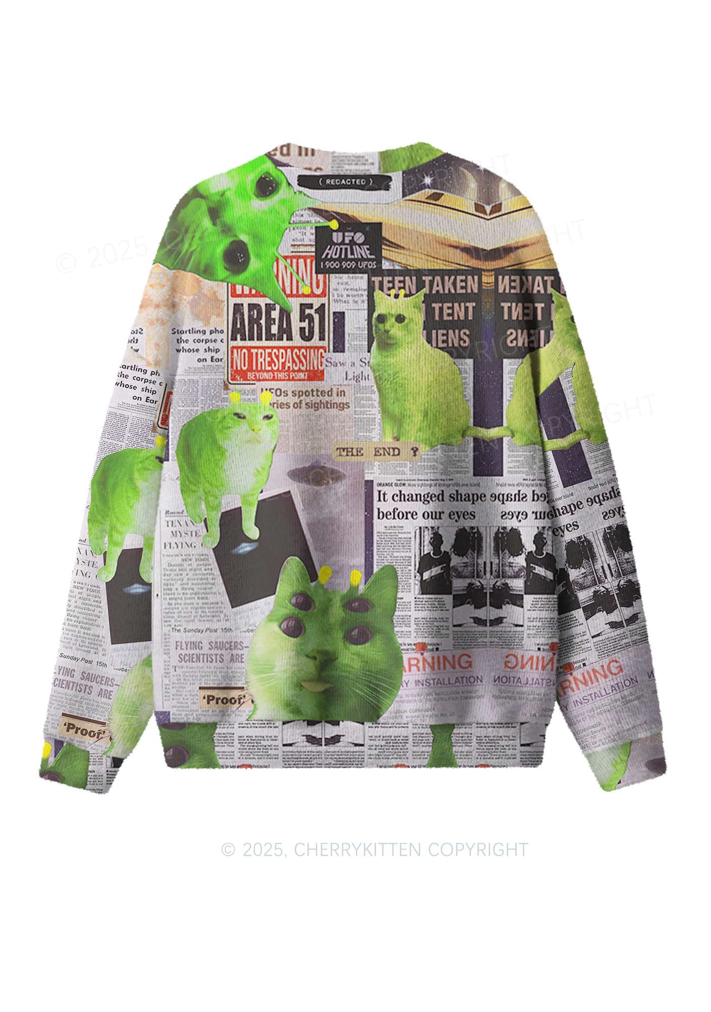 Green Alien Kitten Y2K Christmas Knit Sweatshirt Cherrykitten