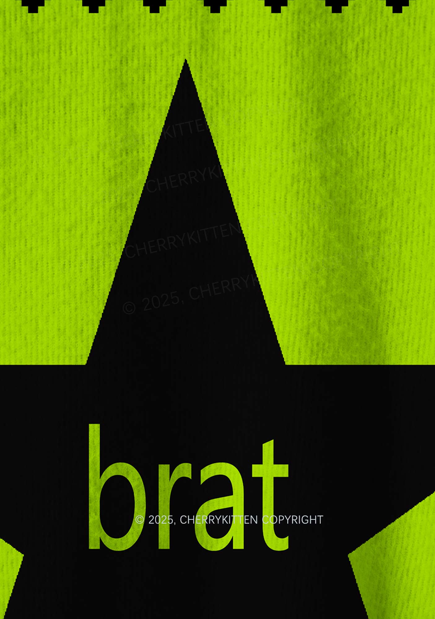 Green Brat Star Y2K Christmas Knit Sweatshirt Cherrykitten