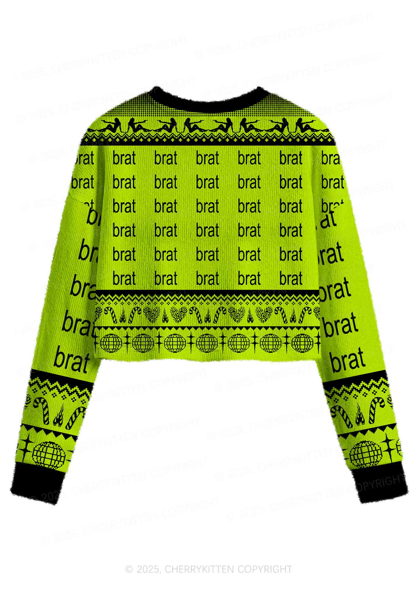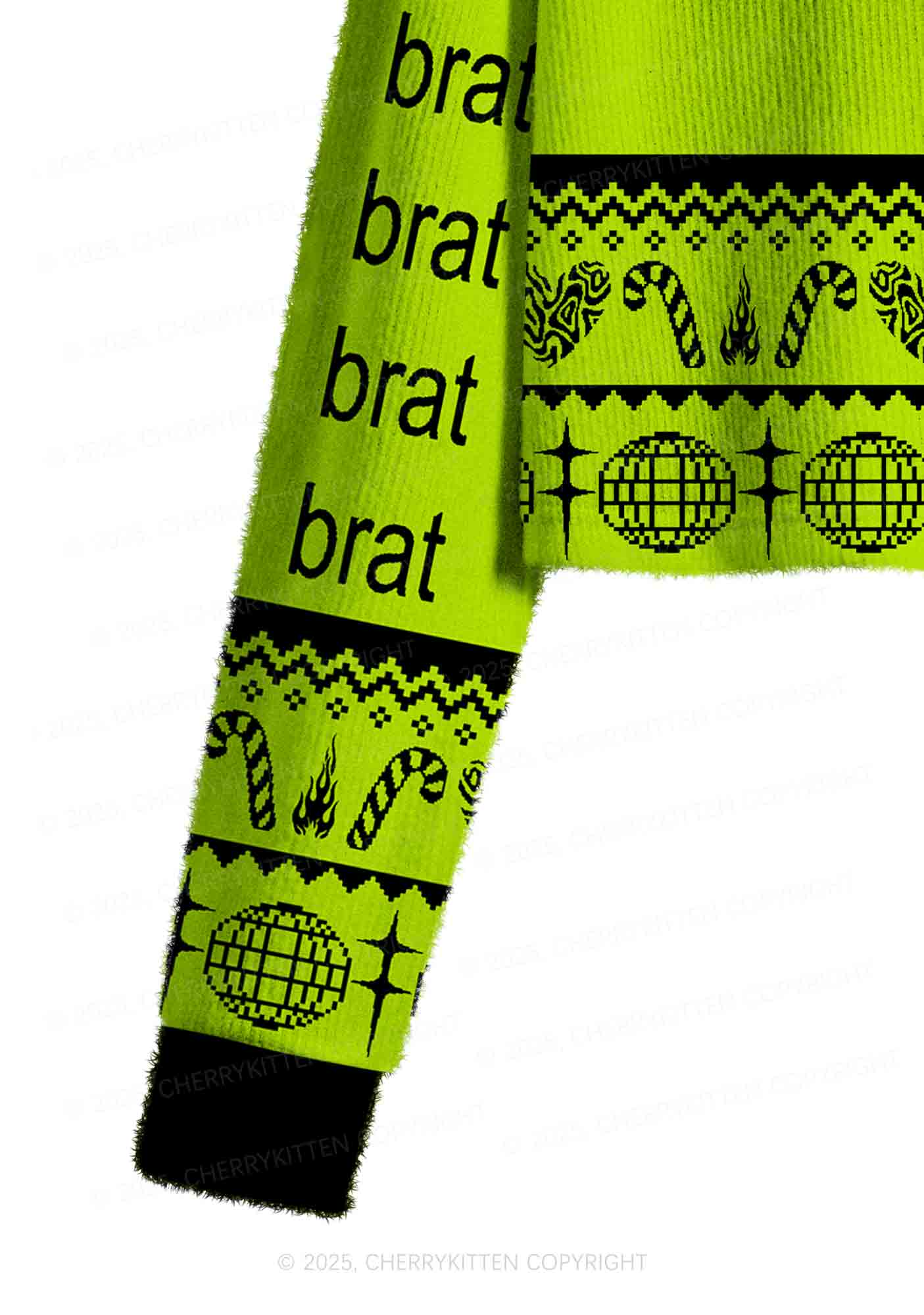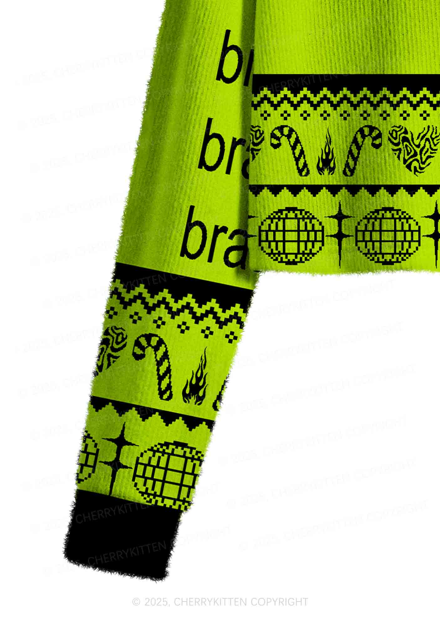 Green Brat Y2K Christmas Crop Knit Sweatshirt Cherrykitten