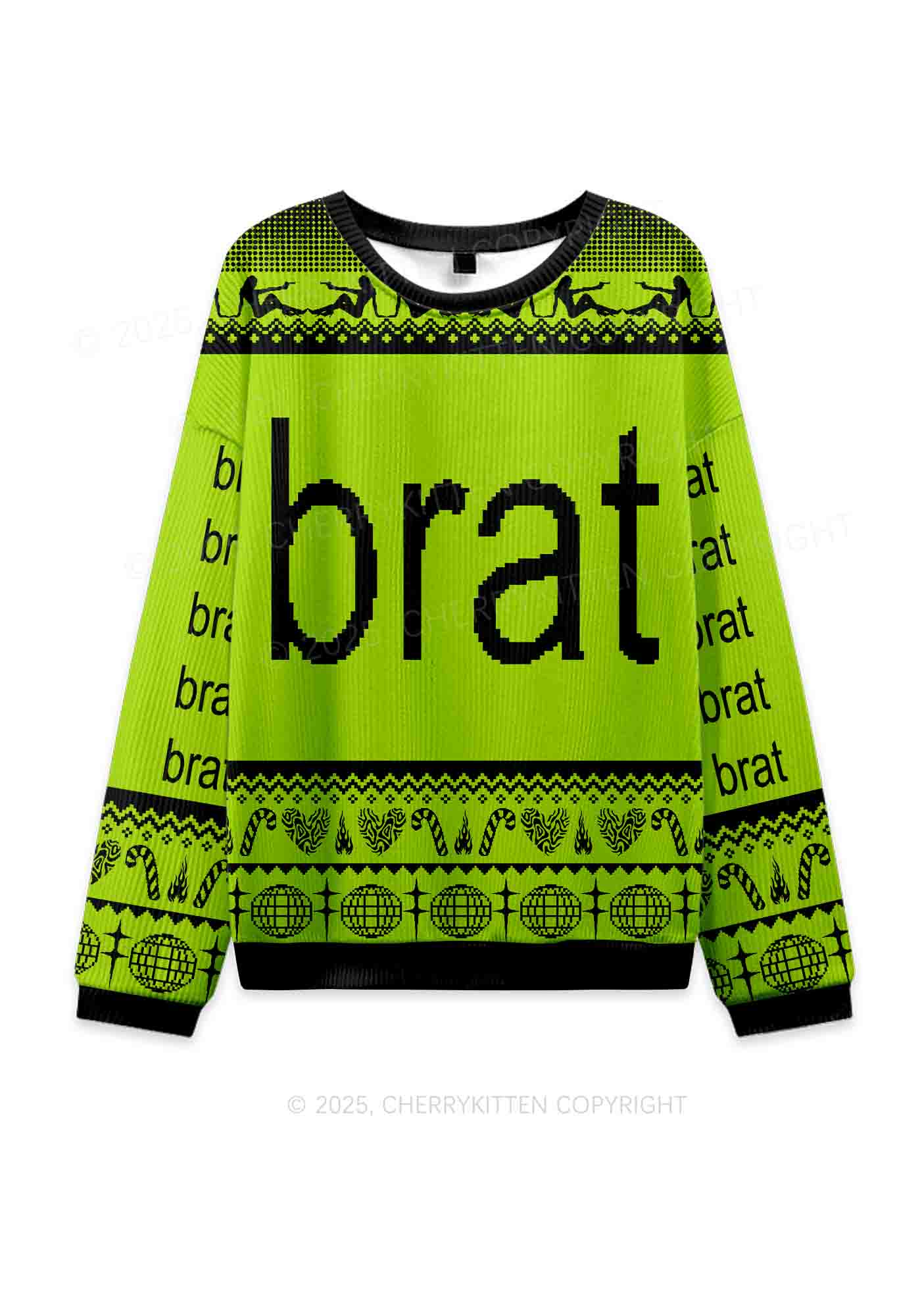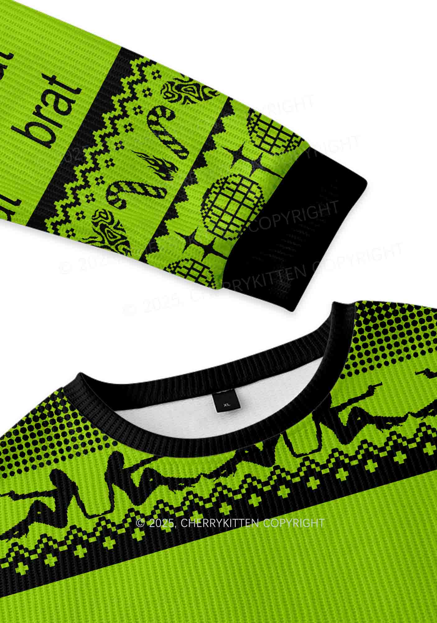 Green Brat Y2K Christmas Knit Sweatshirt Cherrykitten