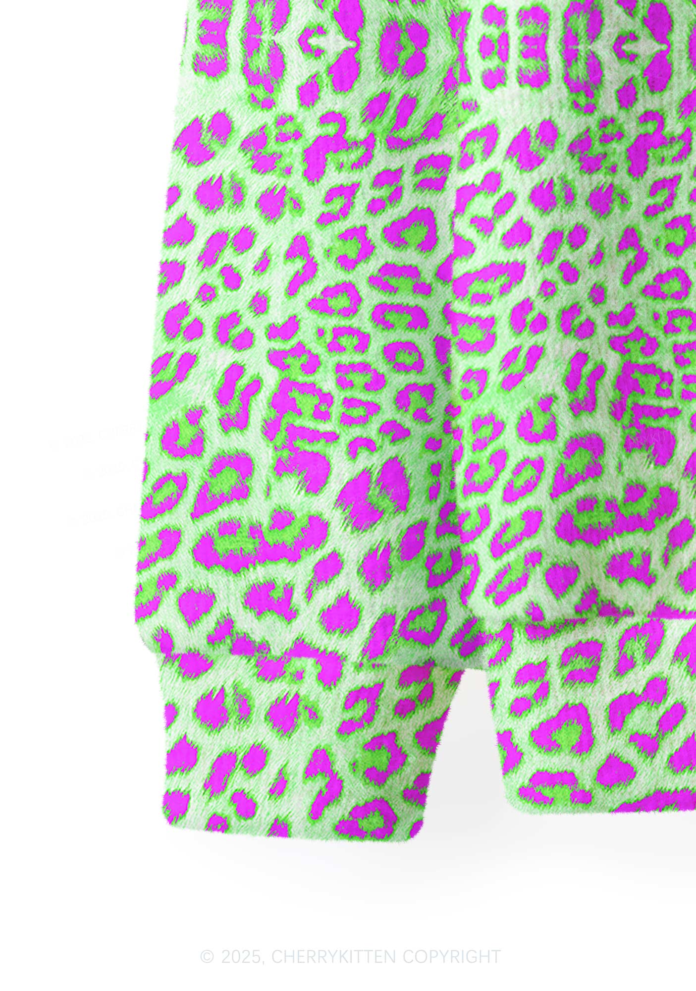 Green Leopard Y2K Christmas Cardigan Knit Sweatshirt Cherrykitten