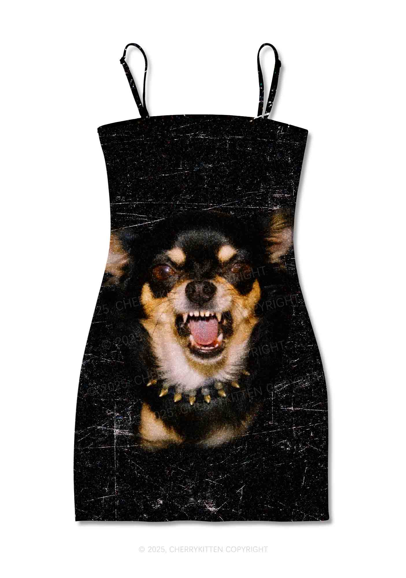 Growling Puppy Y2K Print Slip Dress Cherrykitten