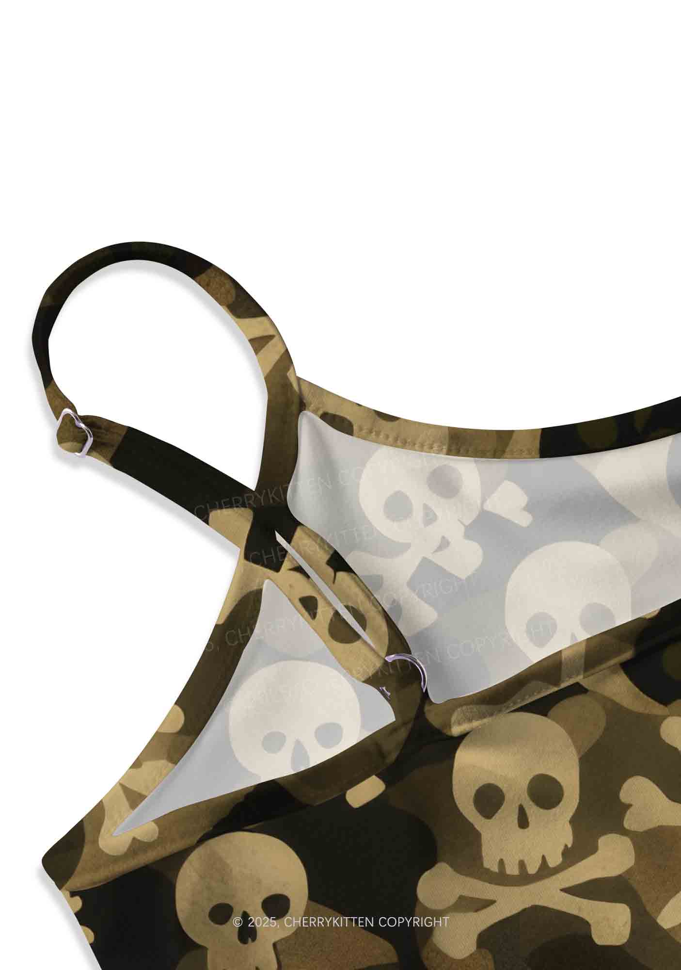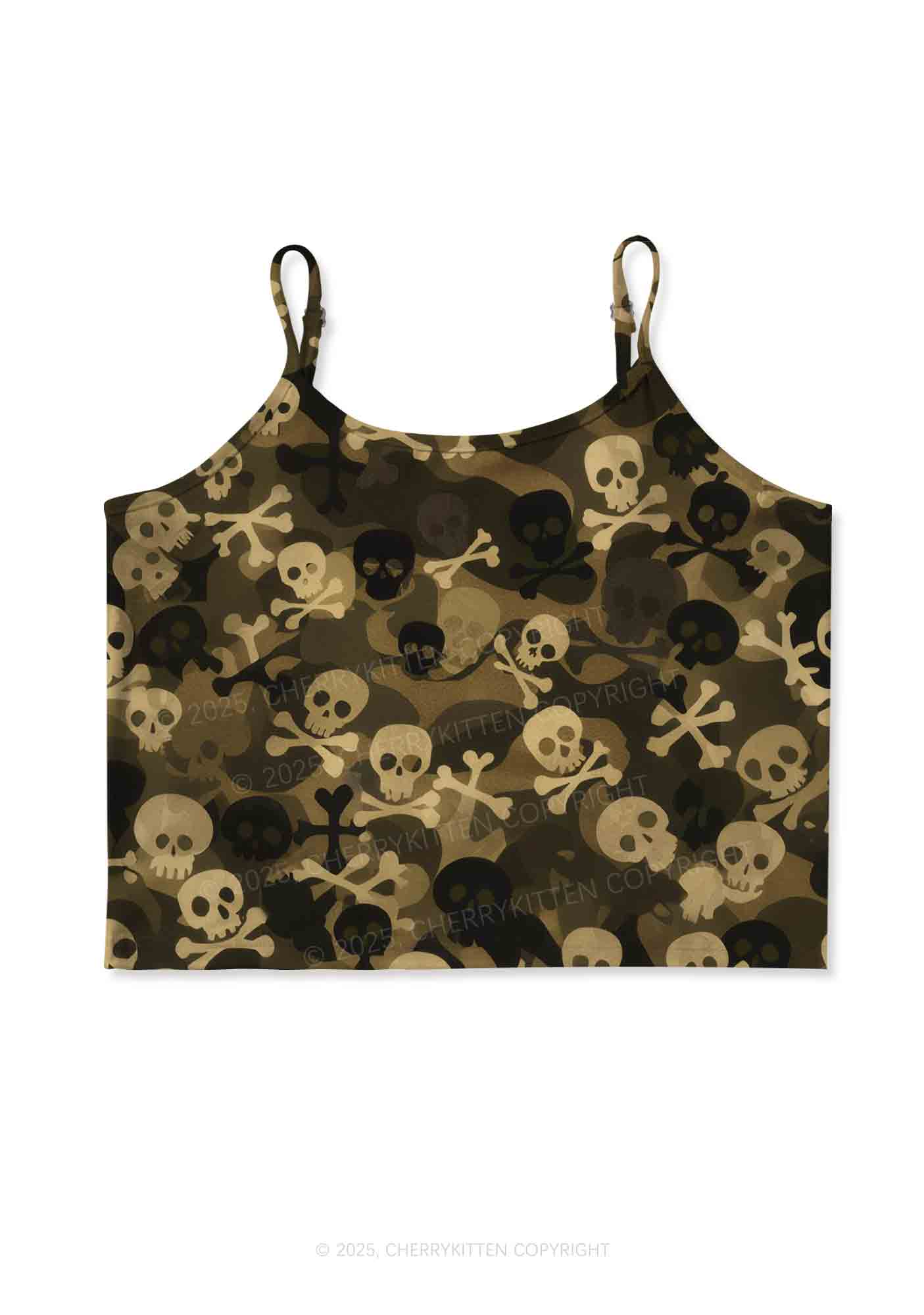 Halloween Camouflage Skulls Y2K Print Cami Crop Top Cherrykitten