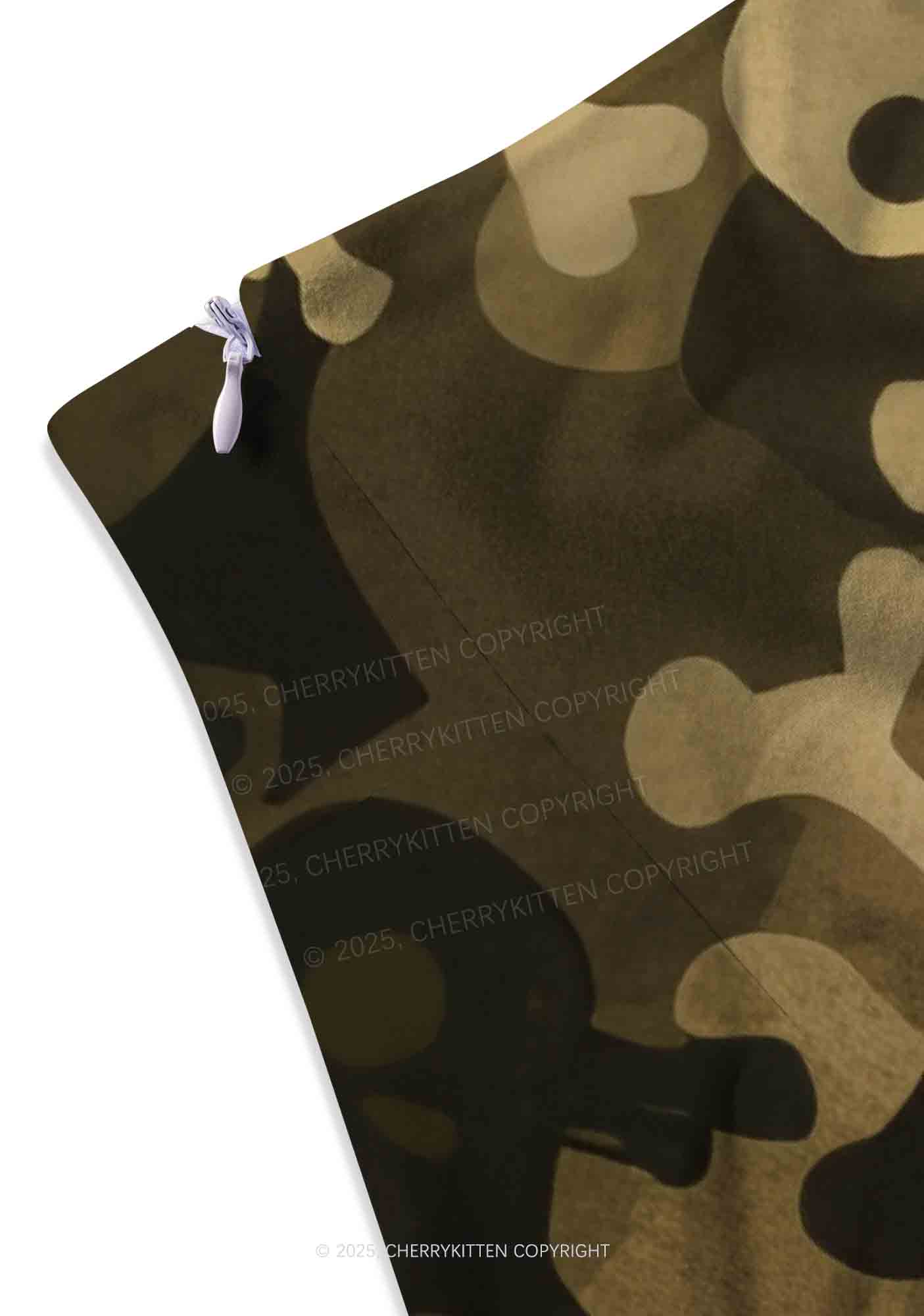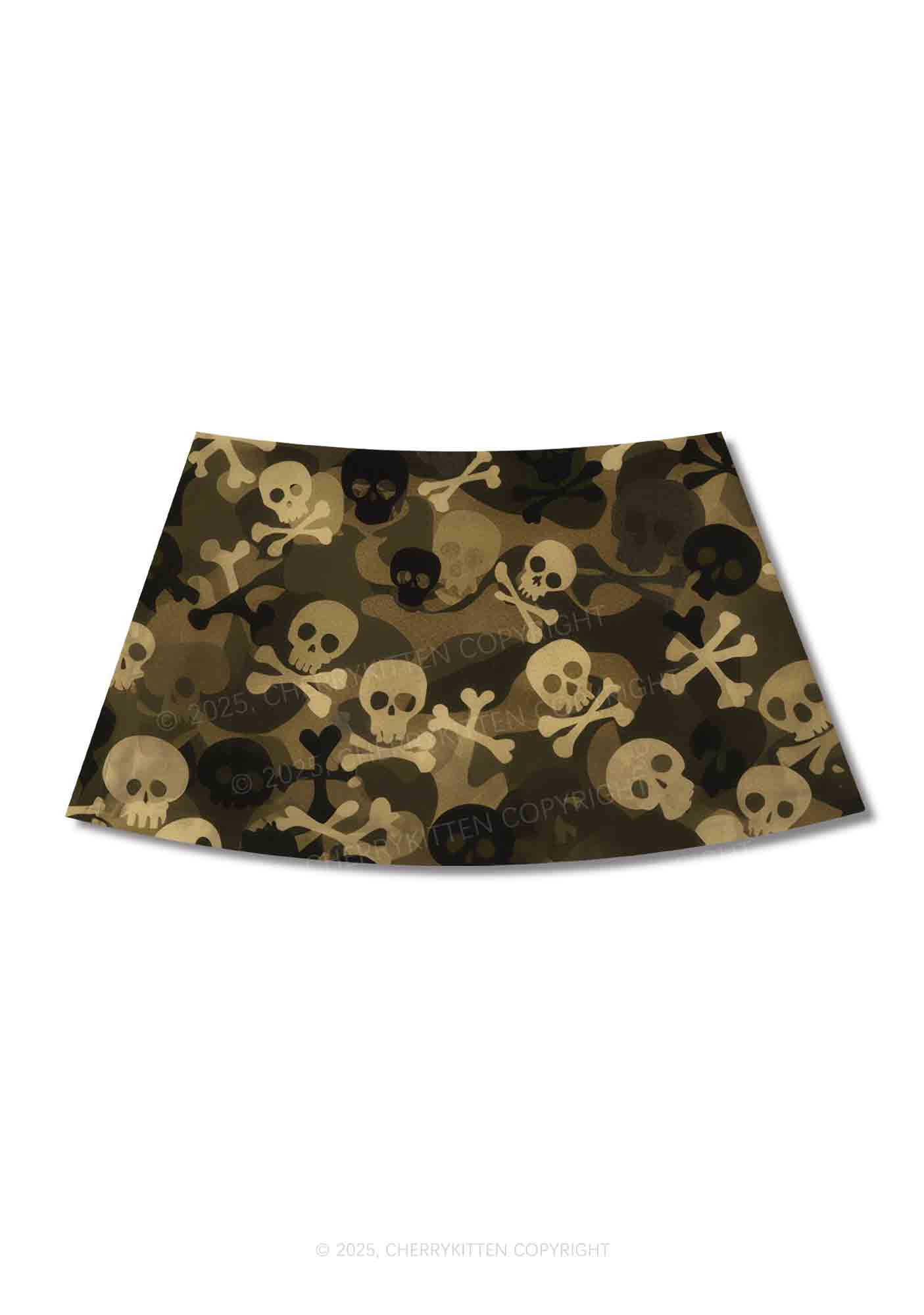 Halloween Camouflage Skulls Y2K Print Mini Skirt Cherrykitten