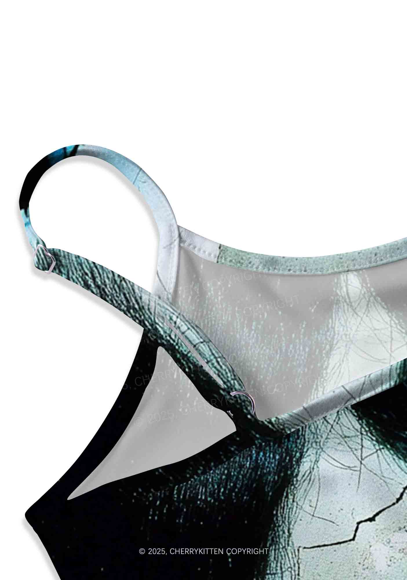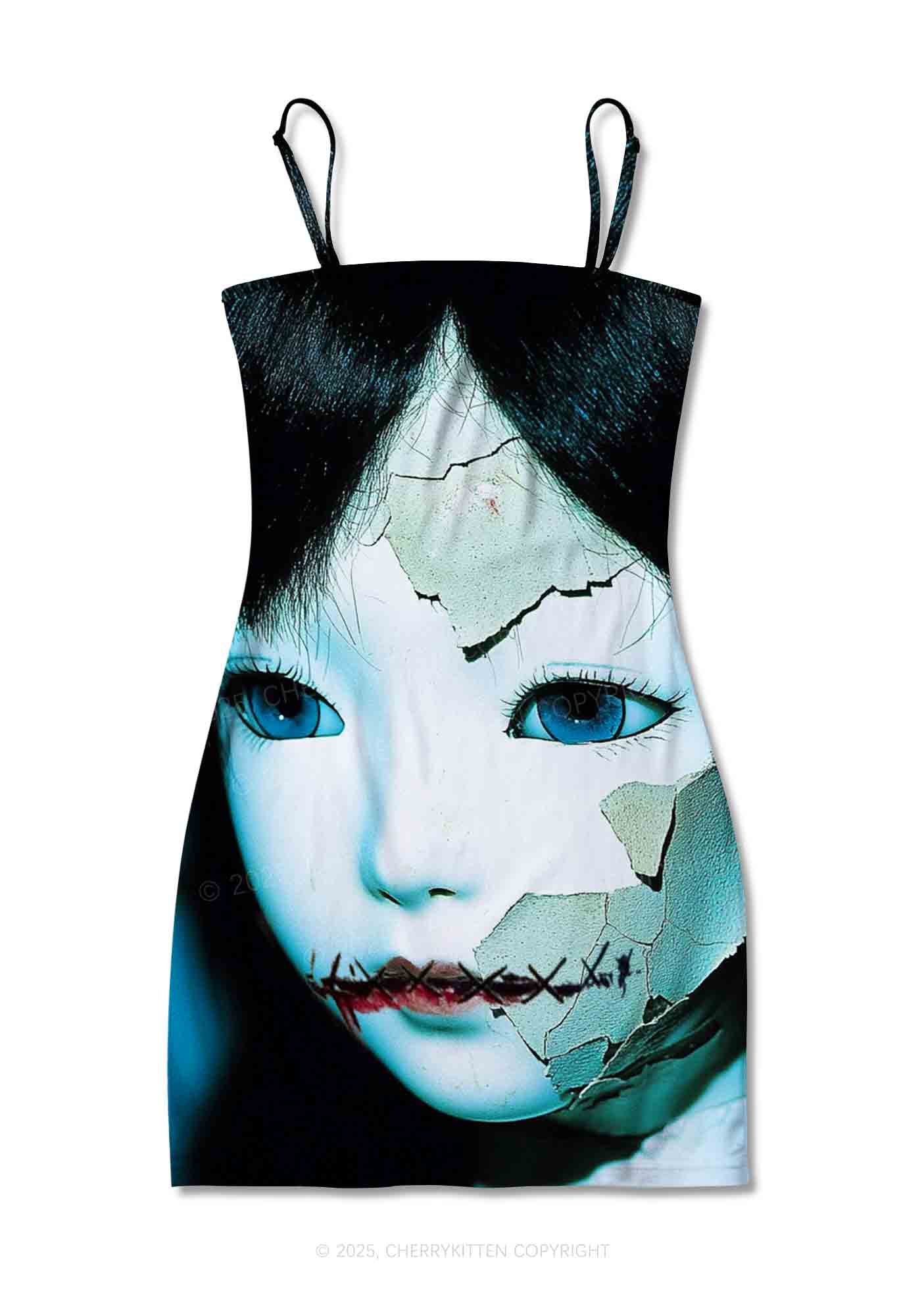 Halloween Cracked Doll Y2K Print Slip Dress Cherrykitten