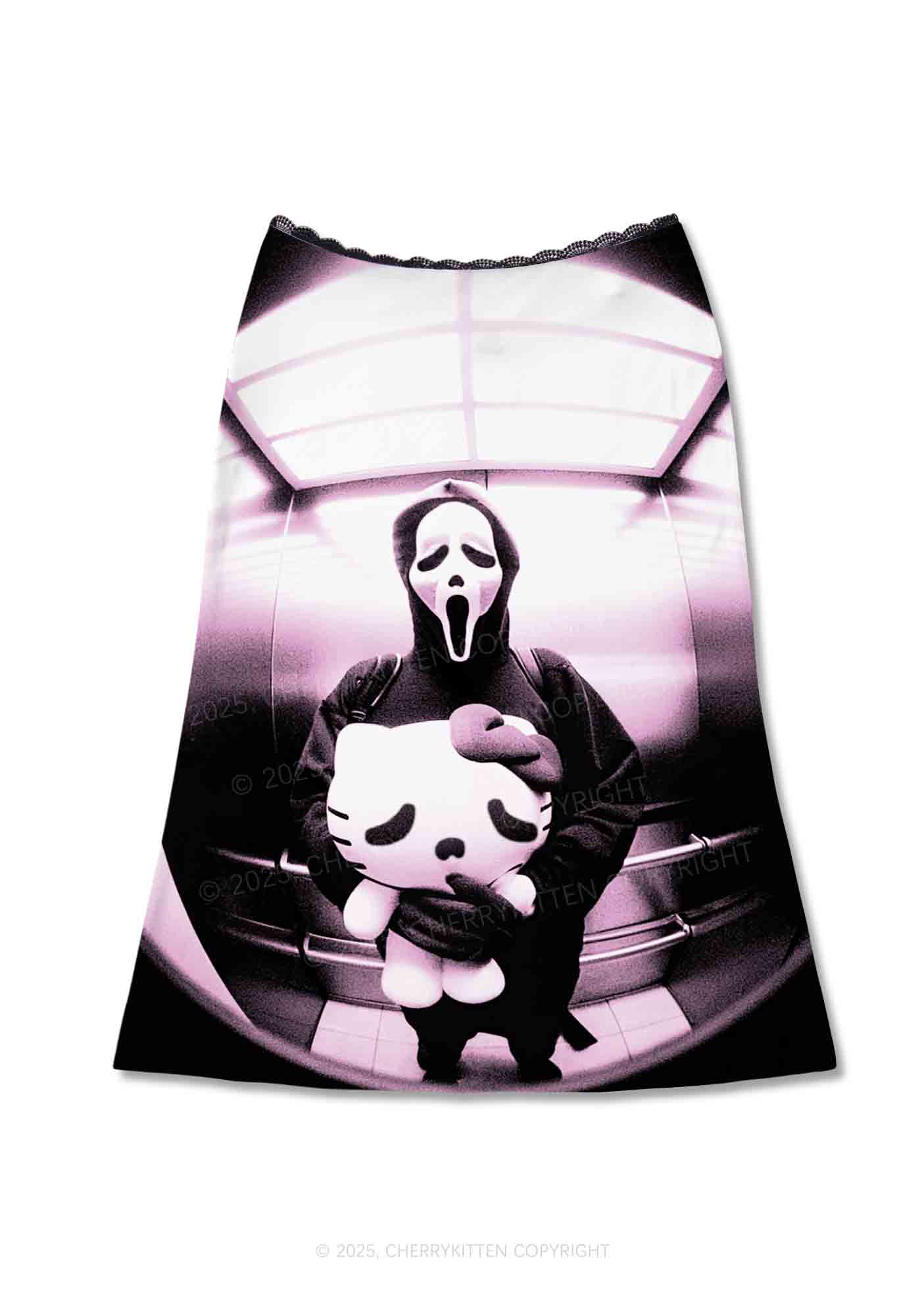 Halloween Ghost Kitten Y2K Print Midi Skirt Cherrykitten