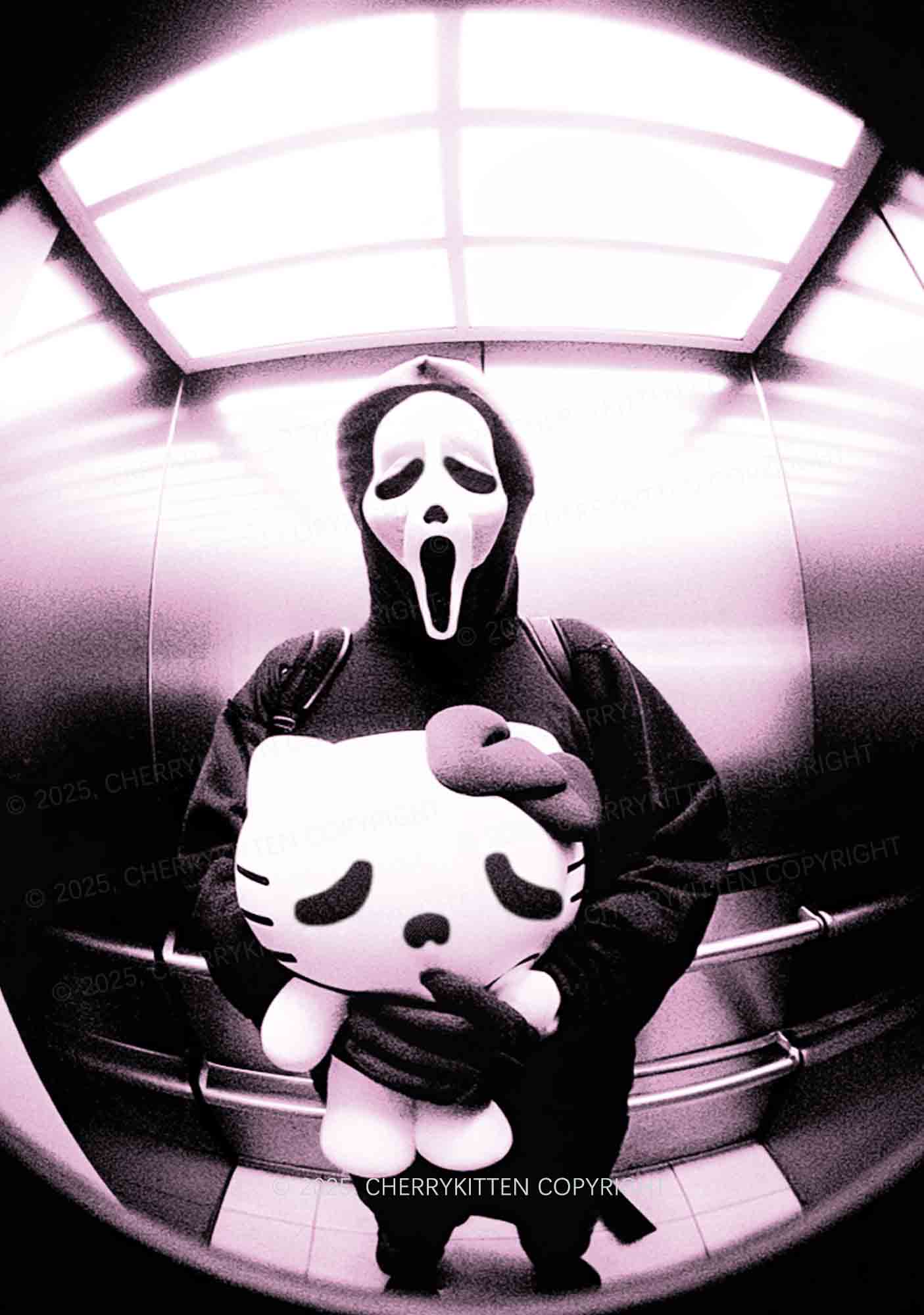 Halloween Ghost Kitten Y2K Print Mini Skirt Cherrykitten