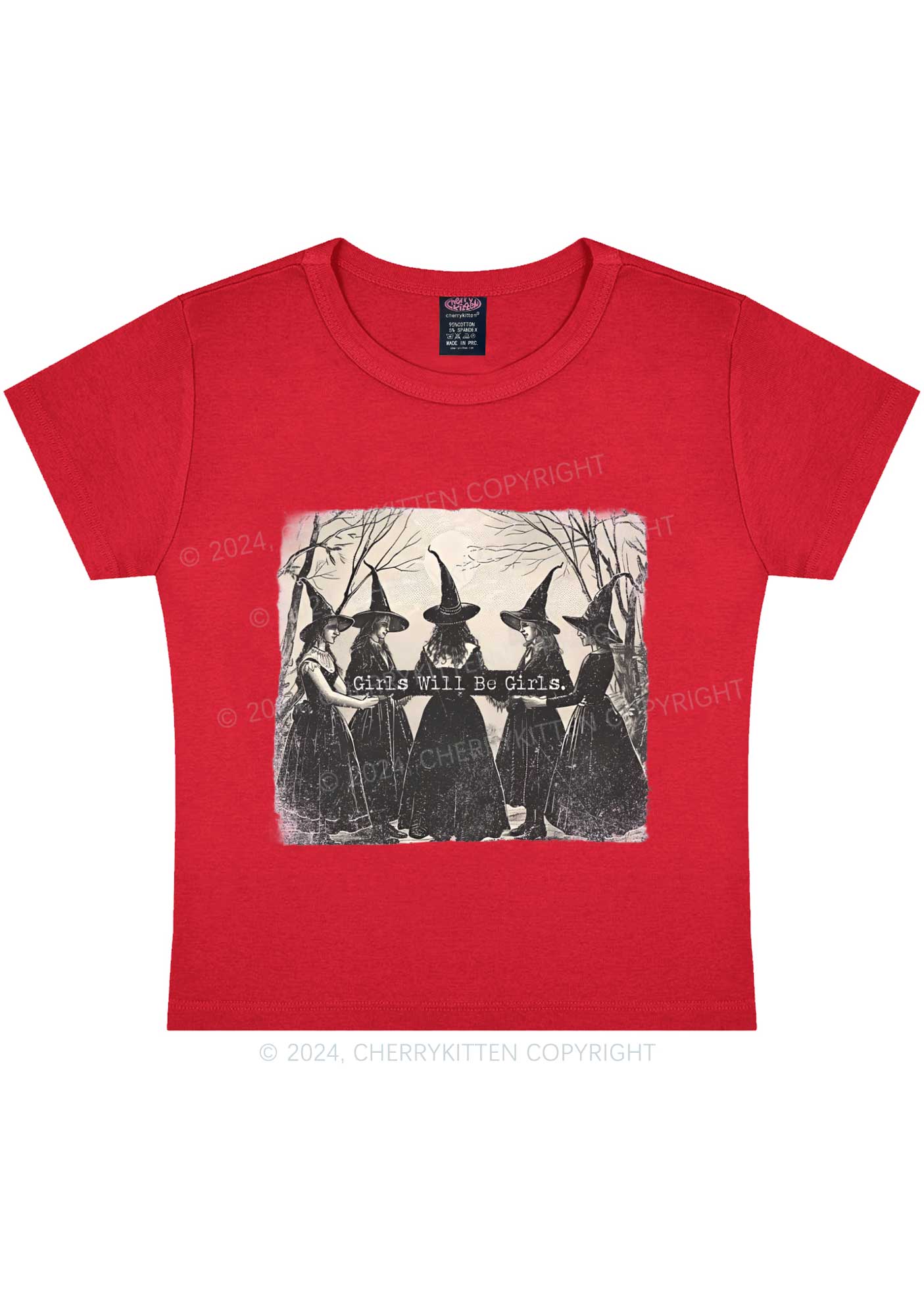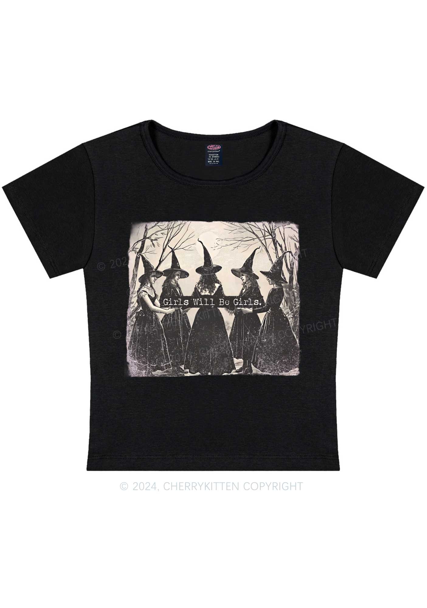 Halloween Girls Will Be Girls Y2K Baby Tee Cherrykitten
