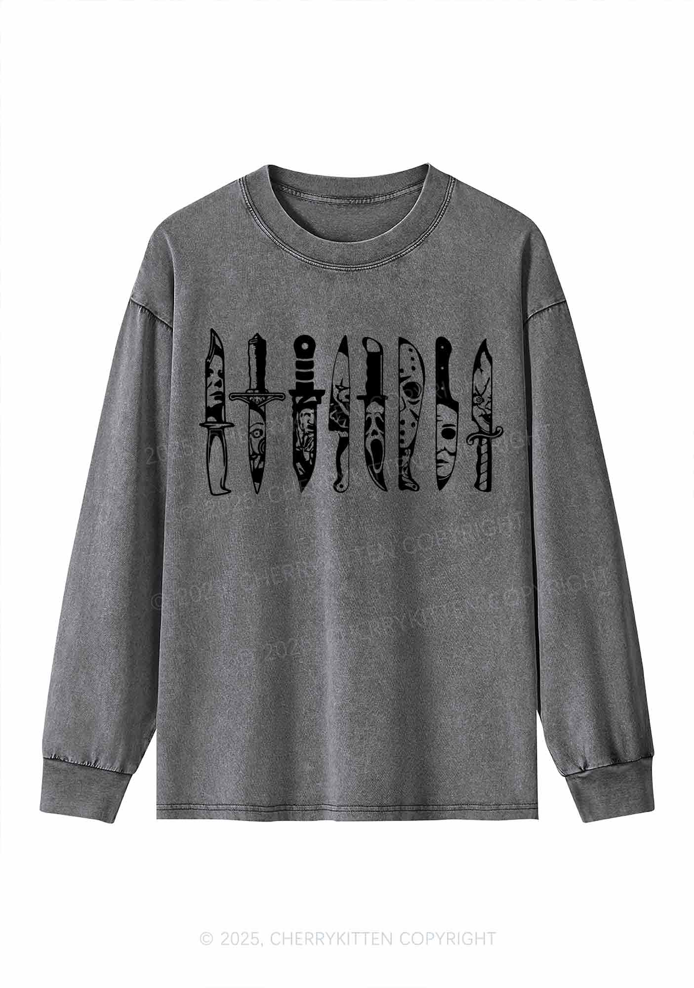 Halloween Grimace Daggers Y2K Washed Long Sleeves Cherrykitten