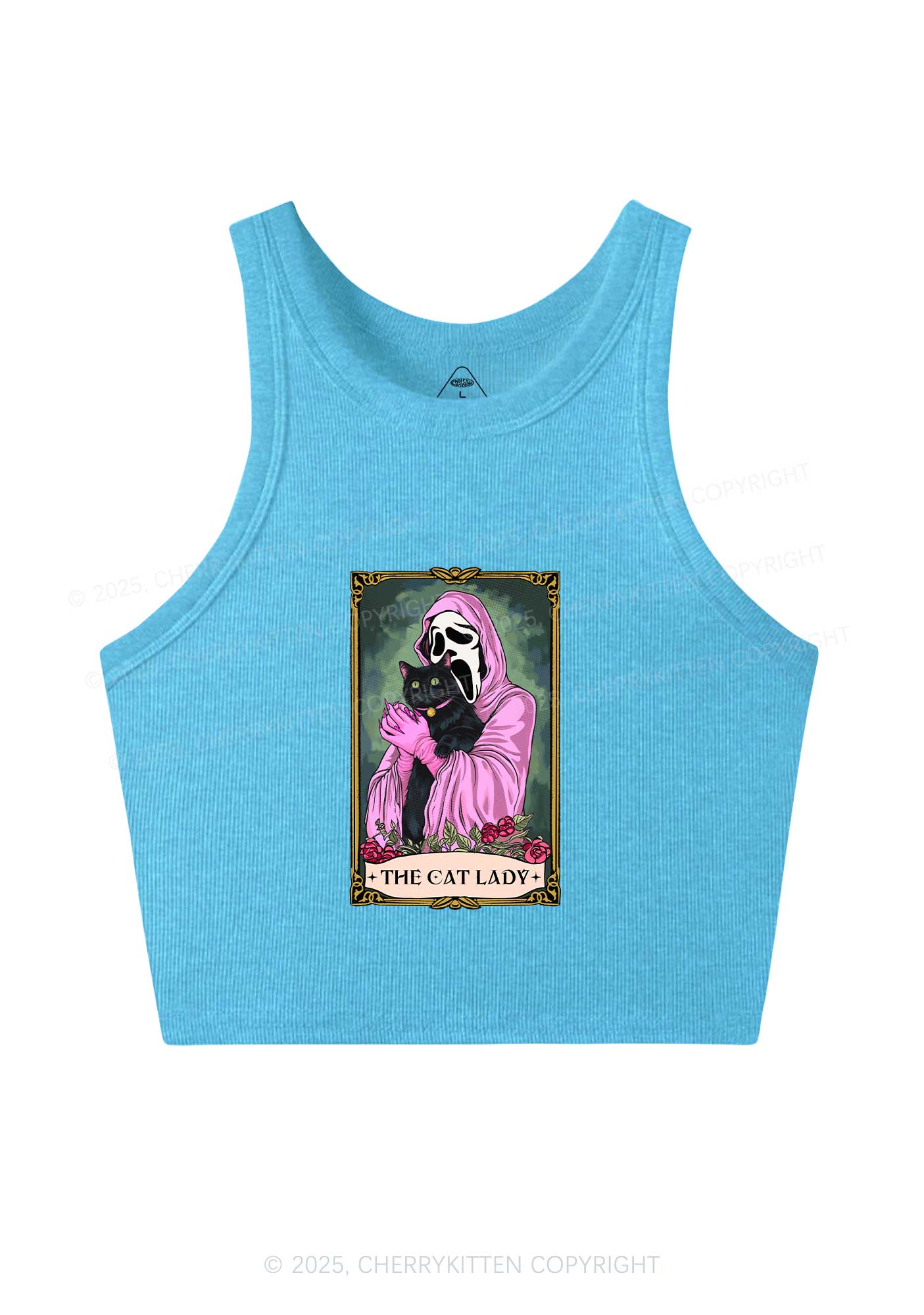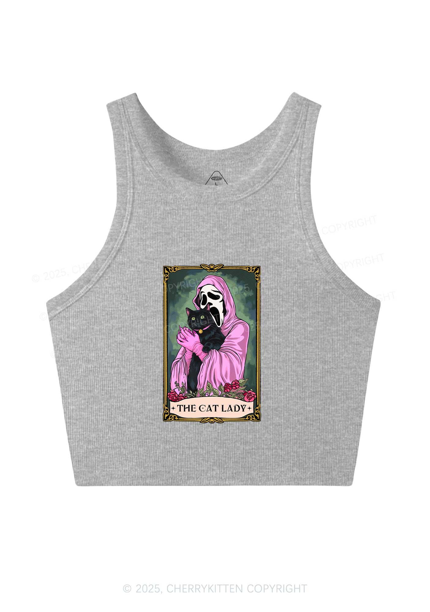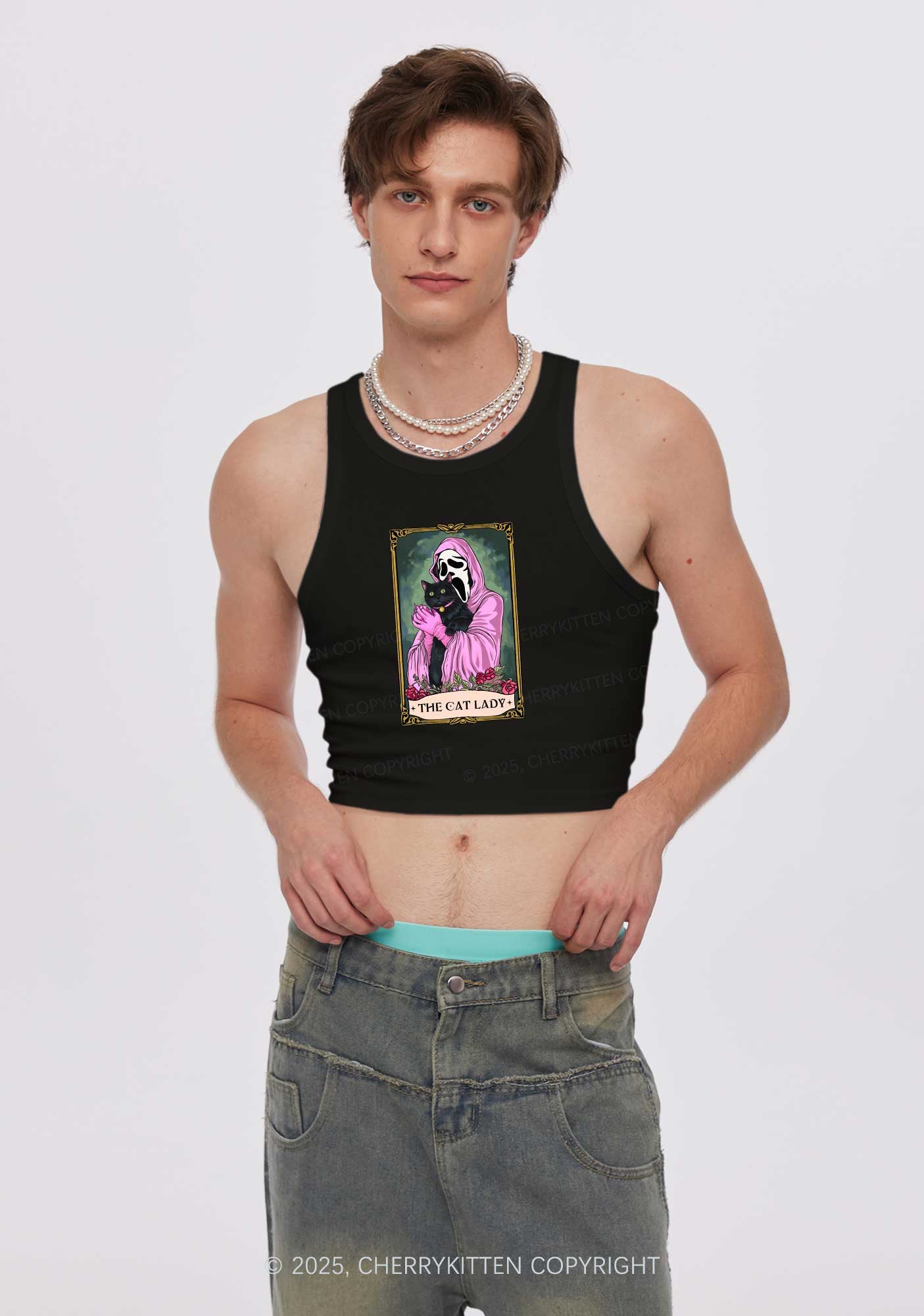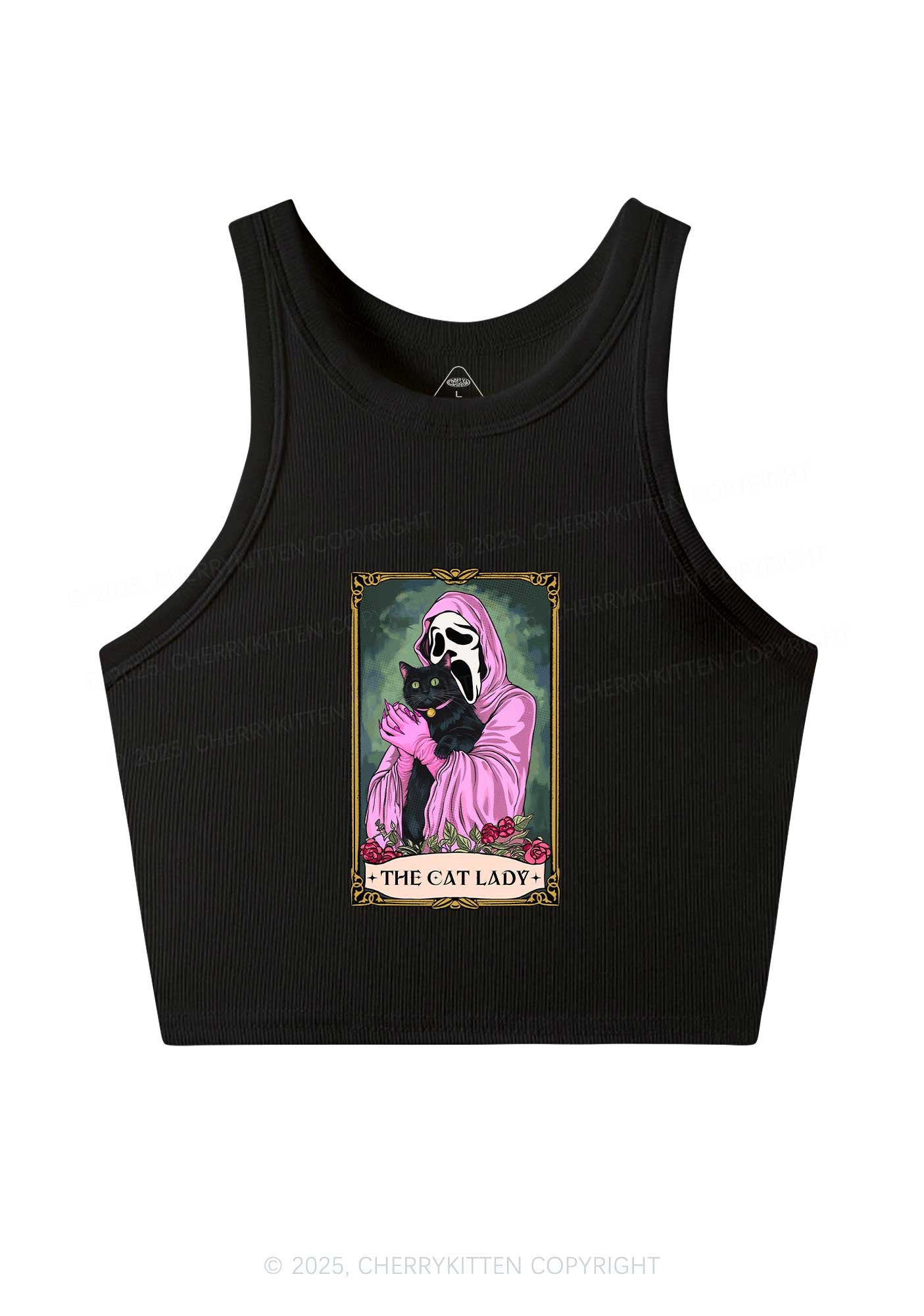 Halloween The Skull Cat Lady Y2K Crop Tank Top Cherrykitten