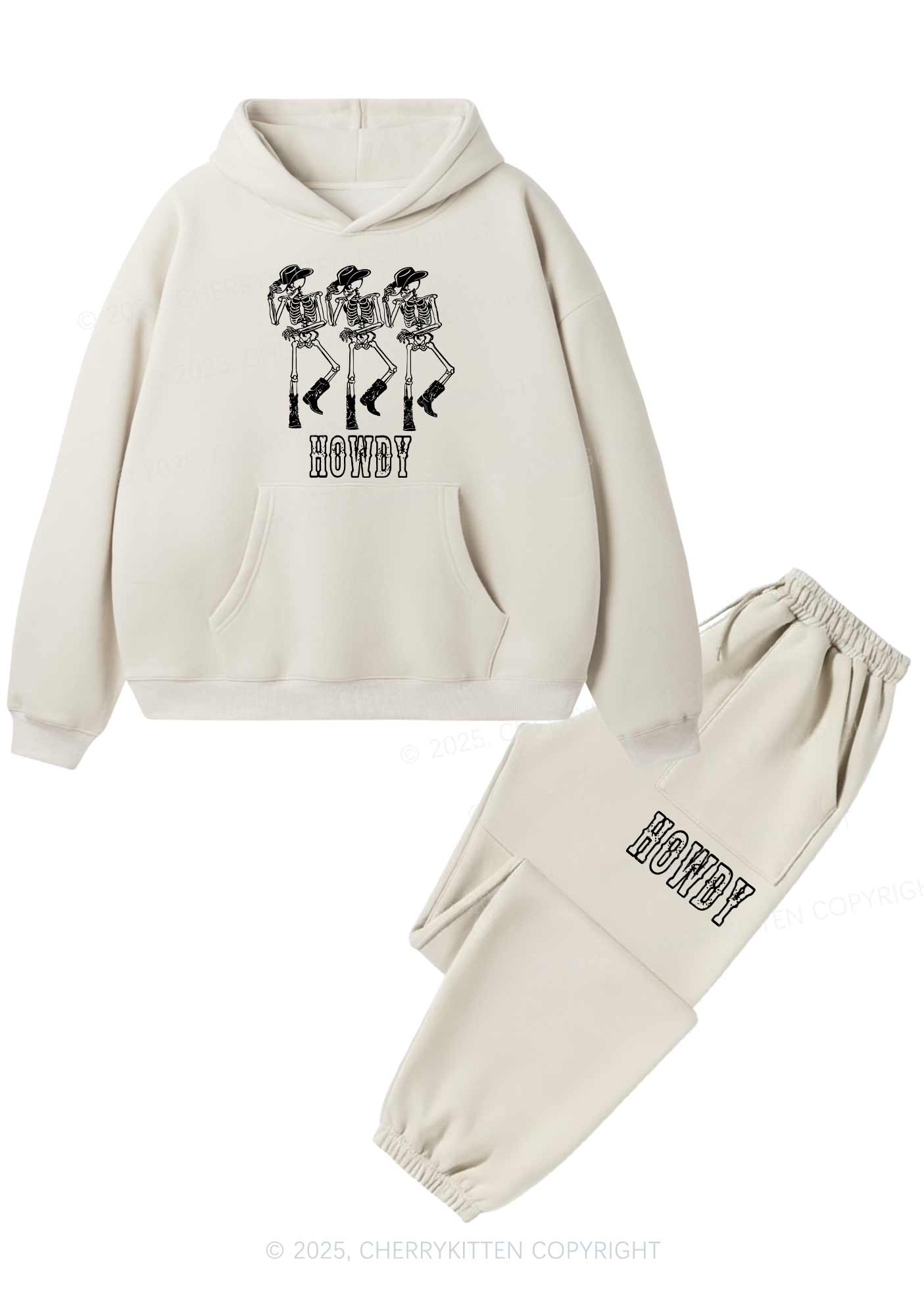 Halloween Howdy Dancing Skeletons Y2K Fleece Hoodie Set Cherrykitten