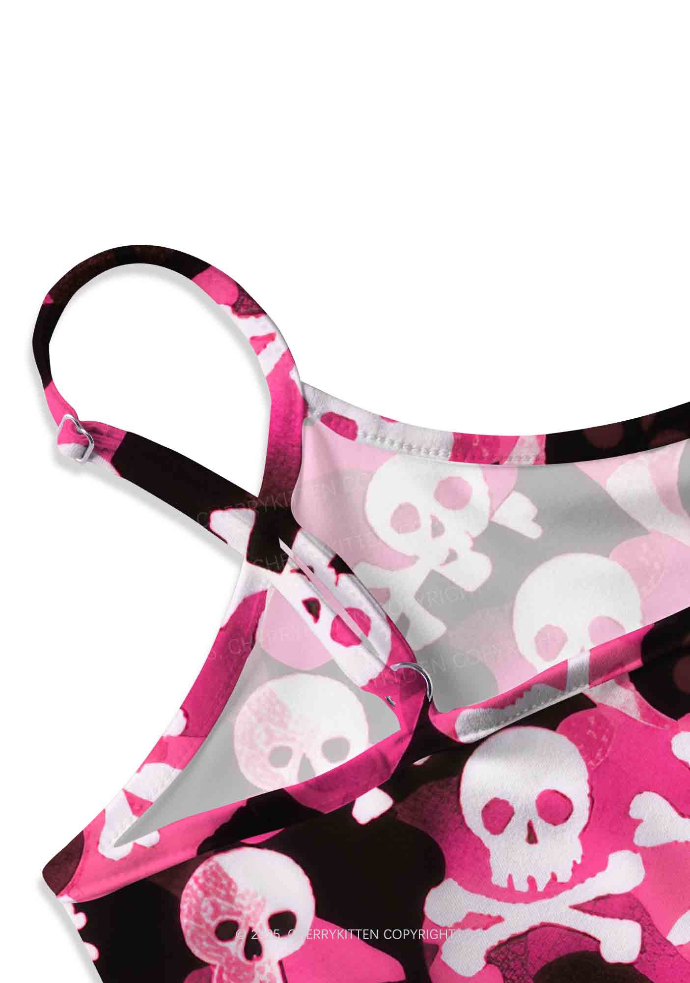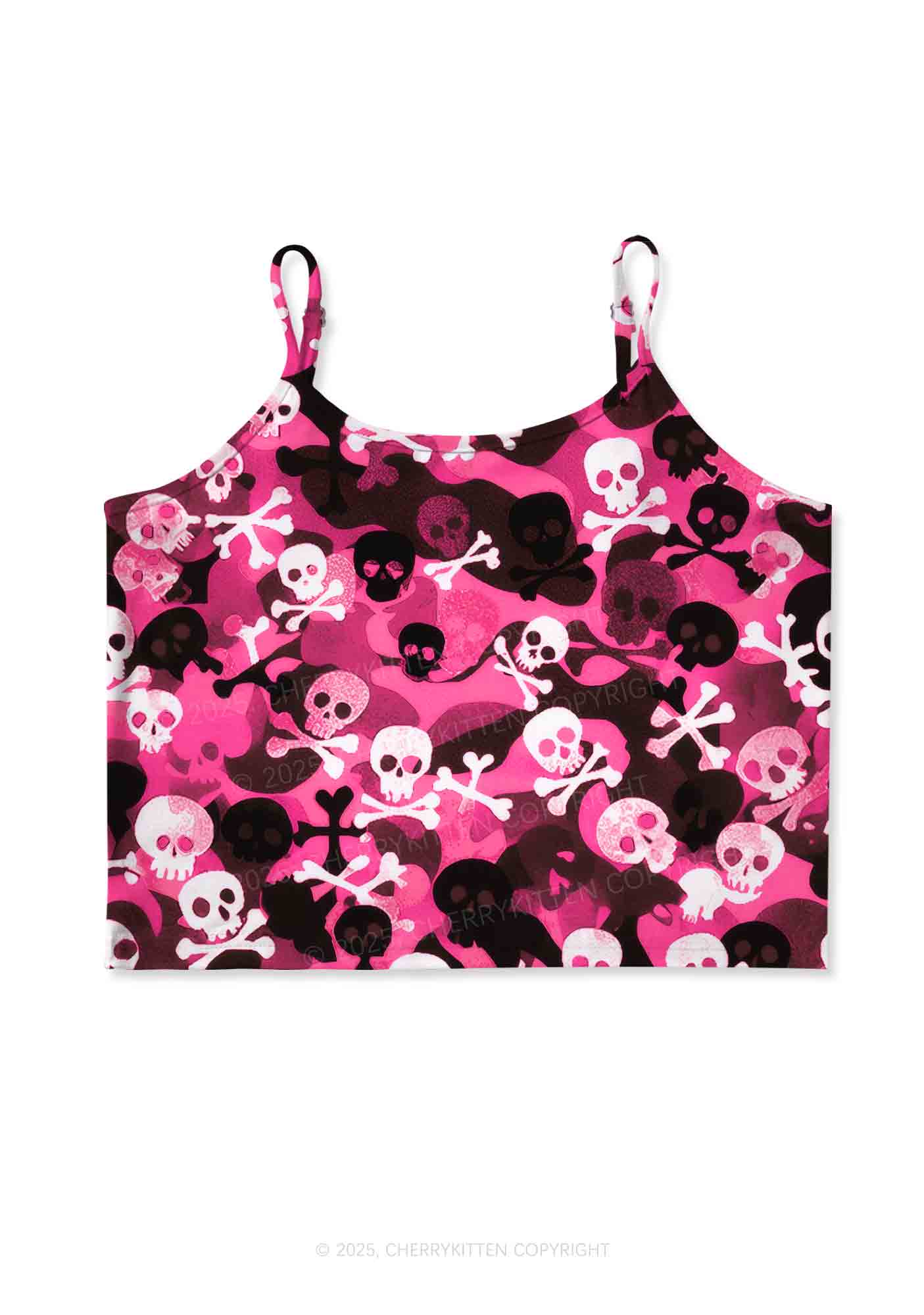 Halloween Pink Camouflage Skull Y2K Print Cami Crop Top Cherrykitten