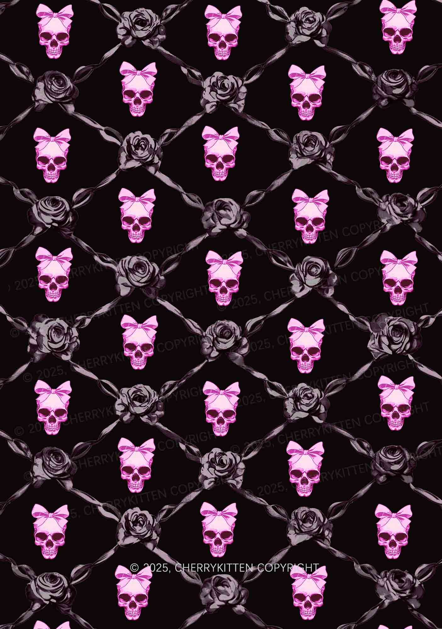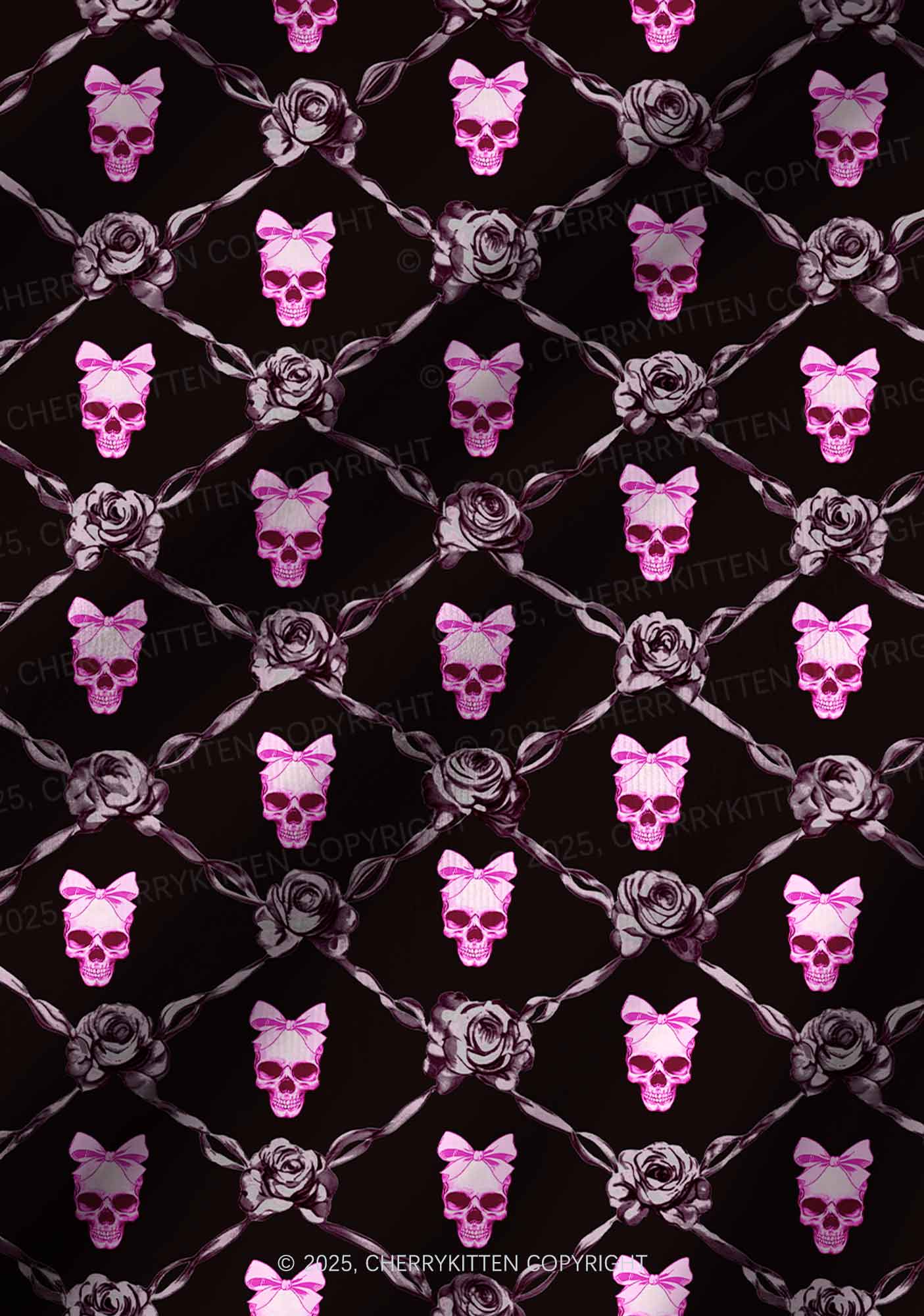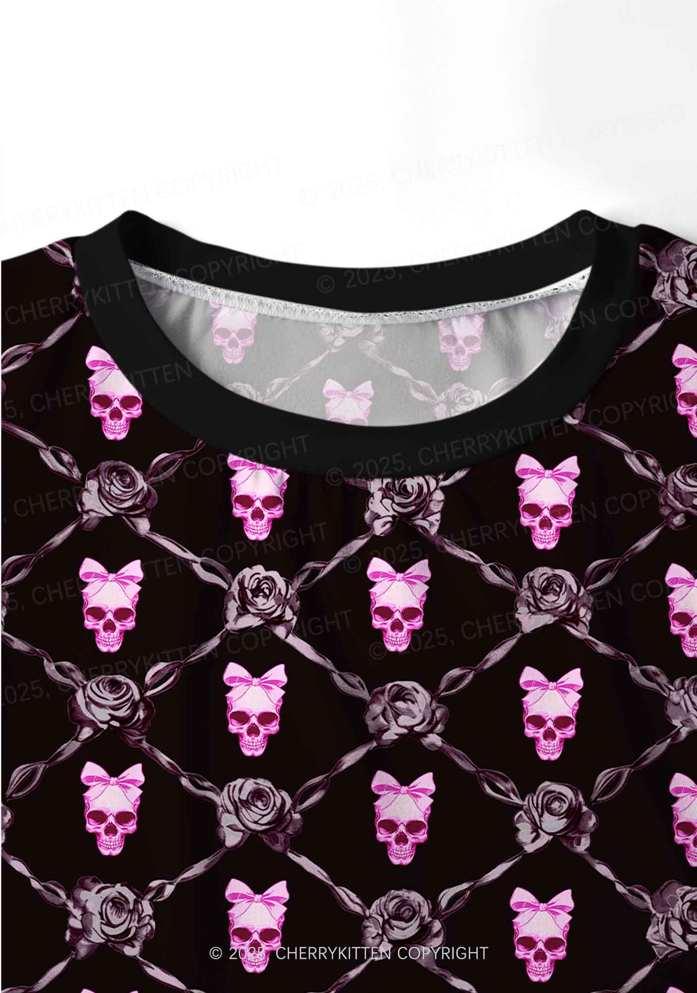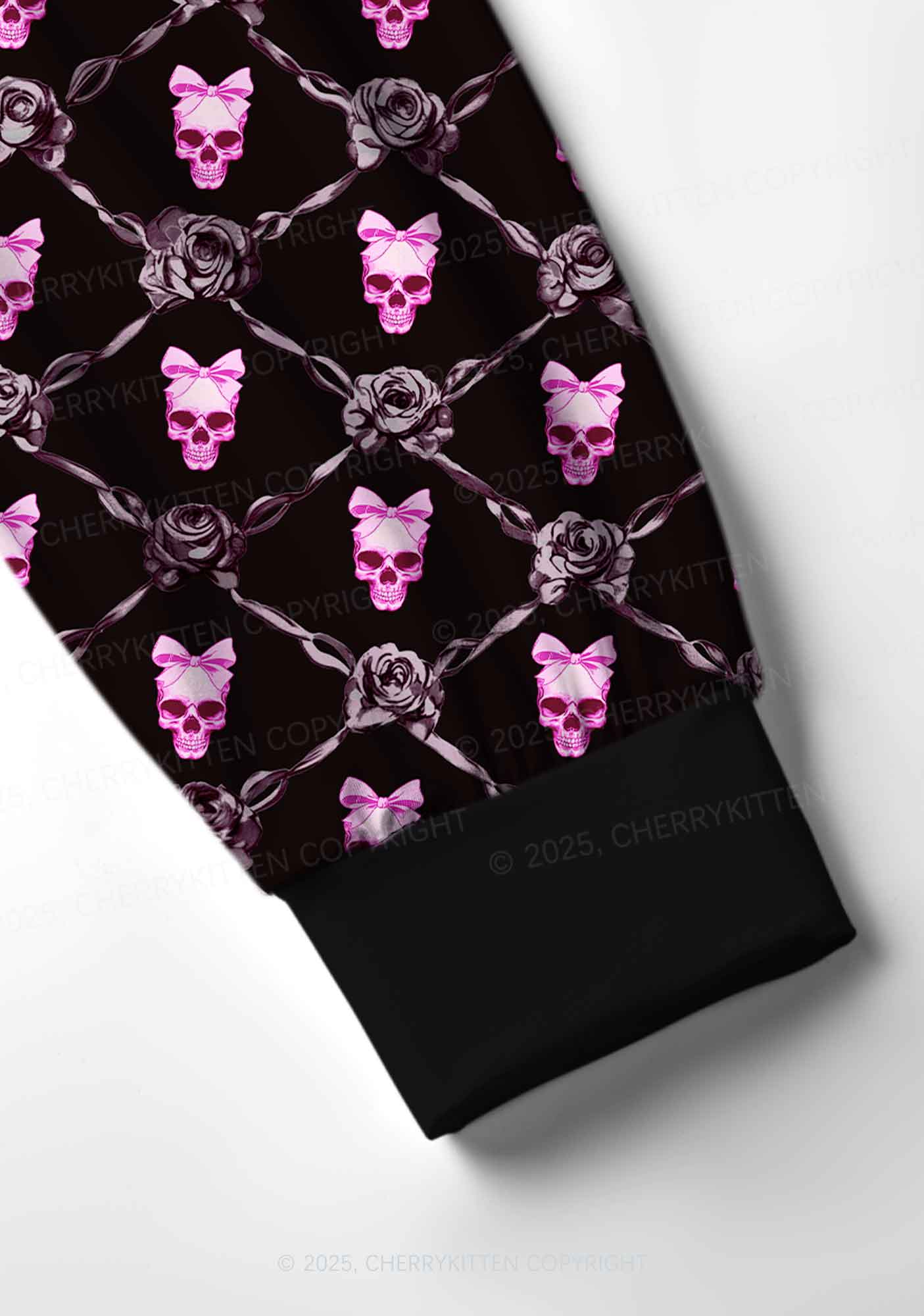 Halloween Pink Skull Y2K Print Long Sleeve Pajama Set Cherrykitten