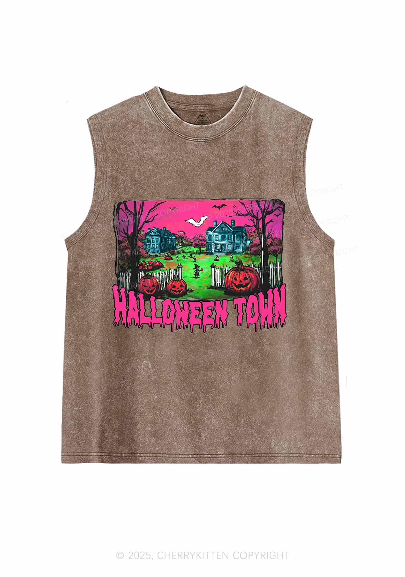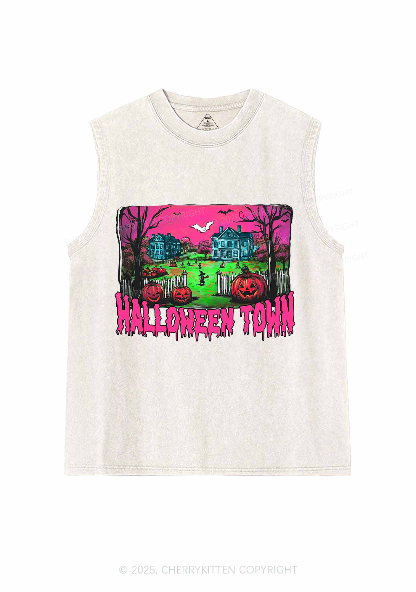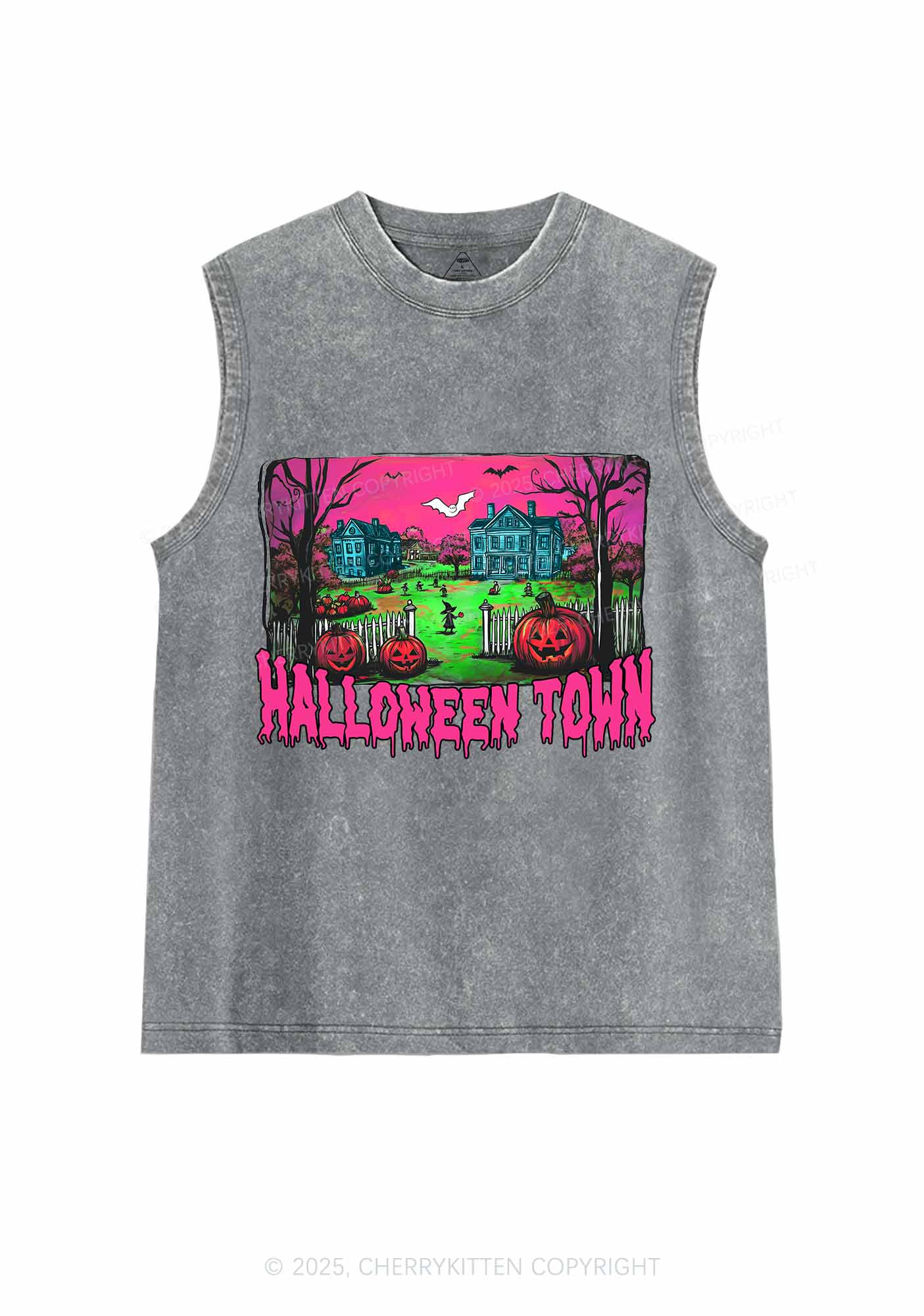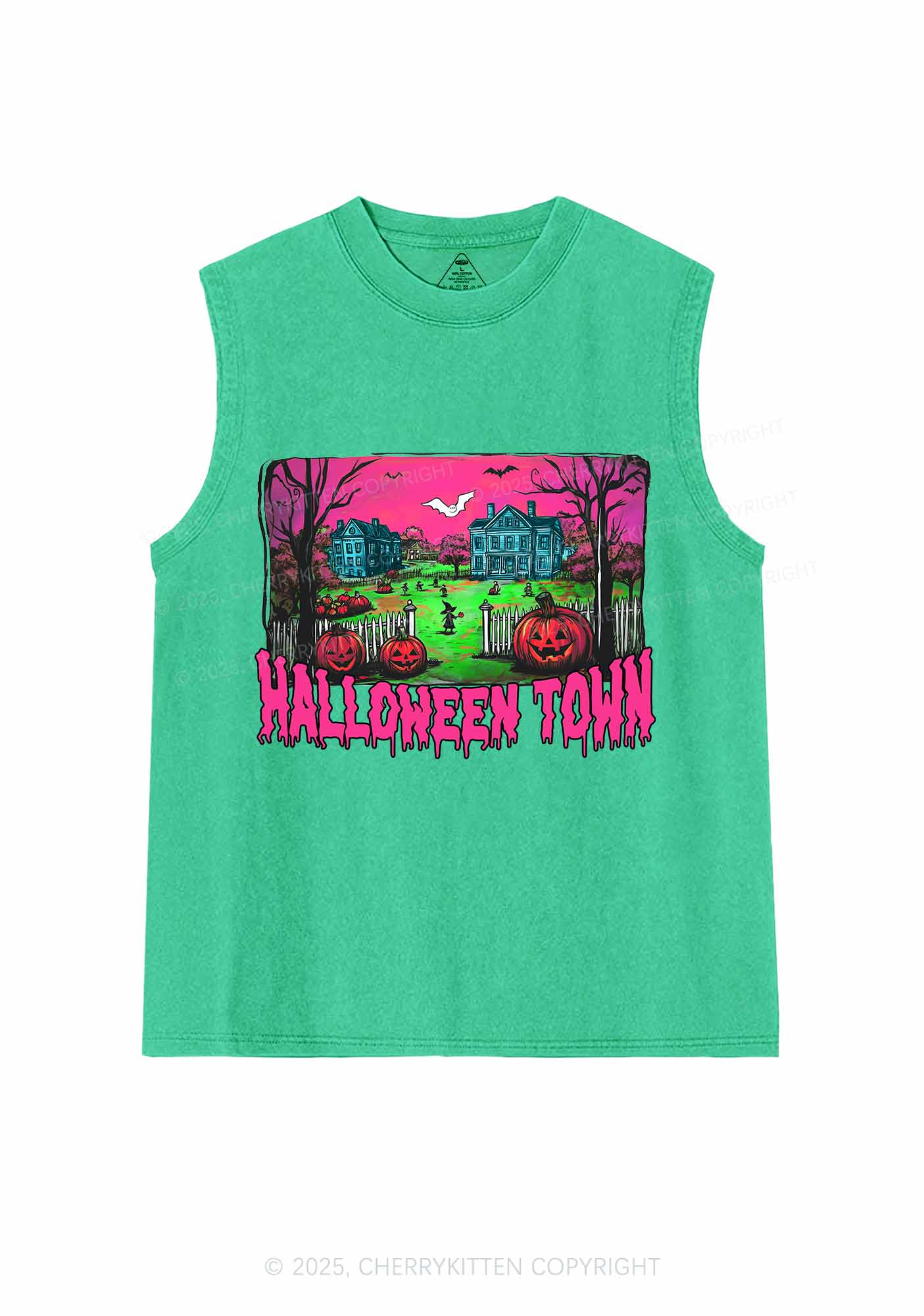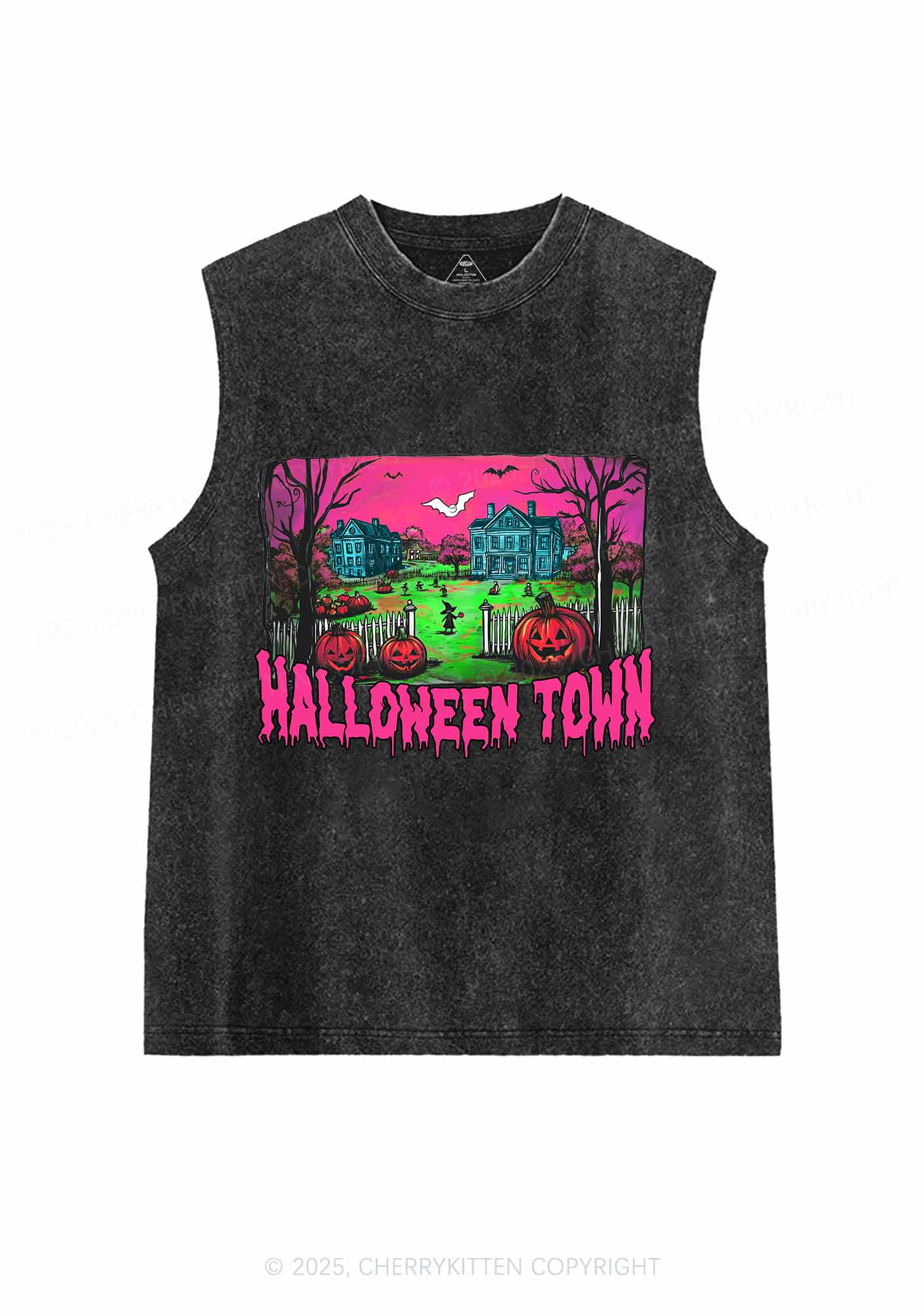 Halloween Pumpkin Town Y2K Washed Muscle Tank Cherrykitten