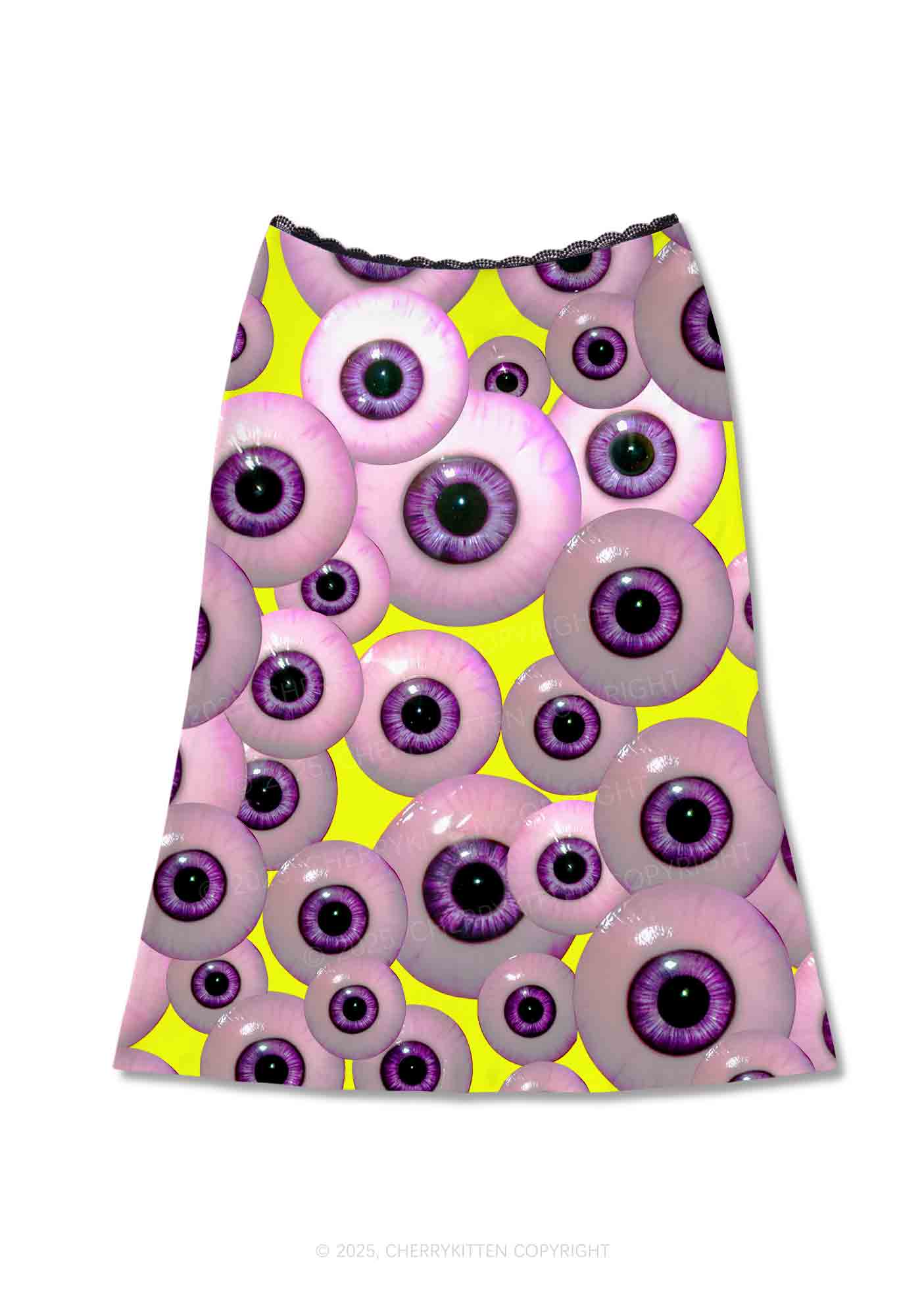 Halloween Purple Eyeballs Y2K Print Midi Skirt Cherrykitten