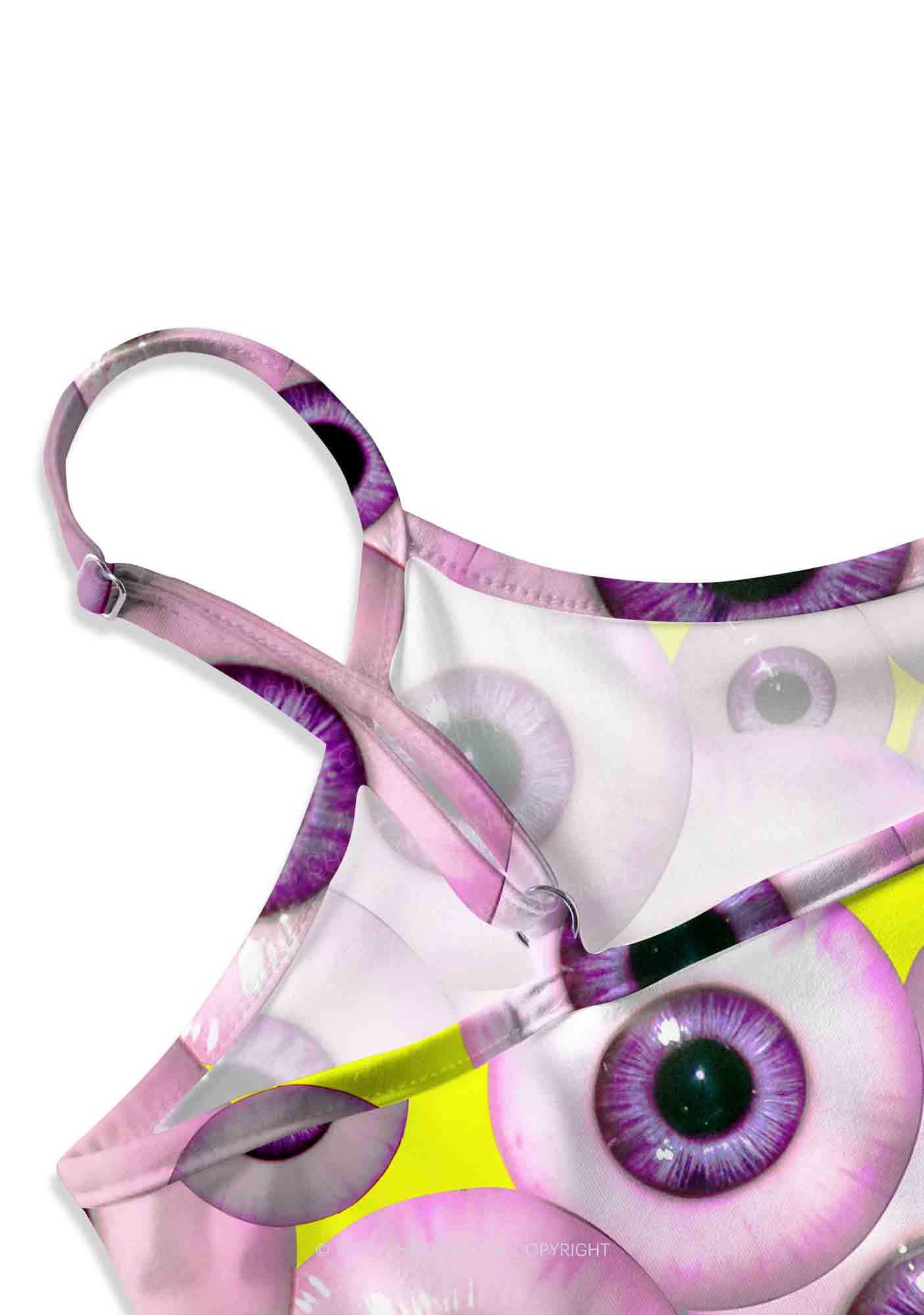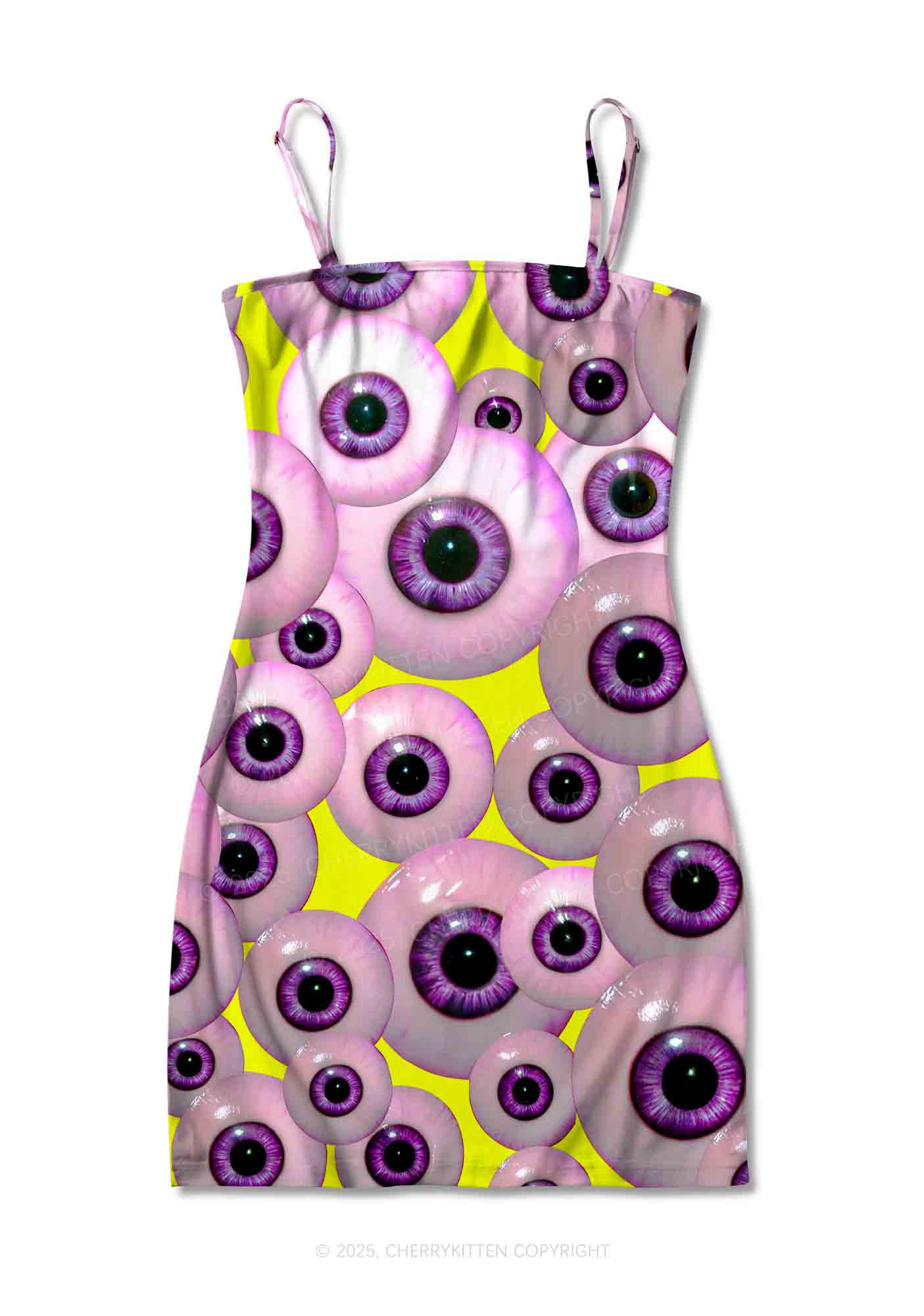 Halloween Purple Eyeballs Y2K Print Slip Dress Cherrykitten