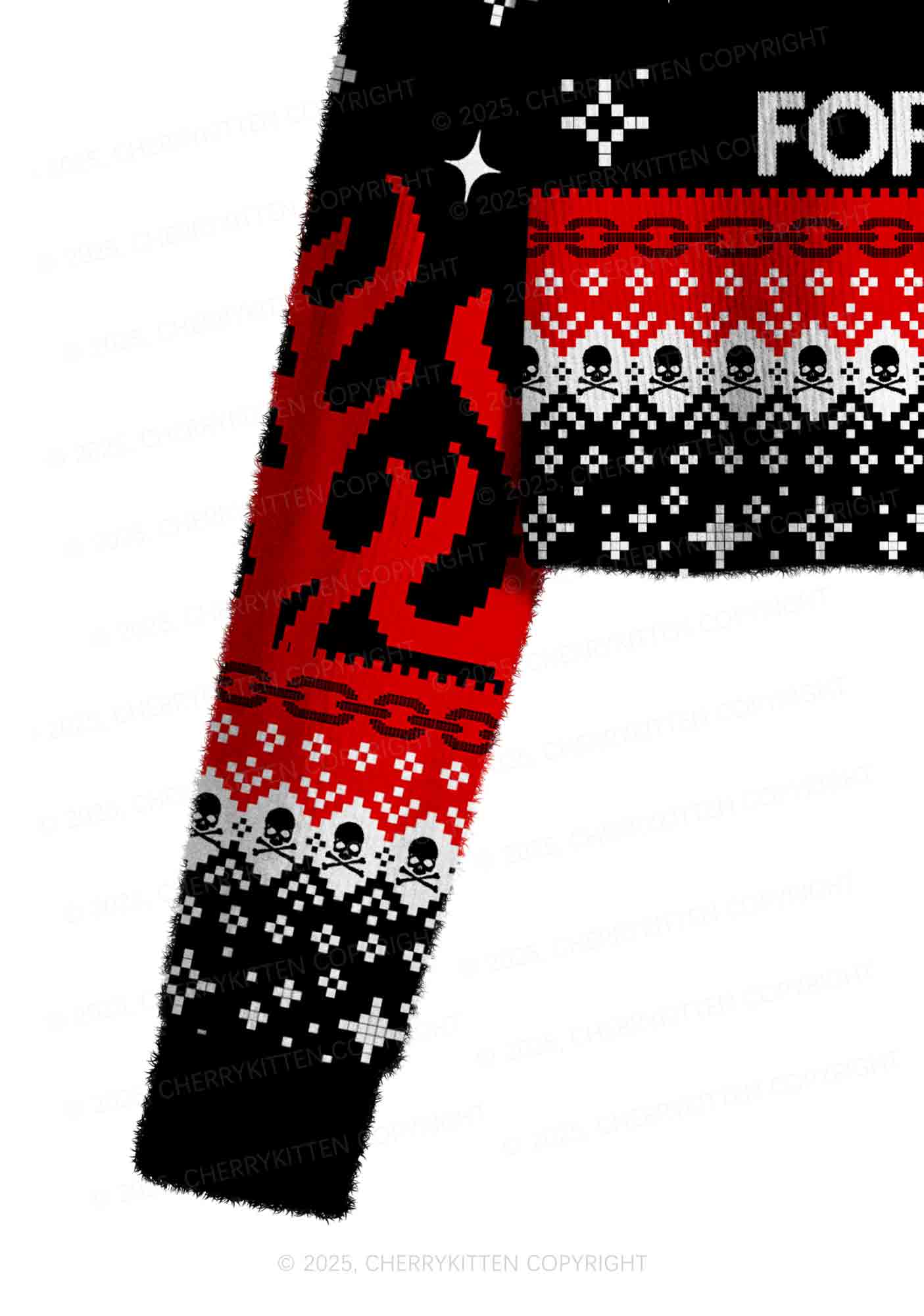 Halloween Satan Loves You Heart Y2K Christmas Crop Knit Sweatshirt Cherrykitten