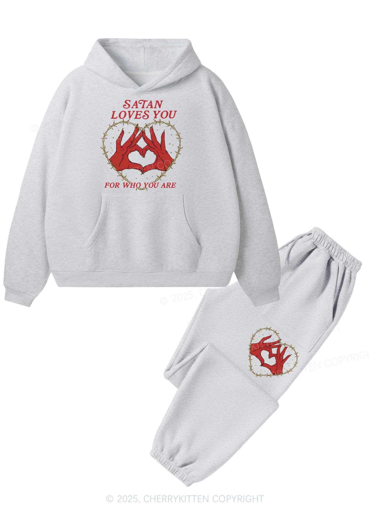 Halloween Satan Loves You Heart Y2K Fleece Hoodie Set Cherrykitten