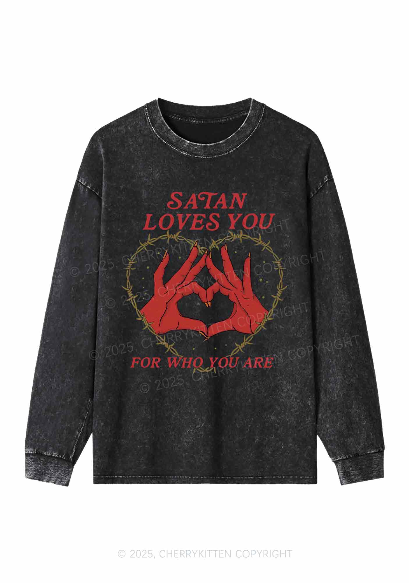 Halloween Satan Loves You Heart Y2K Washed Long Sleeves Cherrykitten