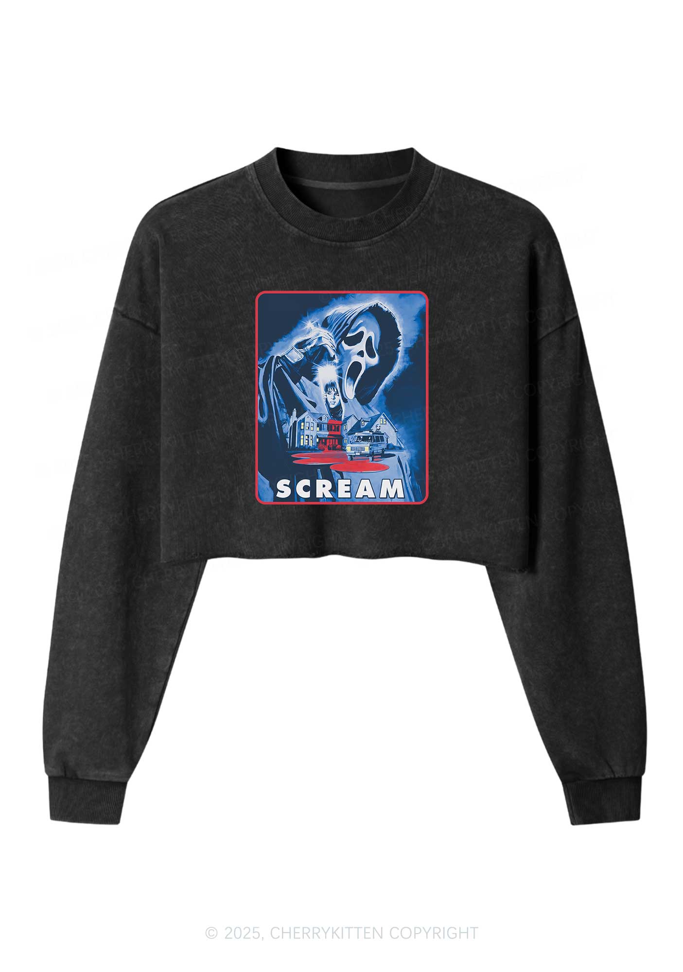 Halloween Scream Y2K Crop Washed Sweatshirts Cherrykitten