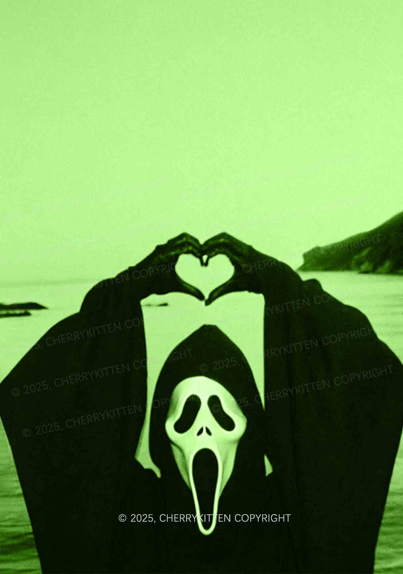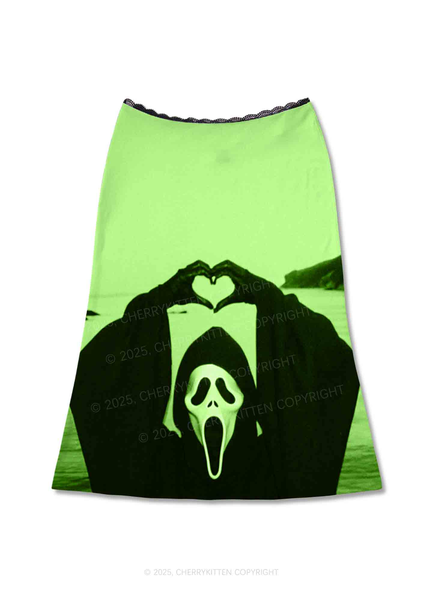 Halloween Seaside Ghost Heart Y2K Print Midi Skirt Cherrykitten