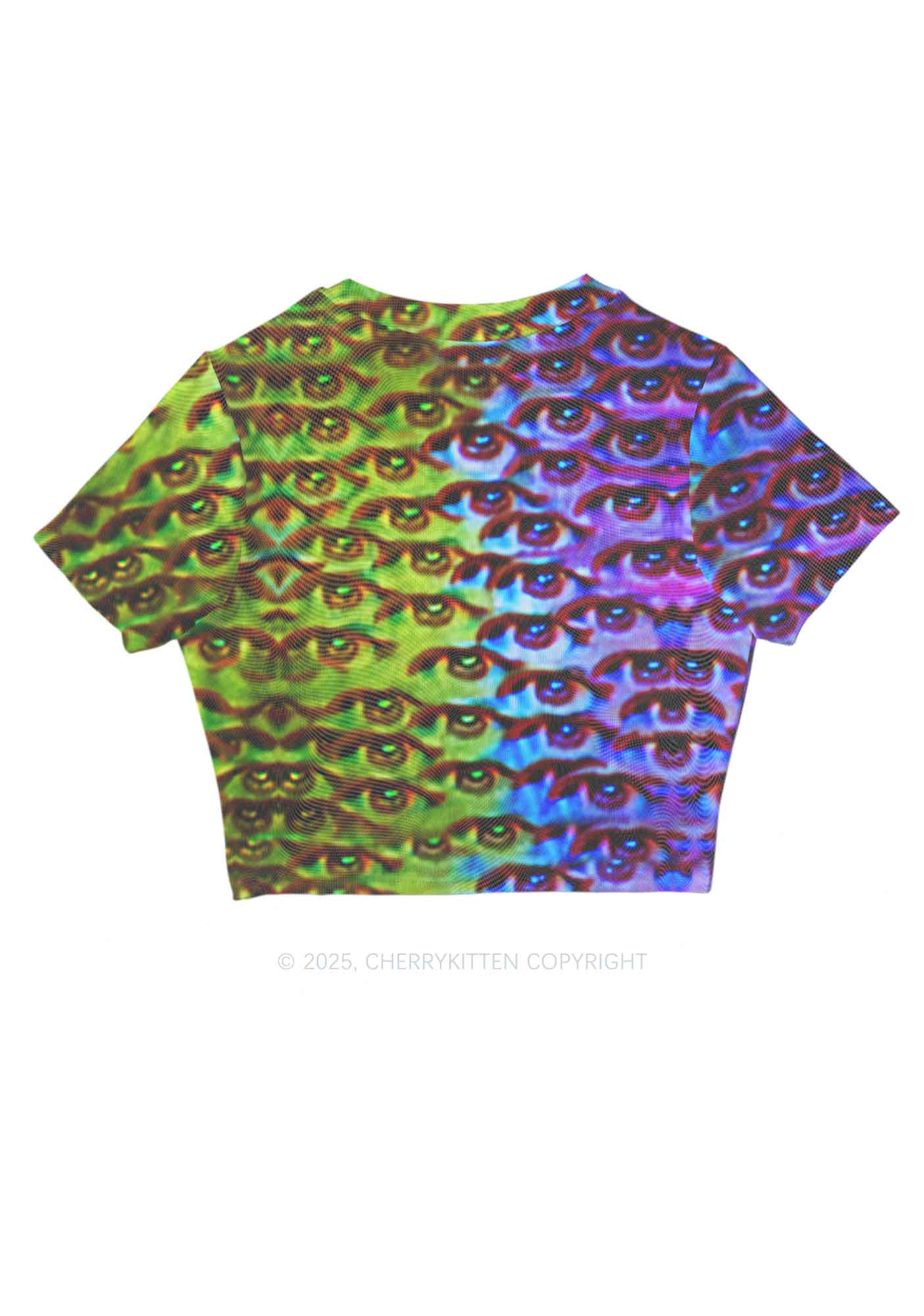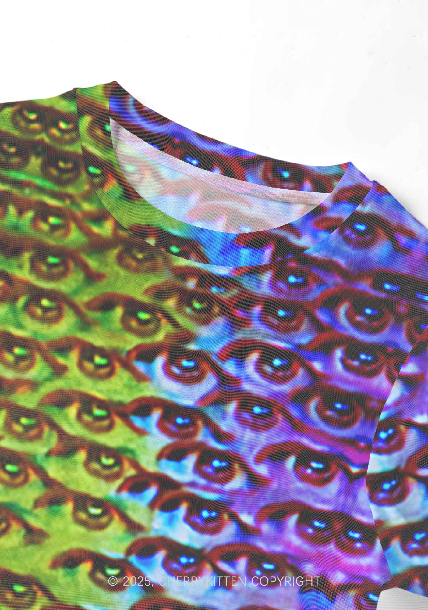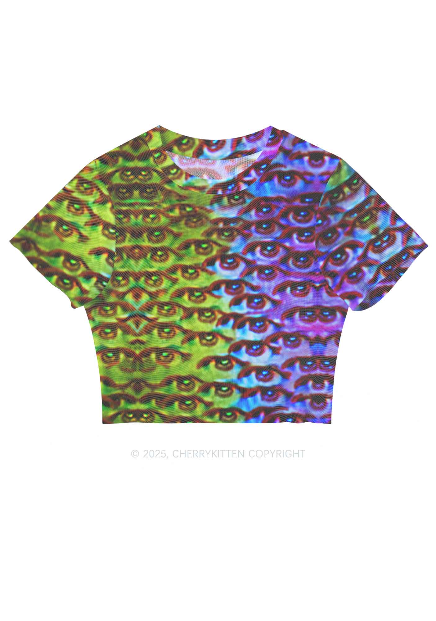 Halloween Spectrum Eyes Y2K Mesh Crop Top Cherrykitten