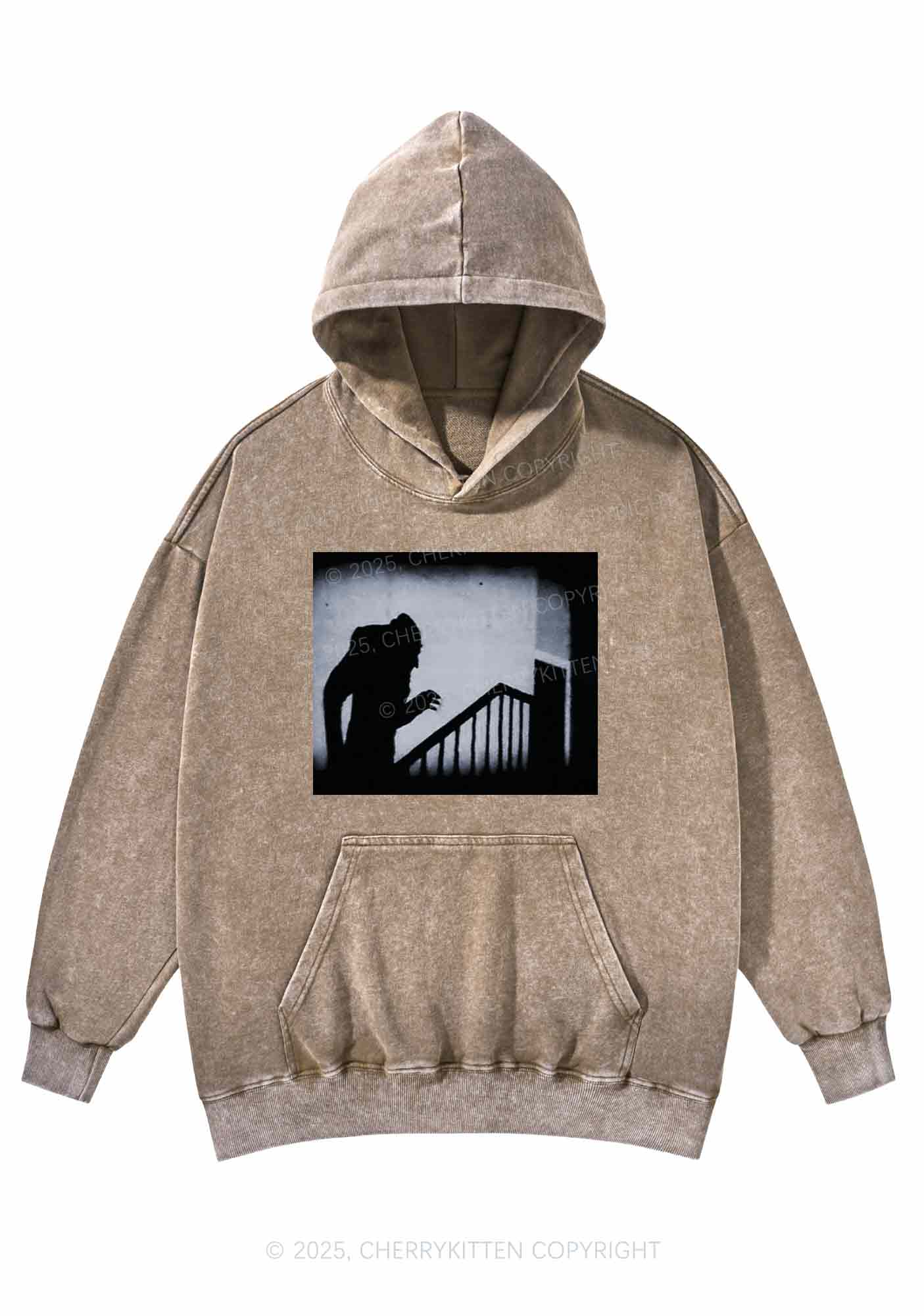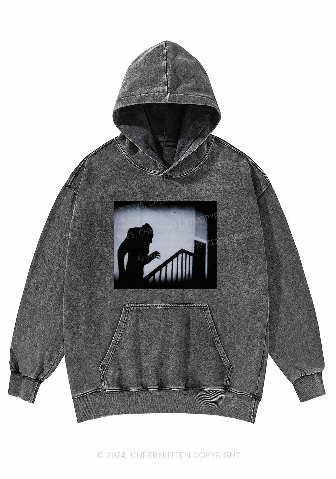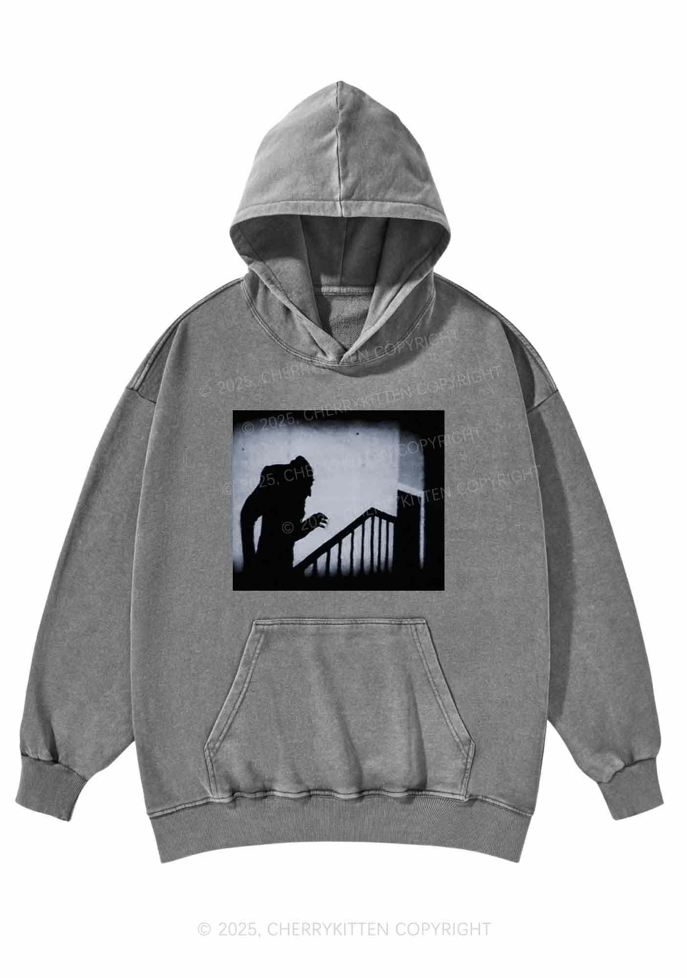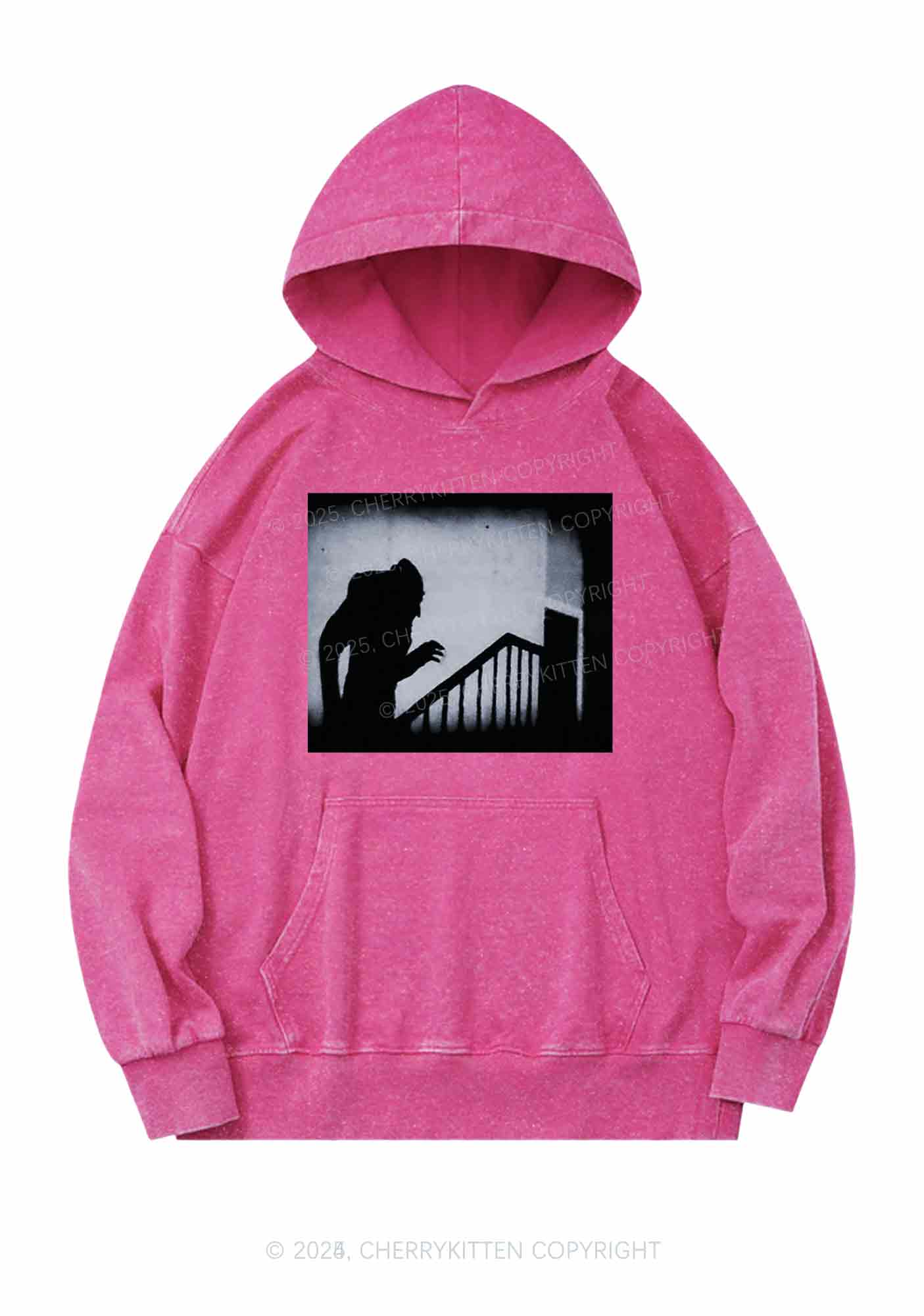 Halloween Stairs Intruder Y2K Washed Hoodie Cherrykitten