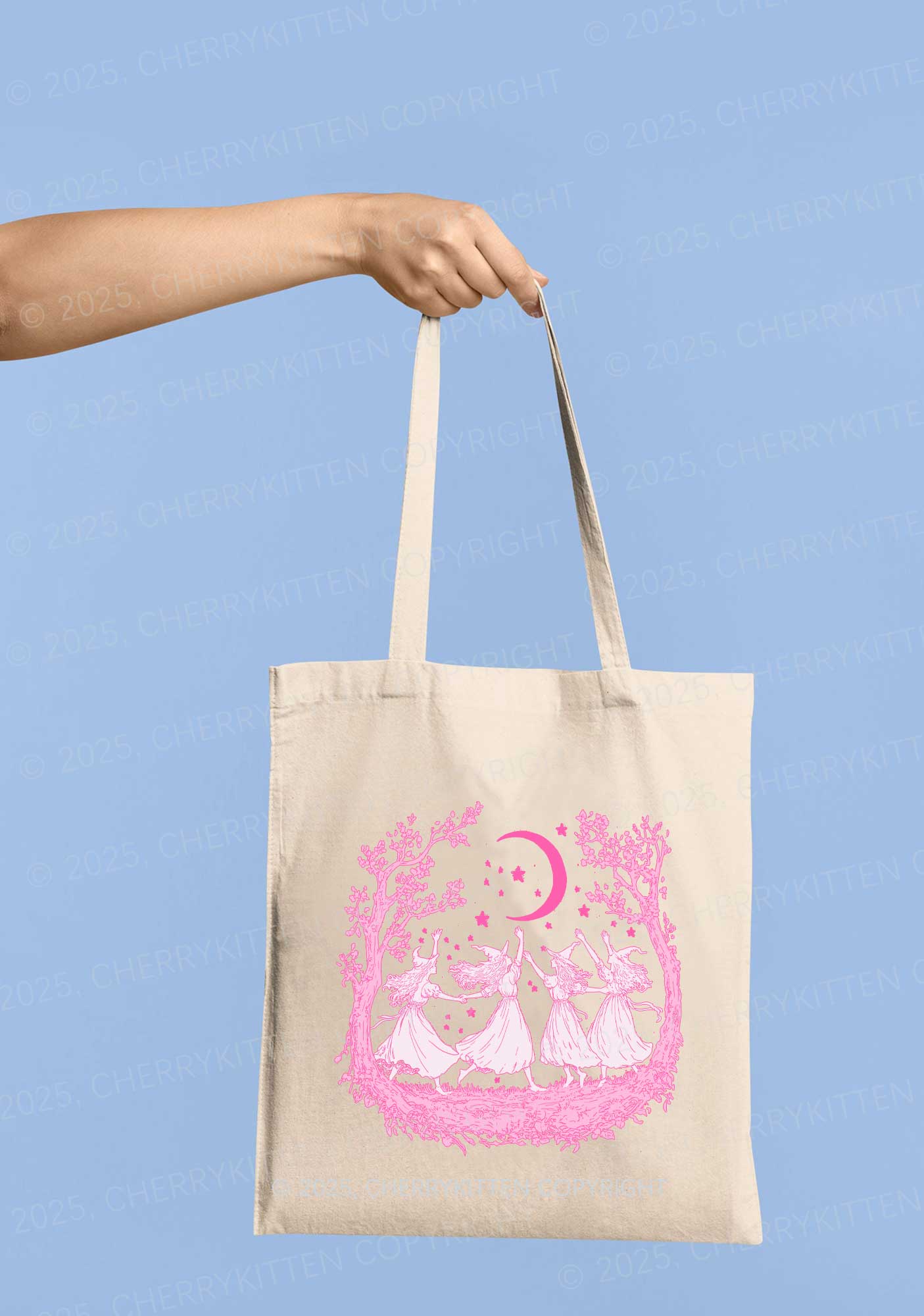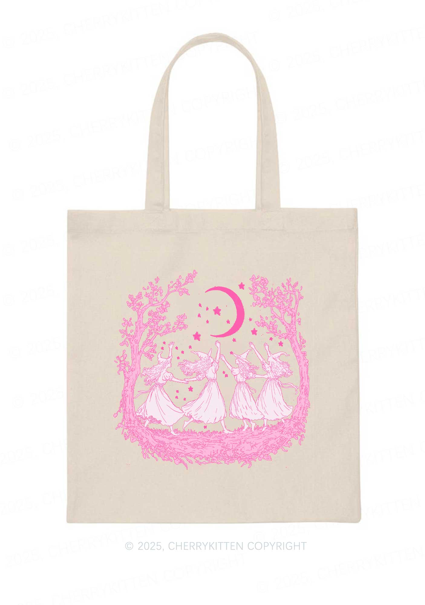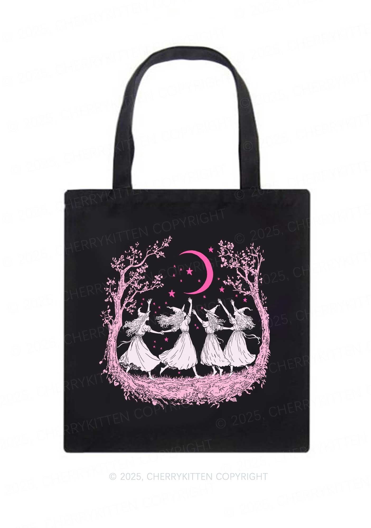 Halloween Witches Dancing Under Moon Y2K Canvas Tote Bag Cherrykitten