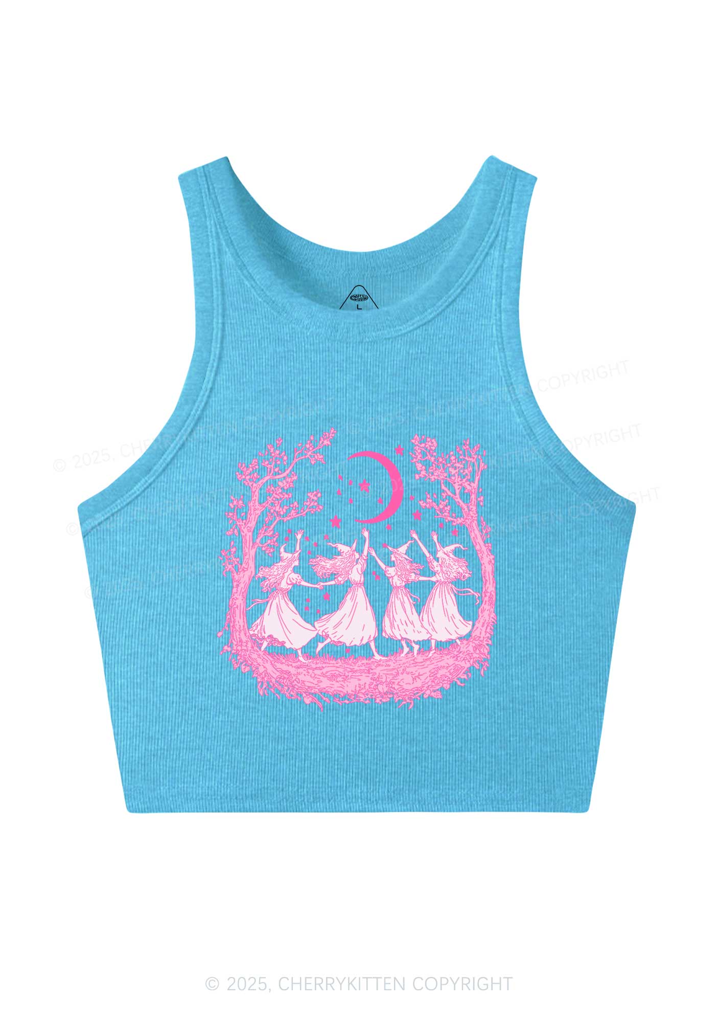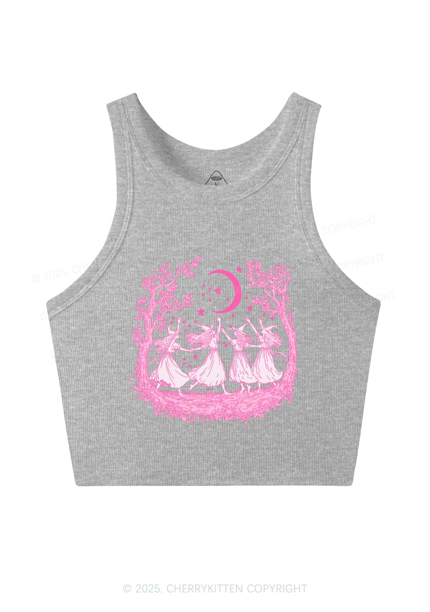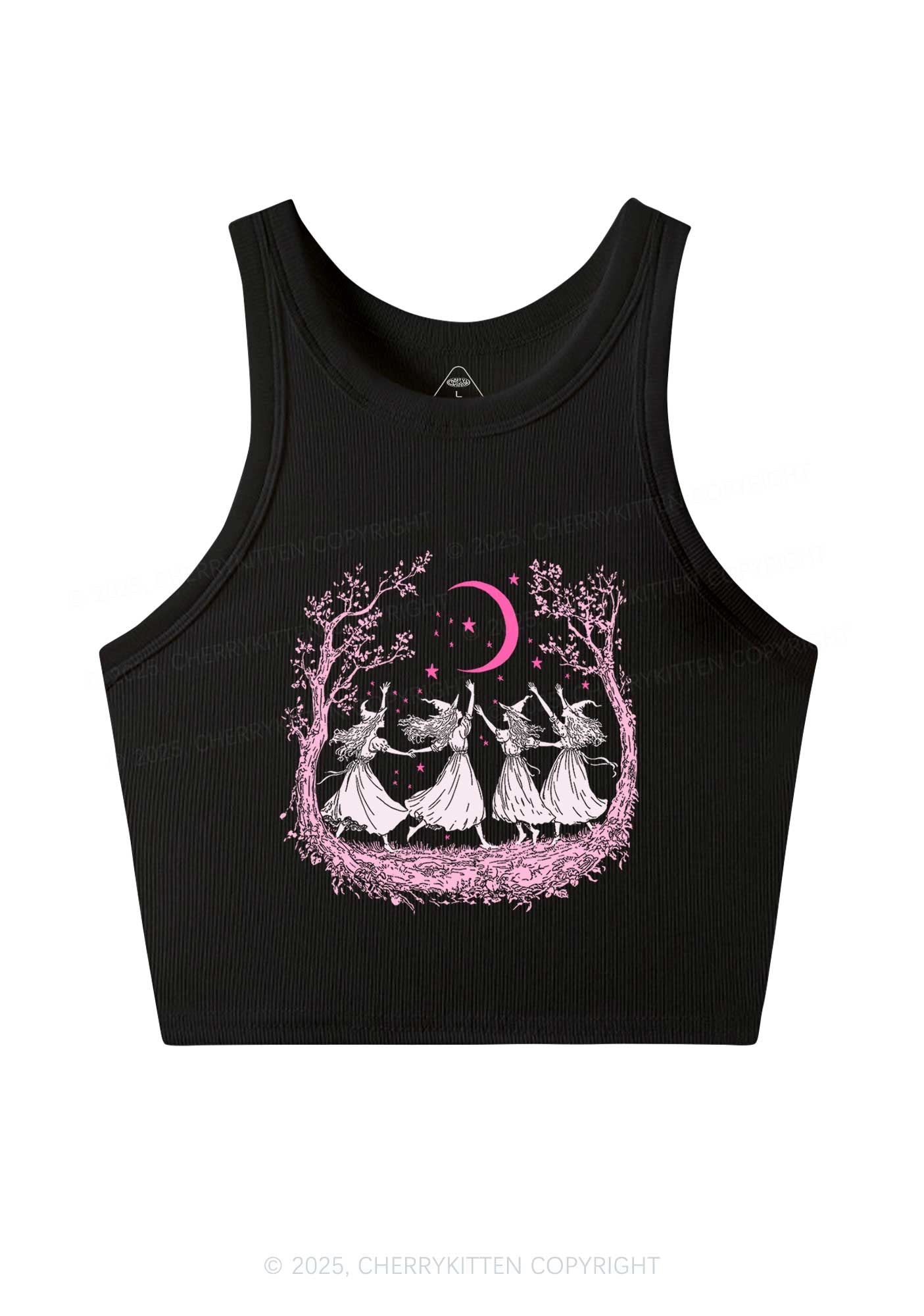 Halloween Witches Dancing Under Moon Y2K Crop Tank Top Cherrykitten