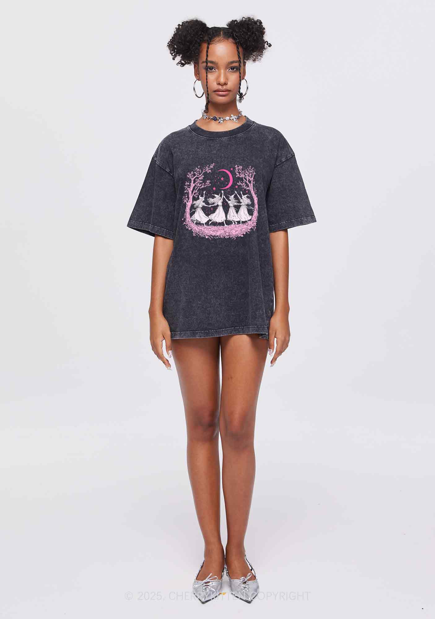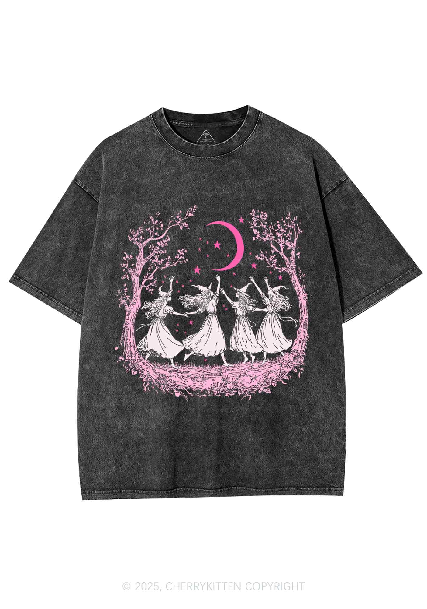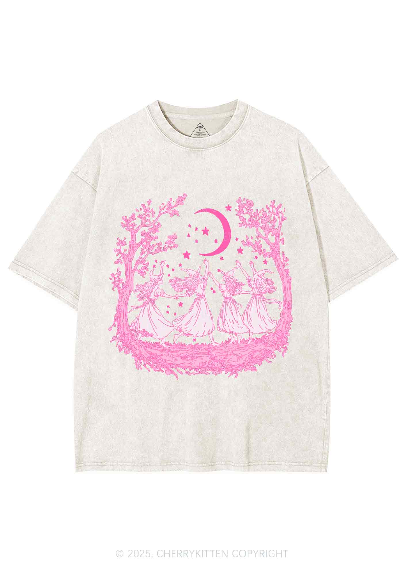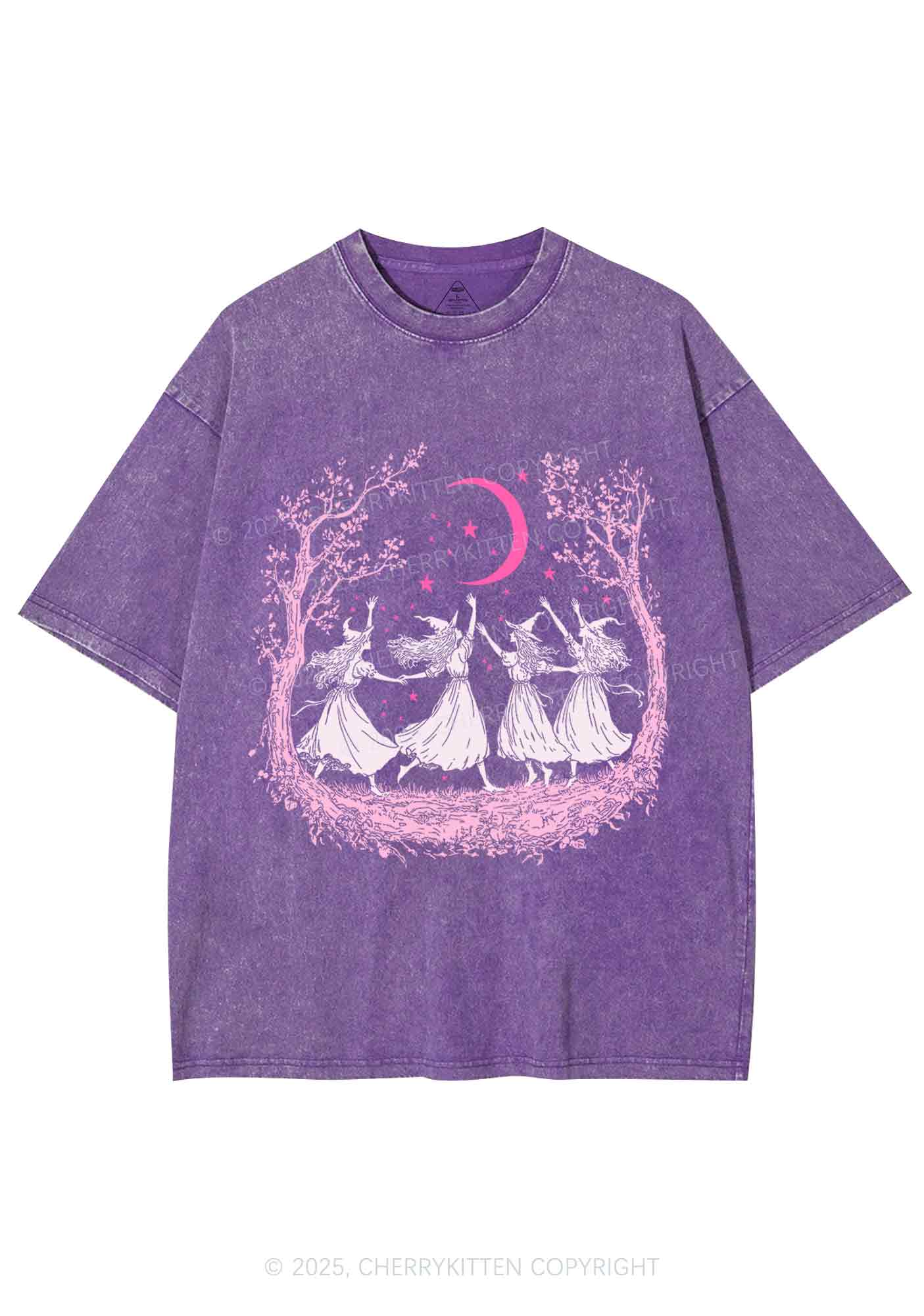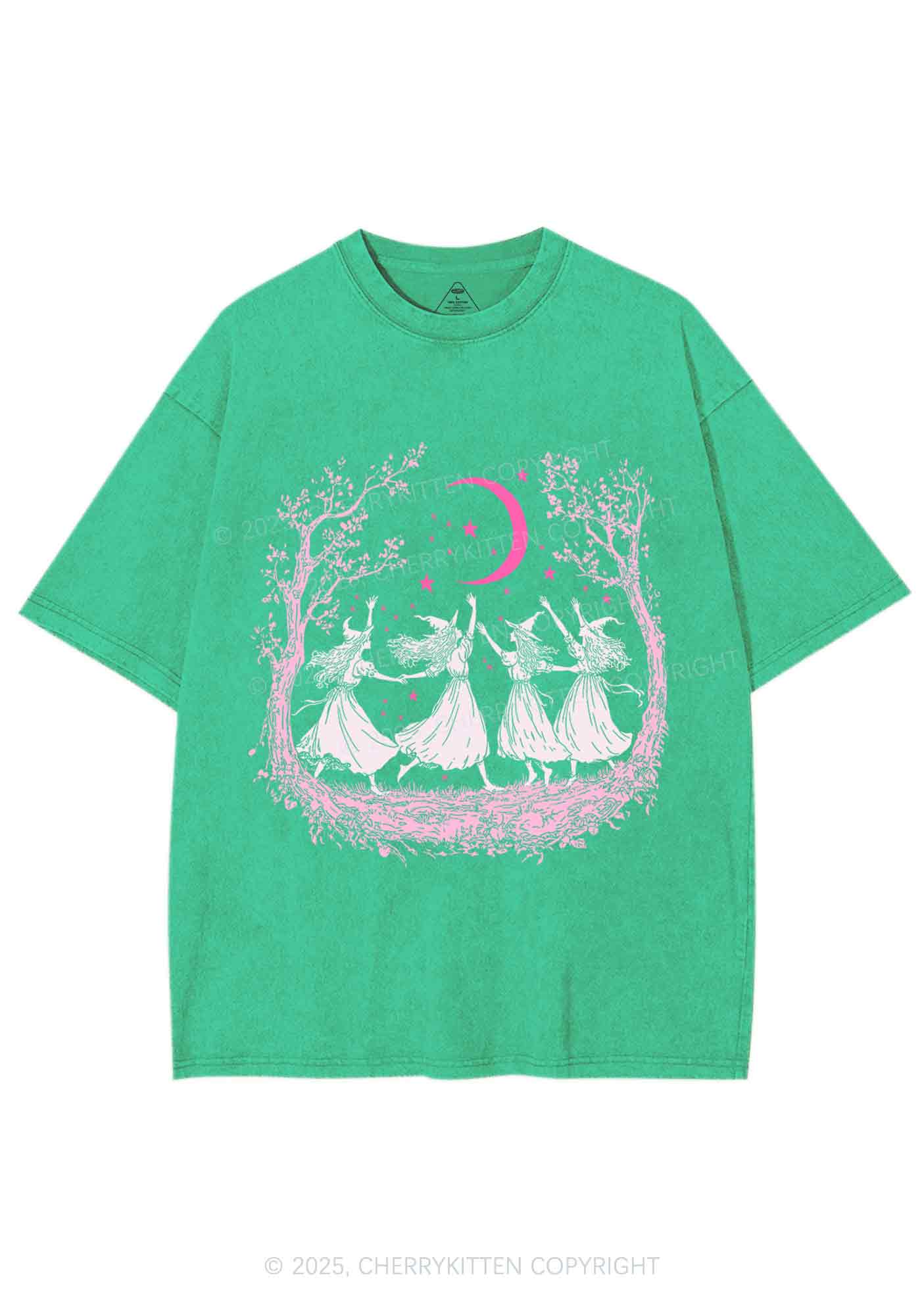 Halloween Witches Dancing Under Moon Y2K Shirts Washed Tee Cherrykitten