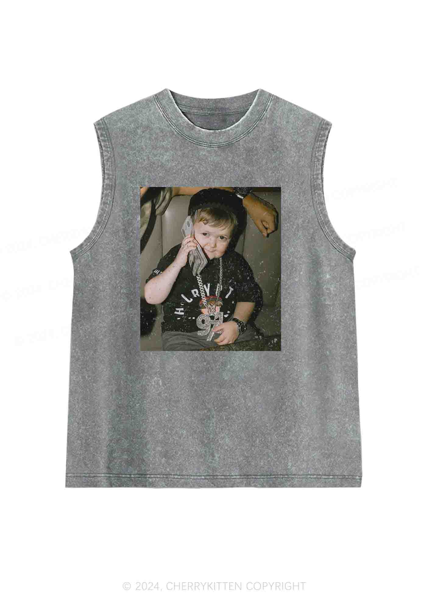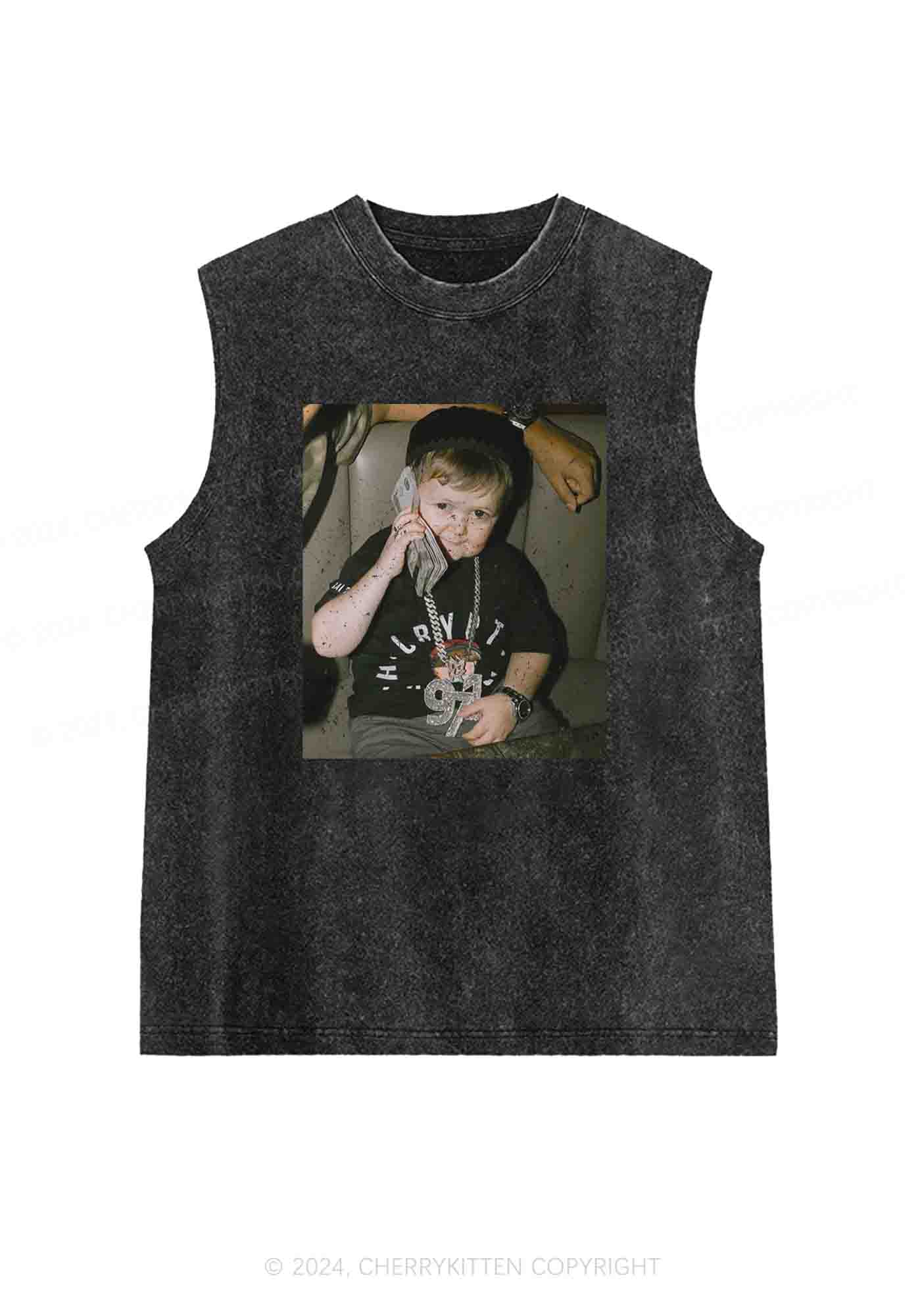 He Is Pretending To Call Y2K Washed Tank Cherrykitten