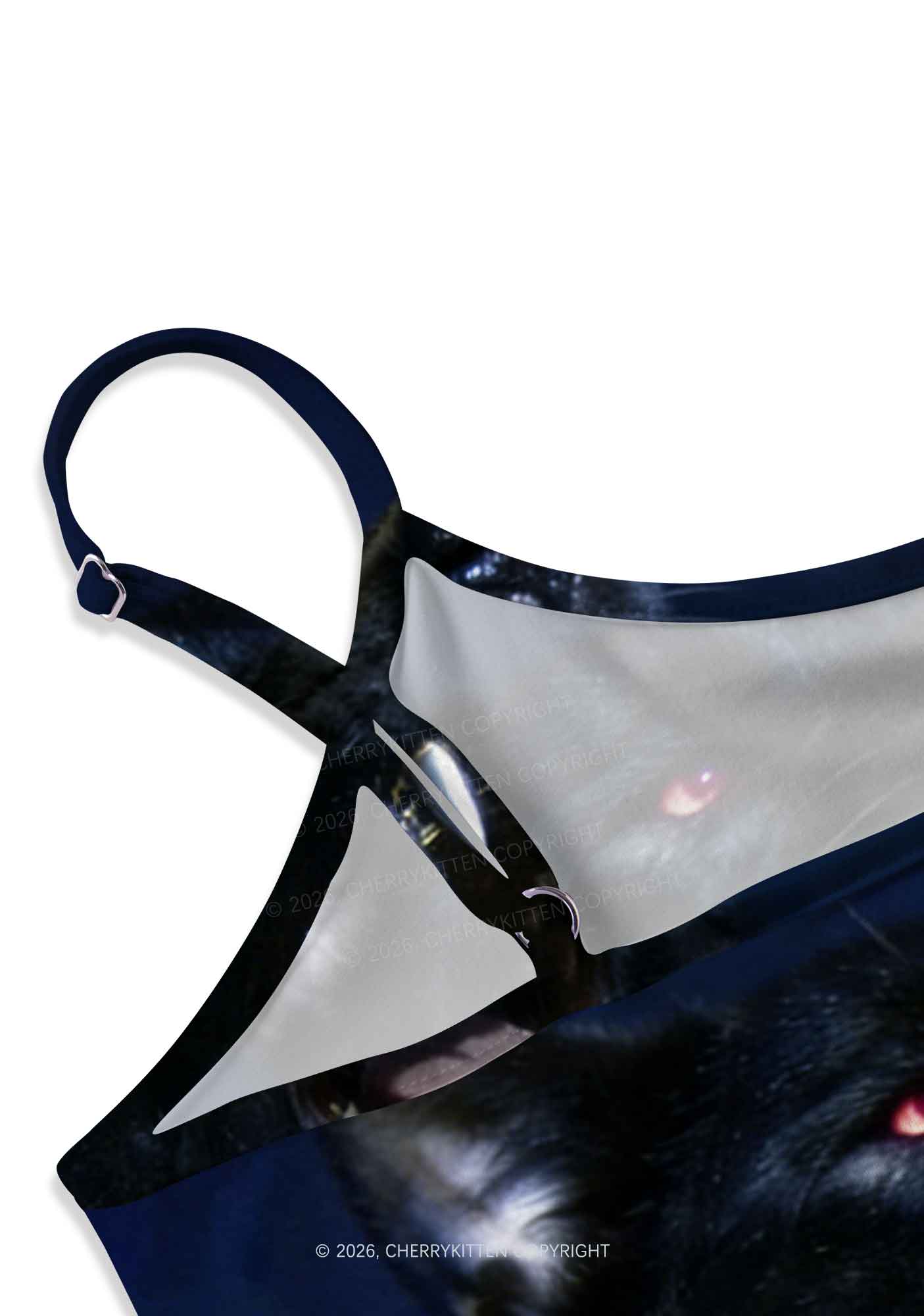 Hip Hop Black Wolf Y2K Print Slip Dress Cherrykitten