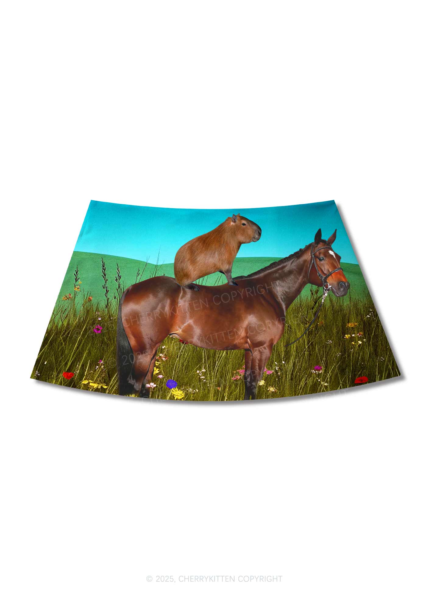 Horseback Capybara Y2K Print Mini Skirt Cherrykitten