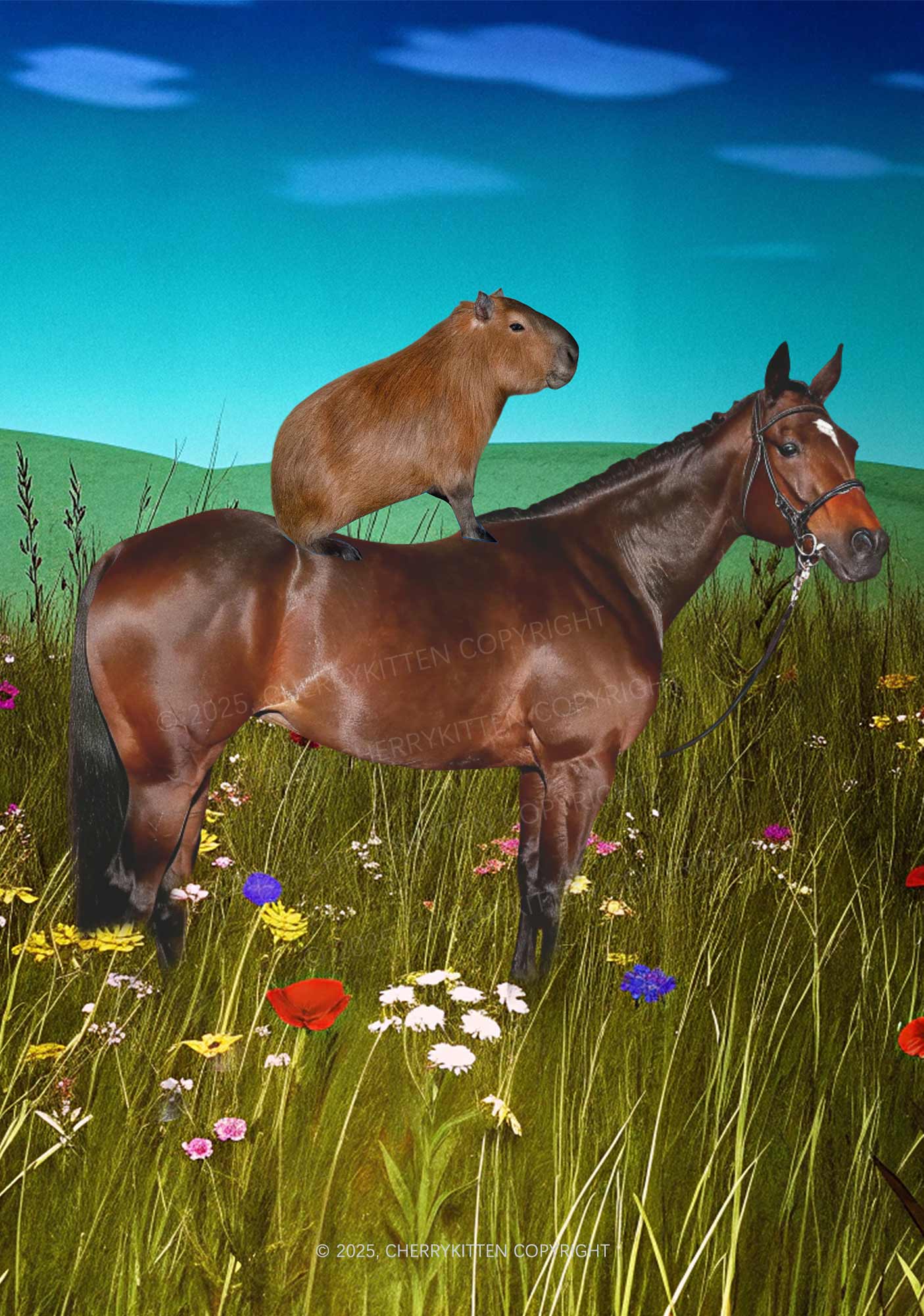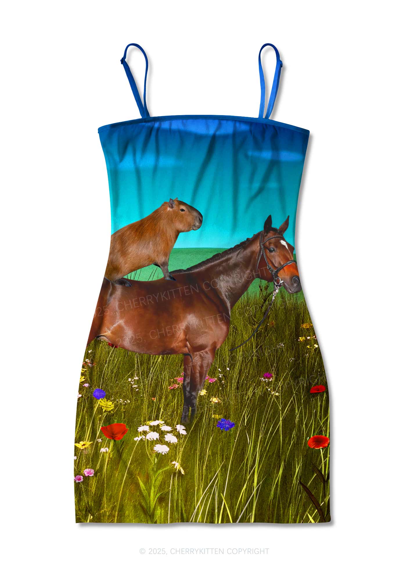 Horseback Capybara Y2K Print Slip Dress Cherrykitten
