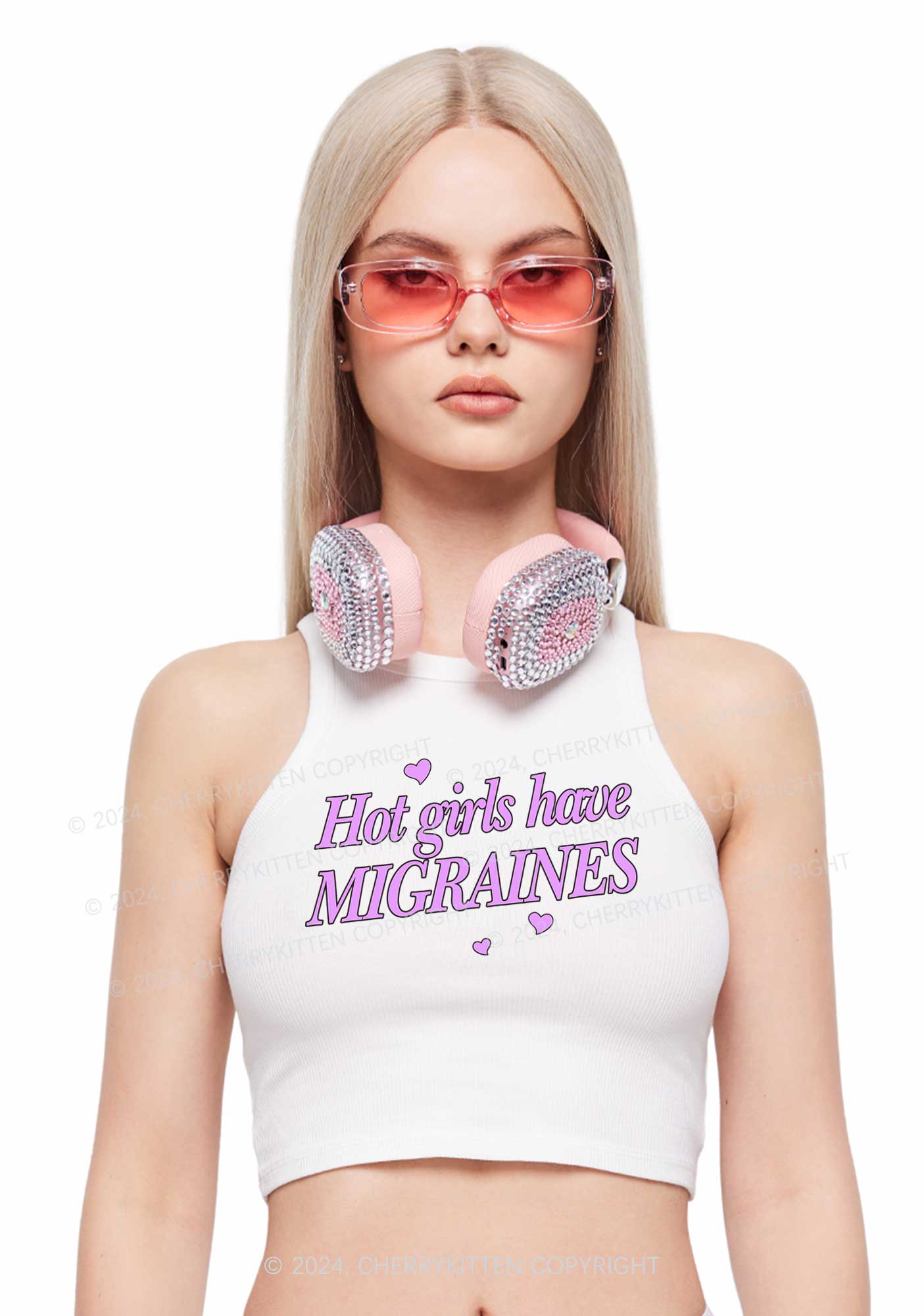 Hot Girls Have Migraines Y2K Crop Tank Top Cherrykitten