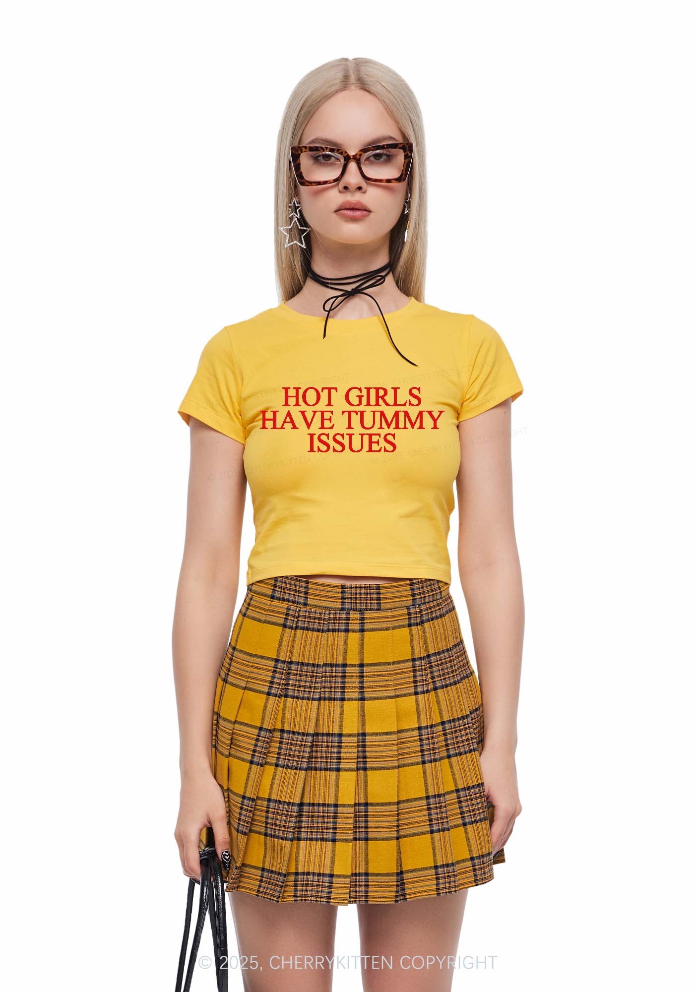 Hot Girls Have Tummy Issues Y2K Baby Tee Cherrykitten