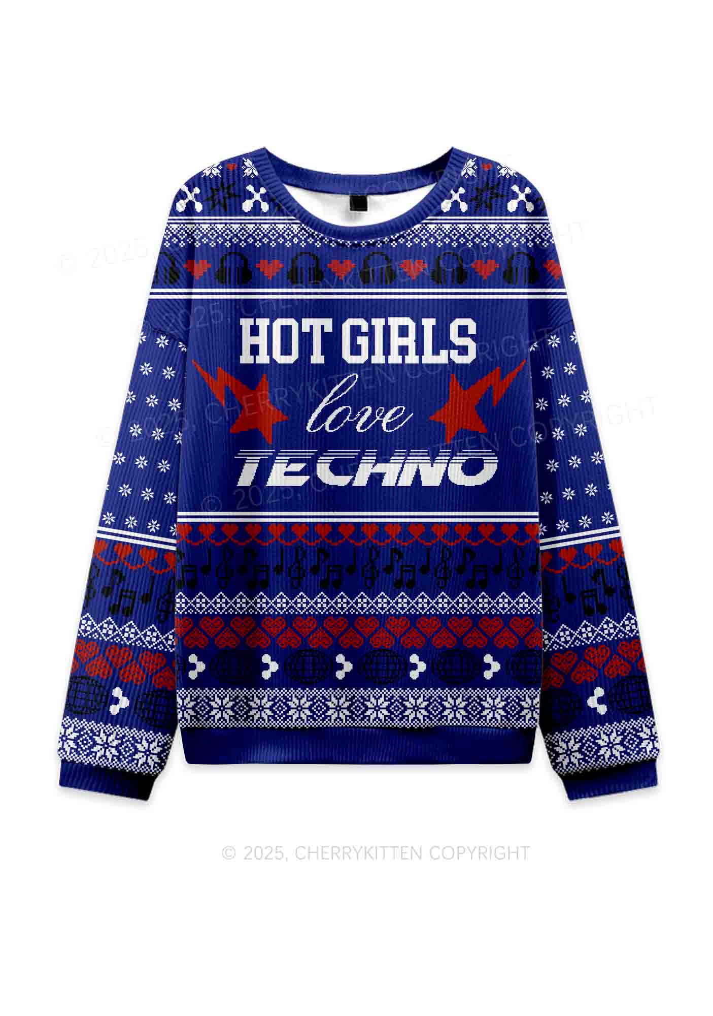 Hot Girls Love Techno Y2K Christmas Knit Sweatshirt Cherrykitten
