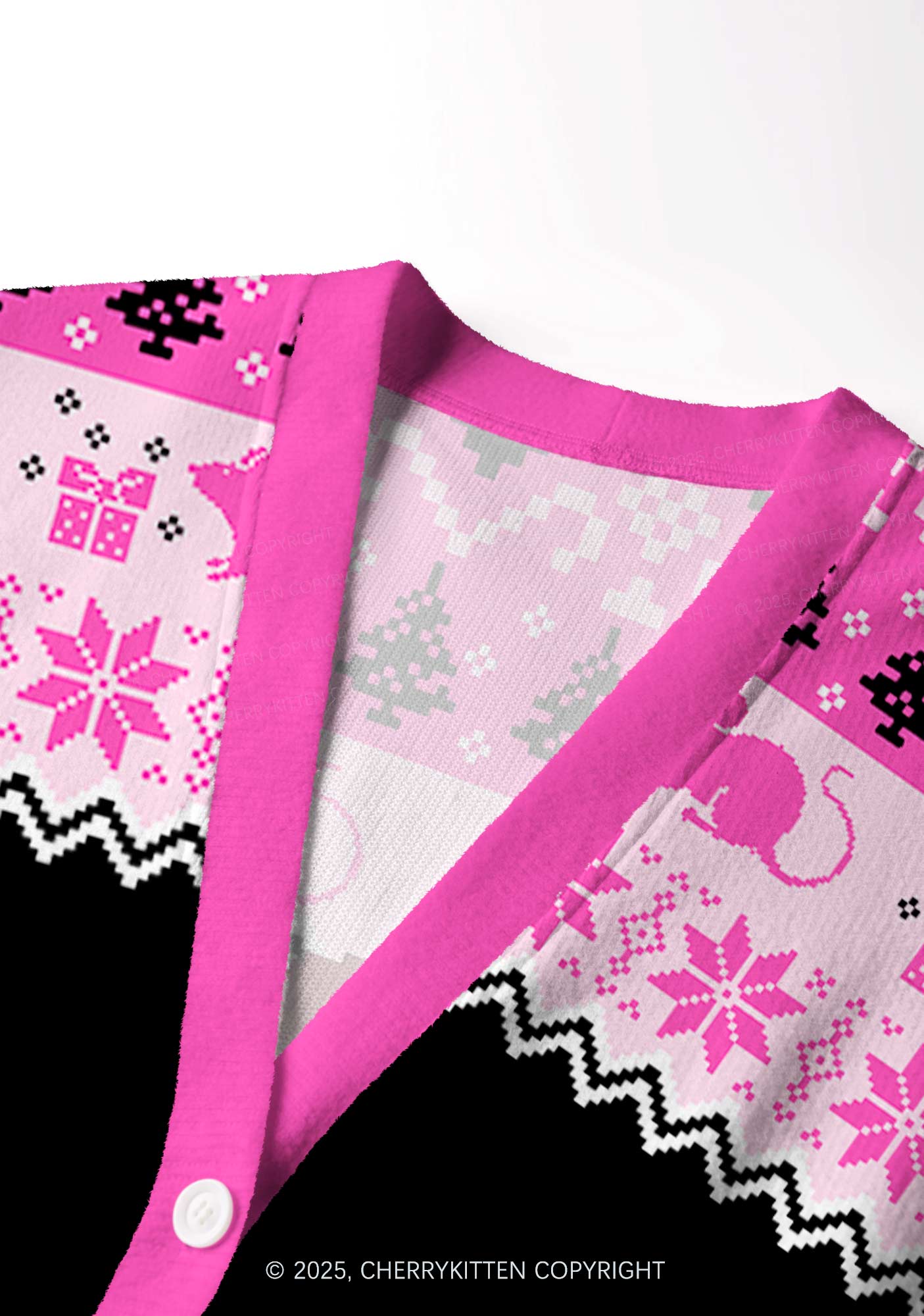 Hot Pink Ratz Y2K Christmas Cardigan Knit Sweatshirt Cherrykitten