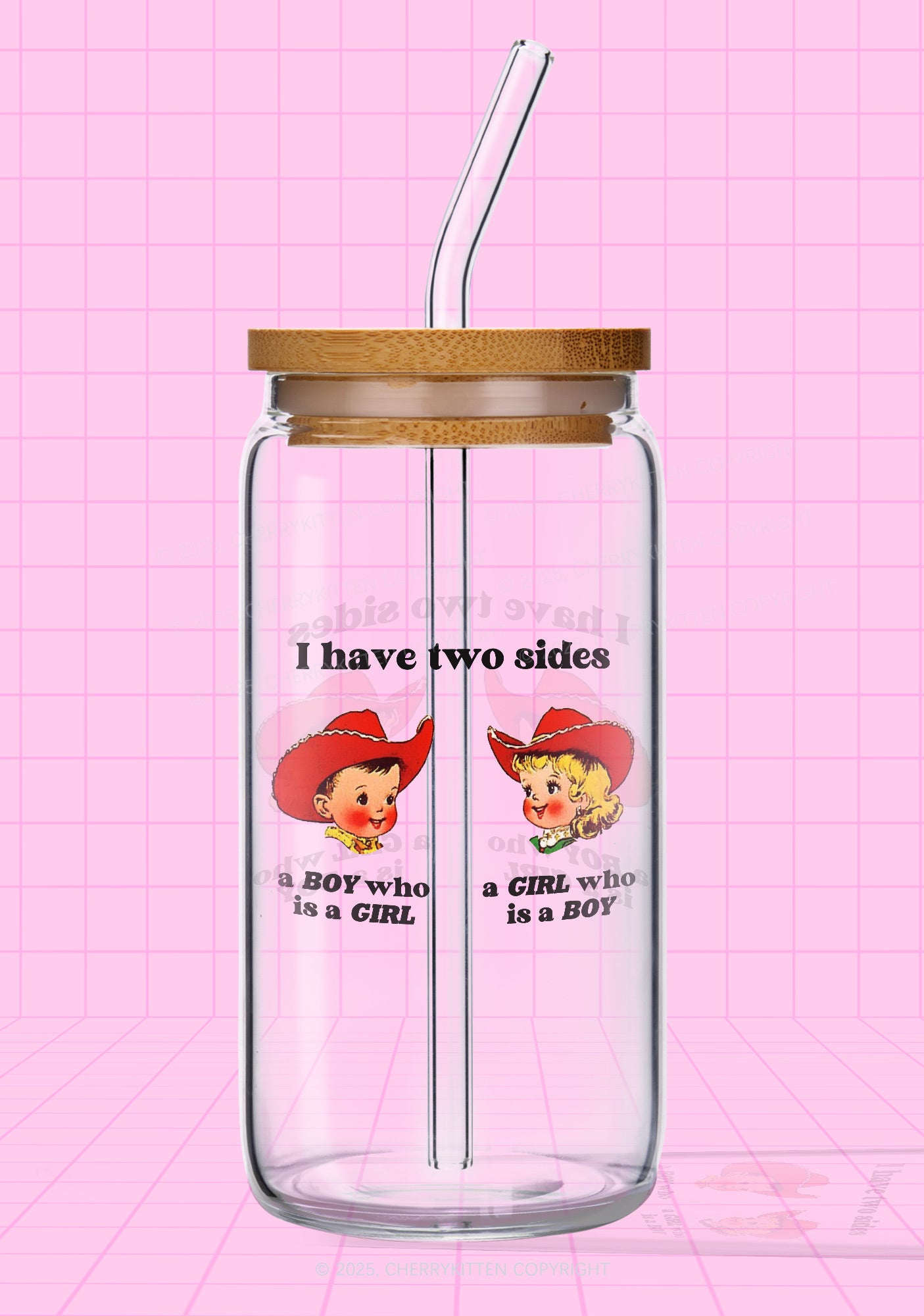 I Have Two Sides Pride Y2K Printed Glass Cup Cherrykitten