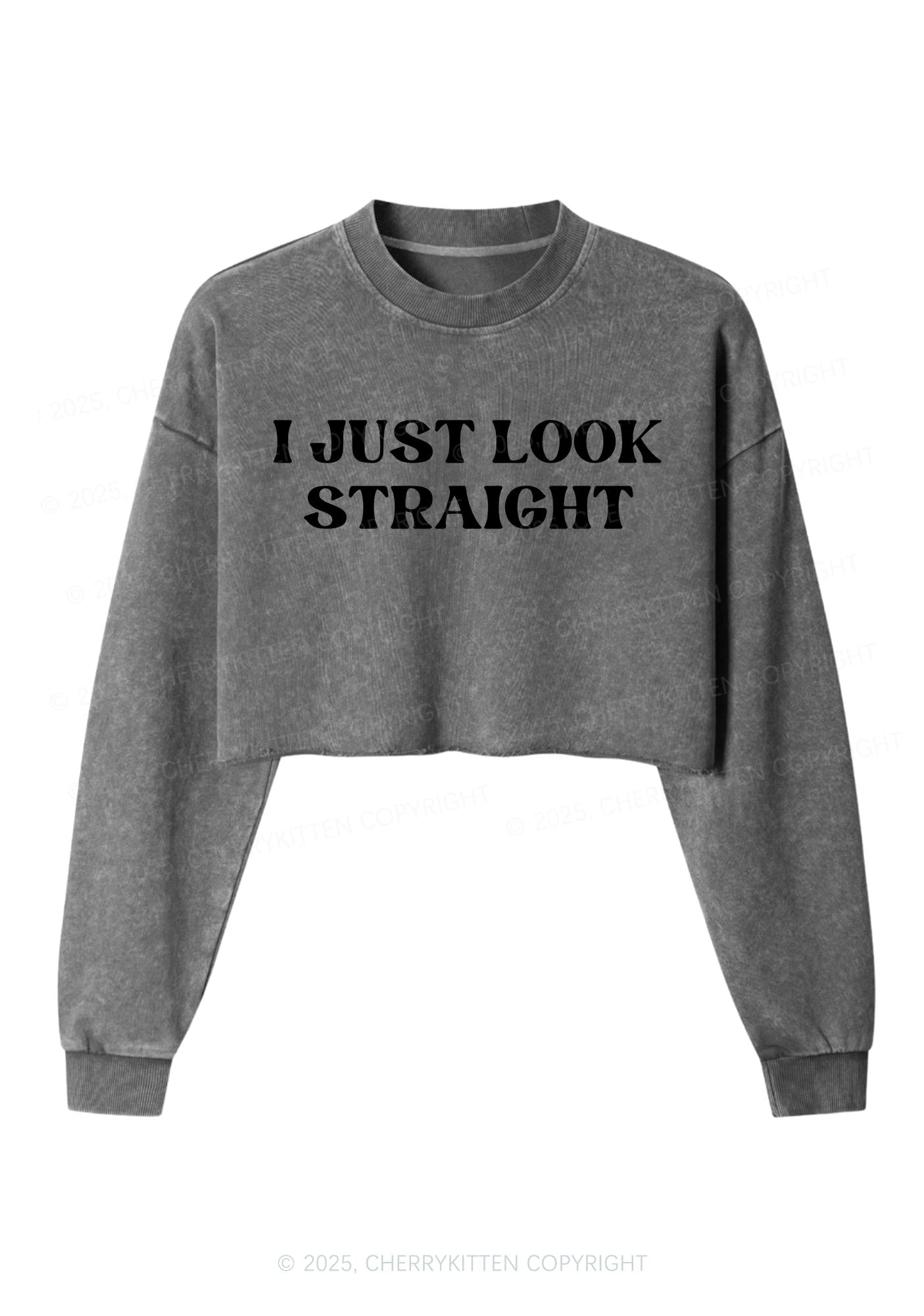 I Just Look Straight Y2K Crop Washed Sweatshirts Cherrykitten