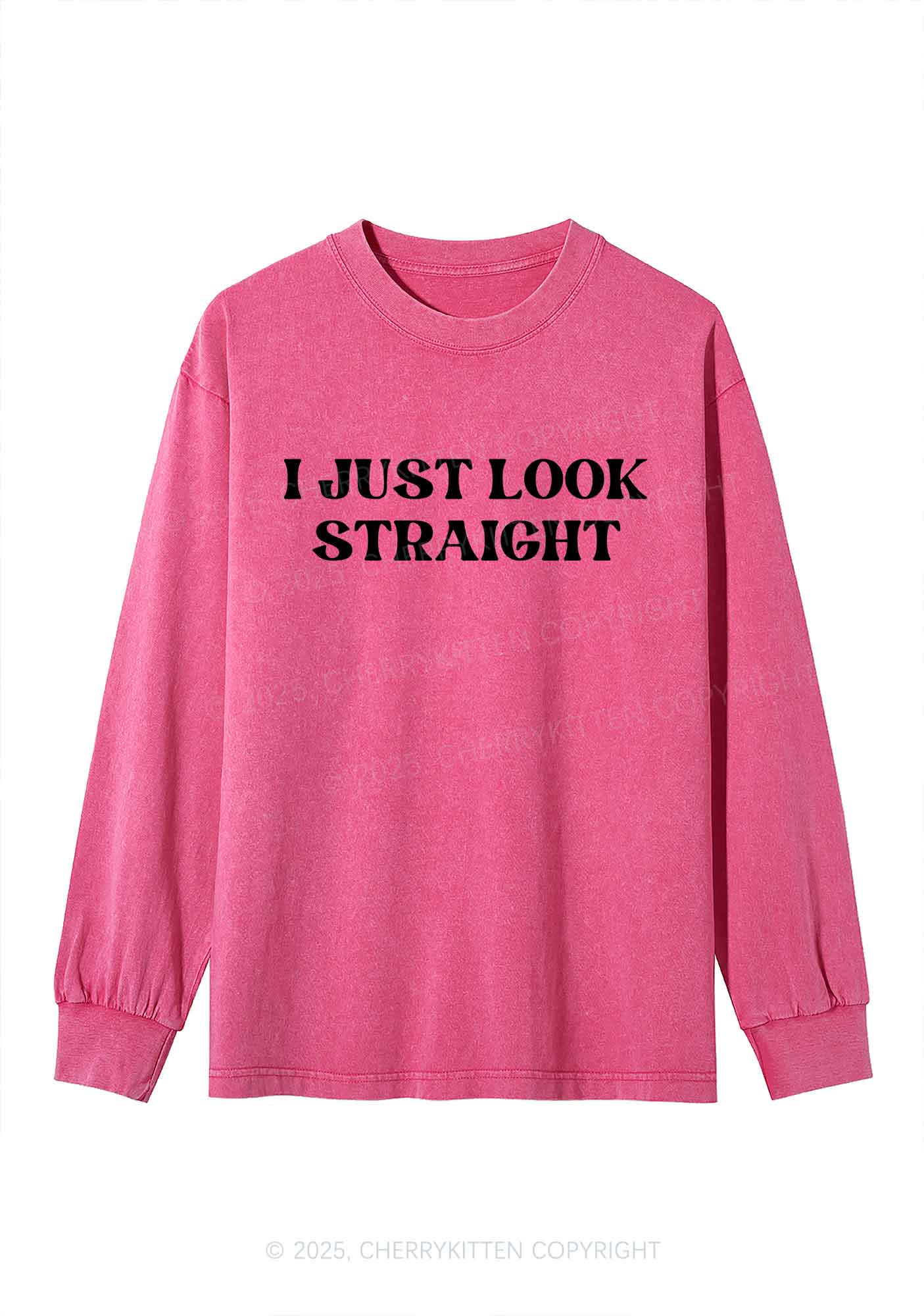 I Just Look Straight Y2K Washed Long Sleeves Cherrykitten