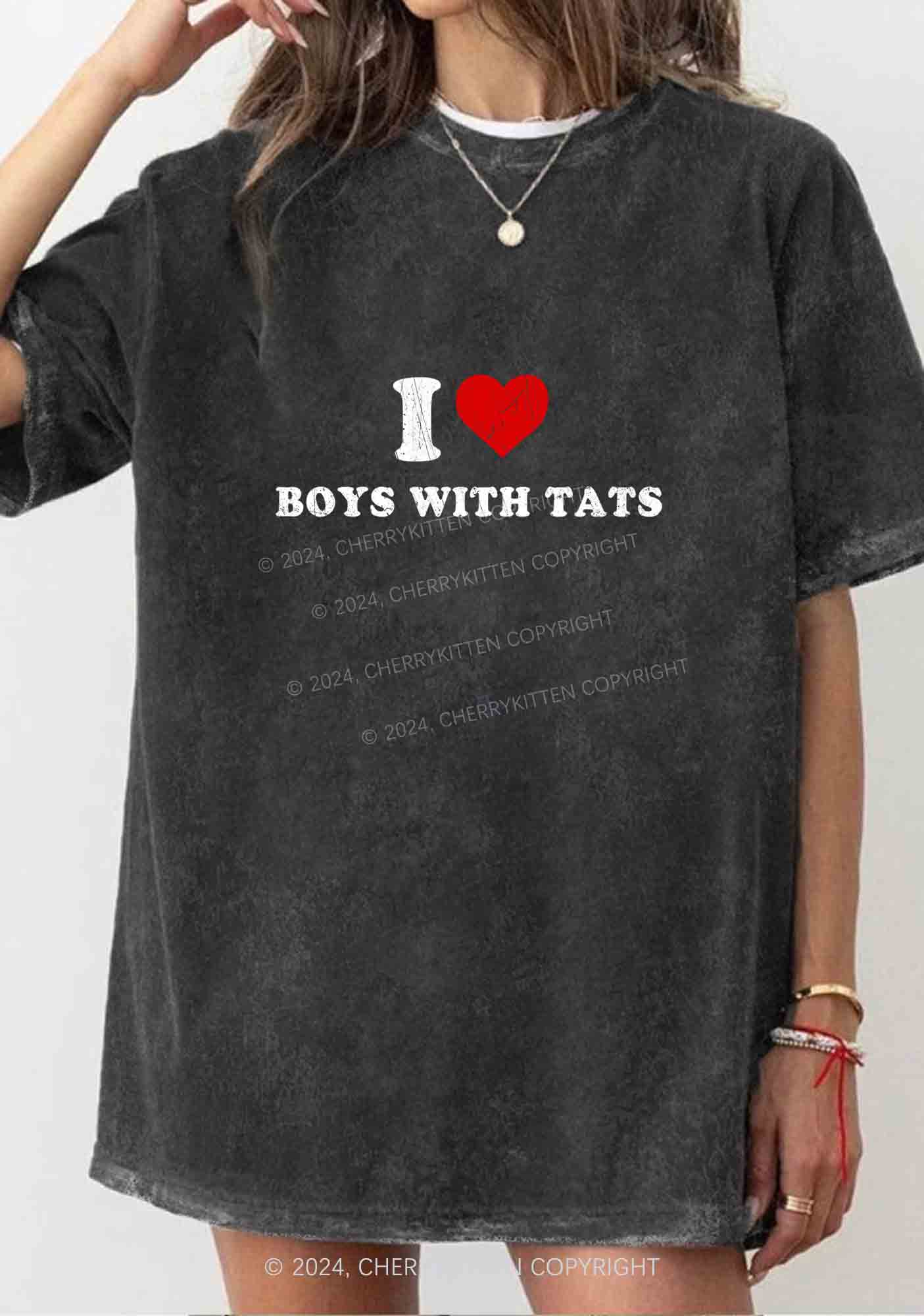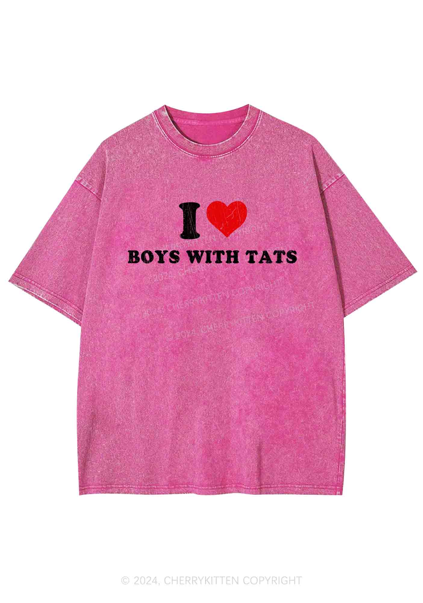 I Love Boys With Tats Y2K Washed Tee Cherrykitten