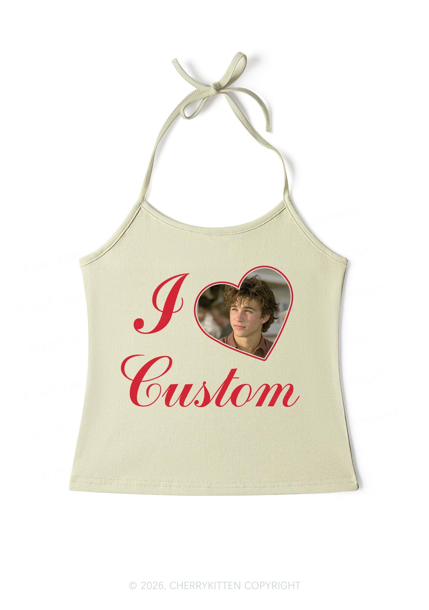 I Love Custom Photo Valentine's Day Y2K Halter Neck Cami Cherrykitten