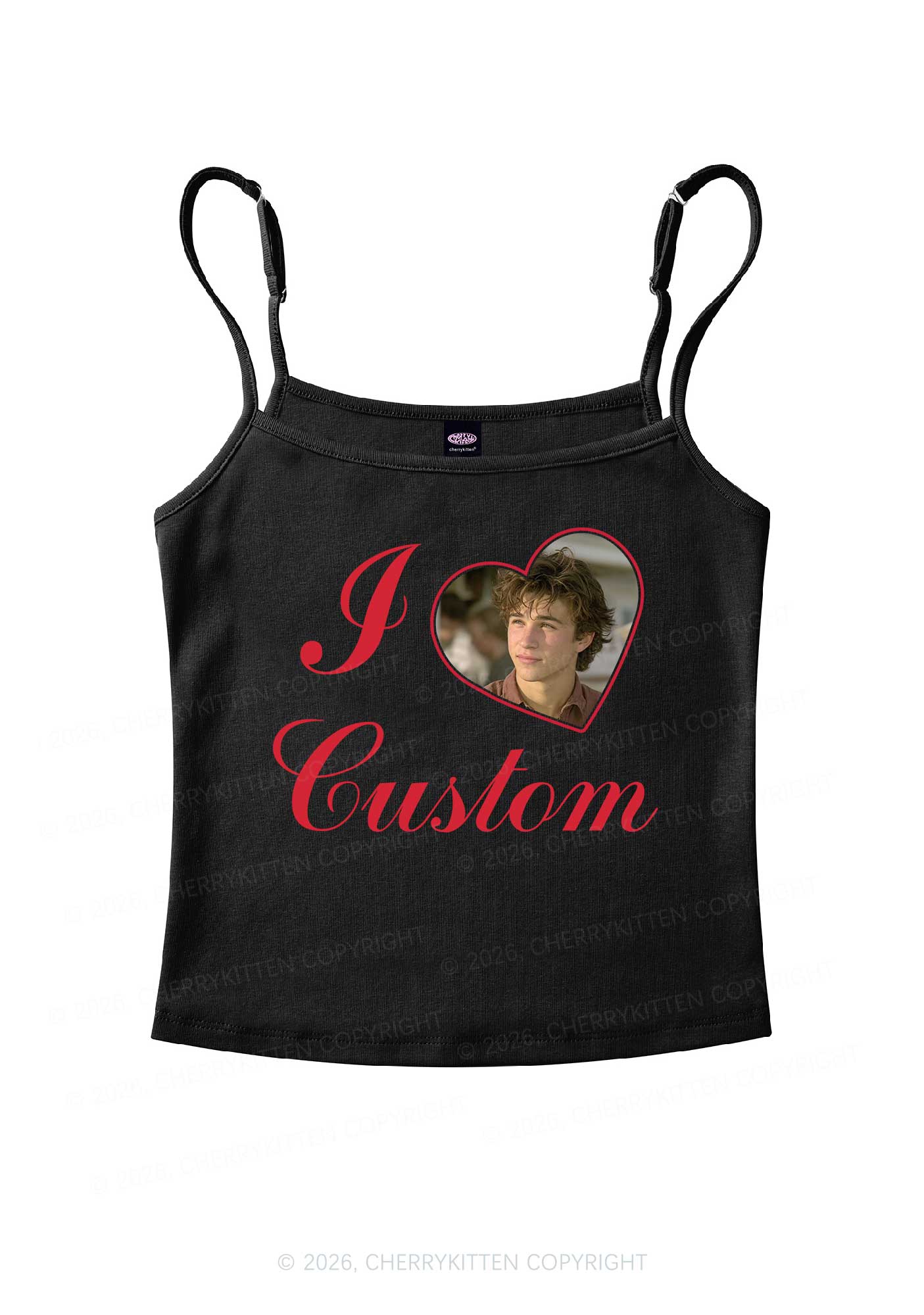 I Love Custom Photo Valentine's Day Y2K Spaghetti Strap Cami Cherrykitten