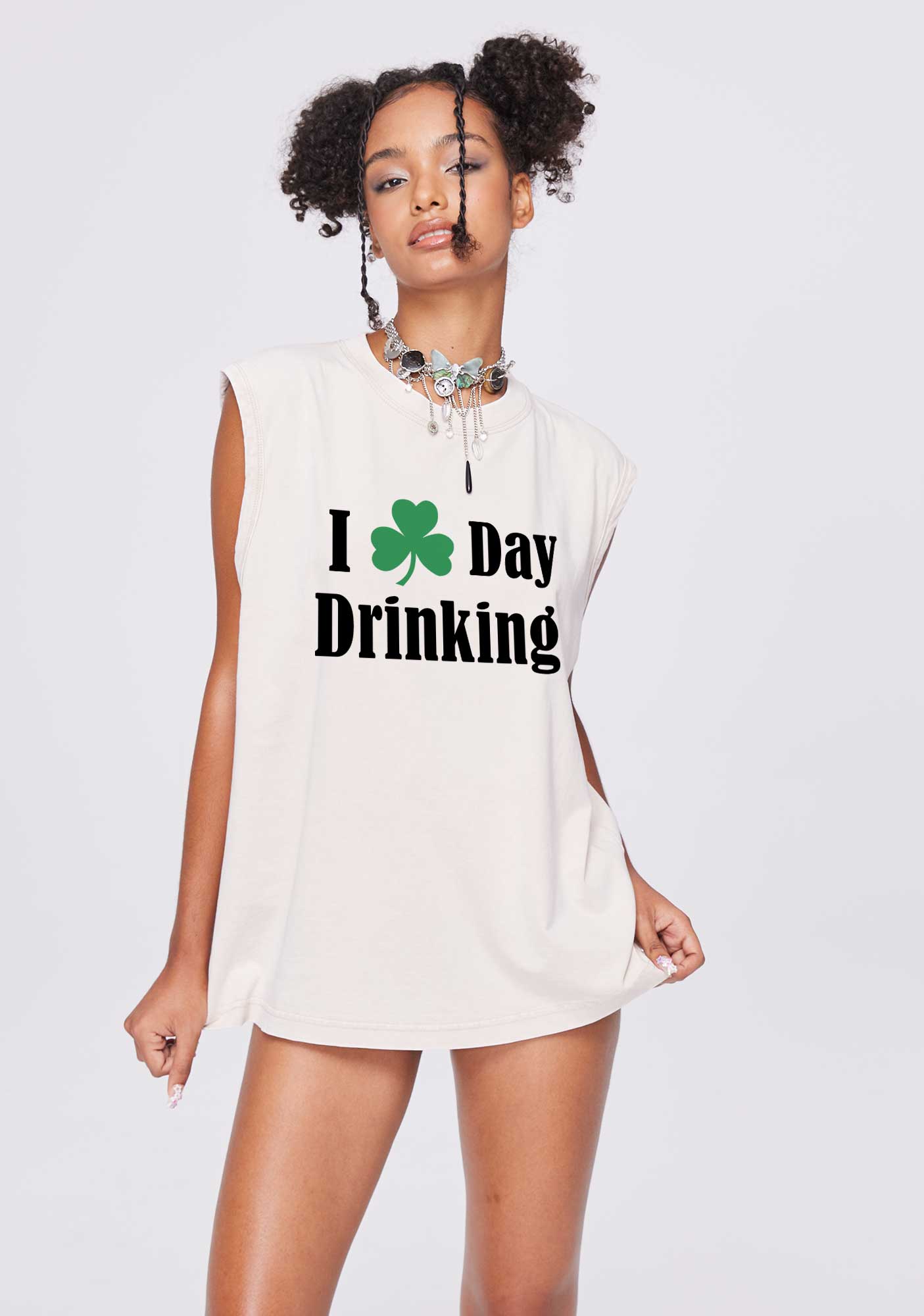 I Love Day Drinking St Patricks Y2K Washed Tank Cherrykitten