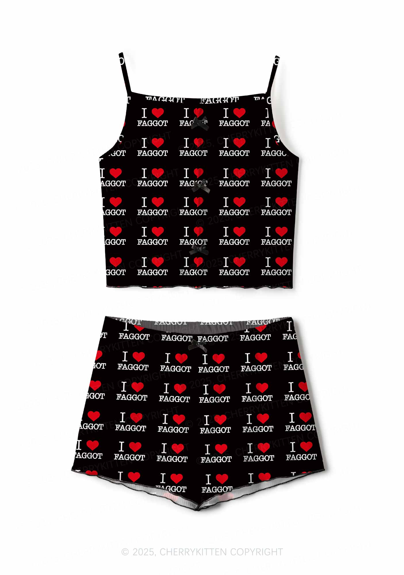 I Love Faggot Valentine's Day Y2K Print Cami Shorts Pajama Set Cherrykitten